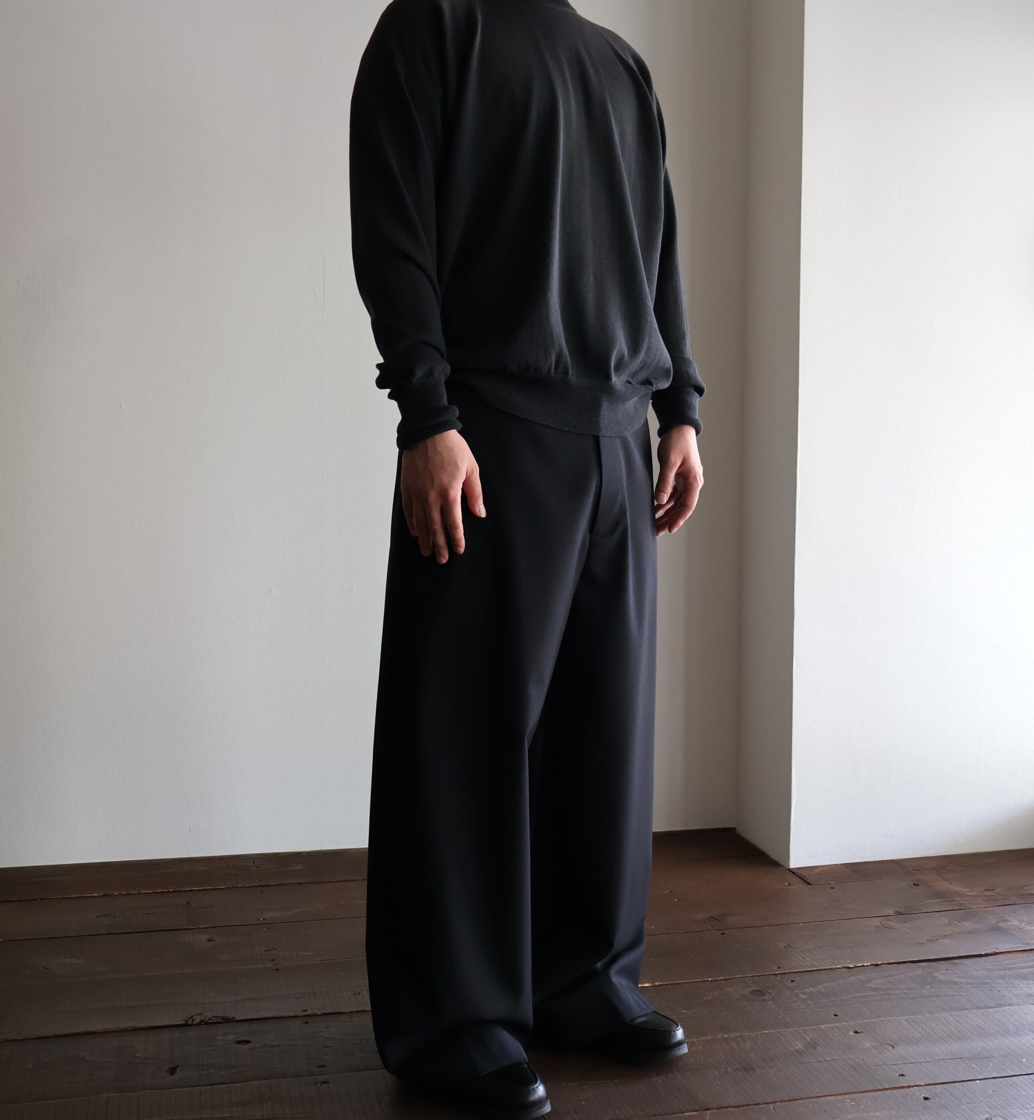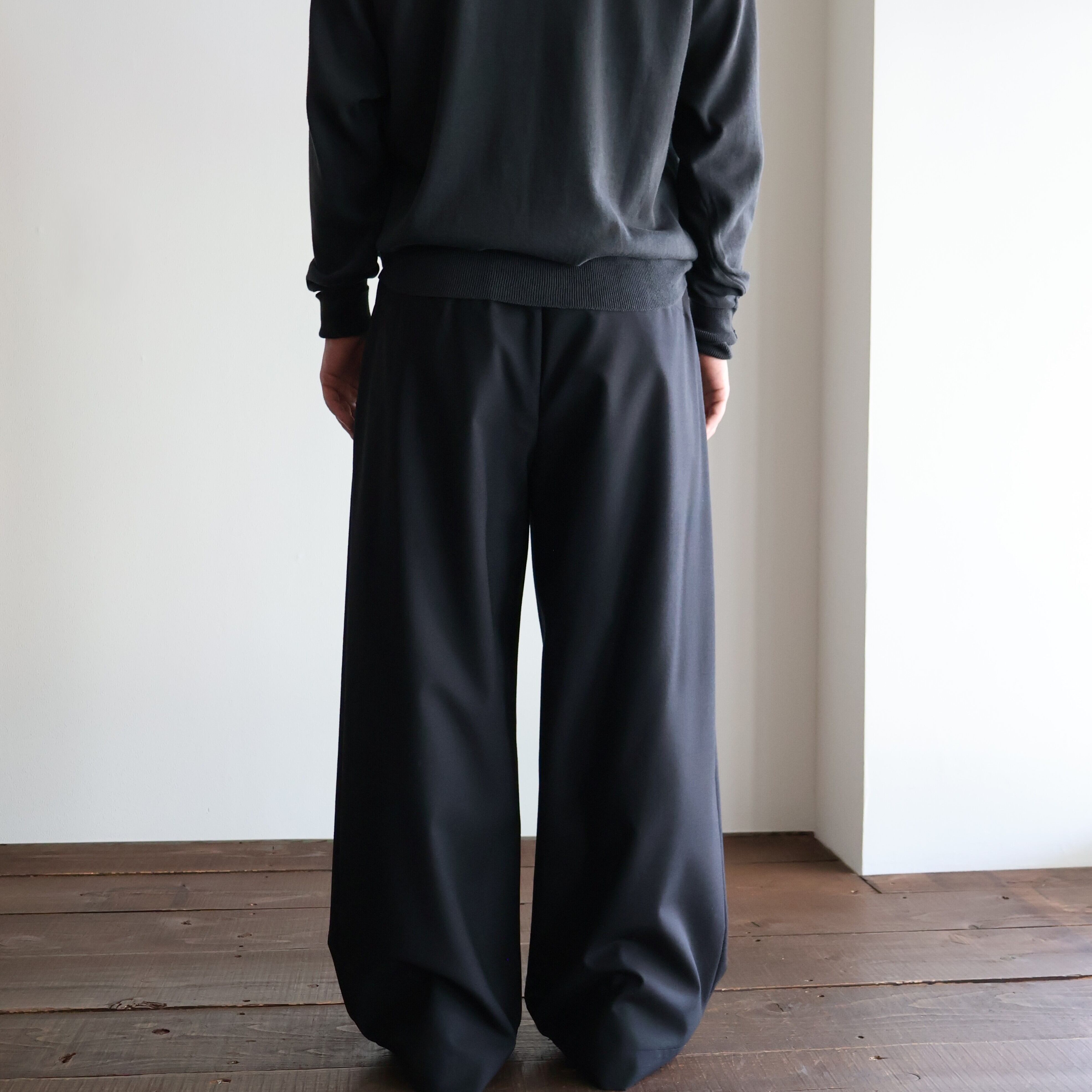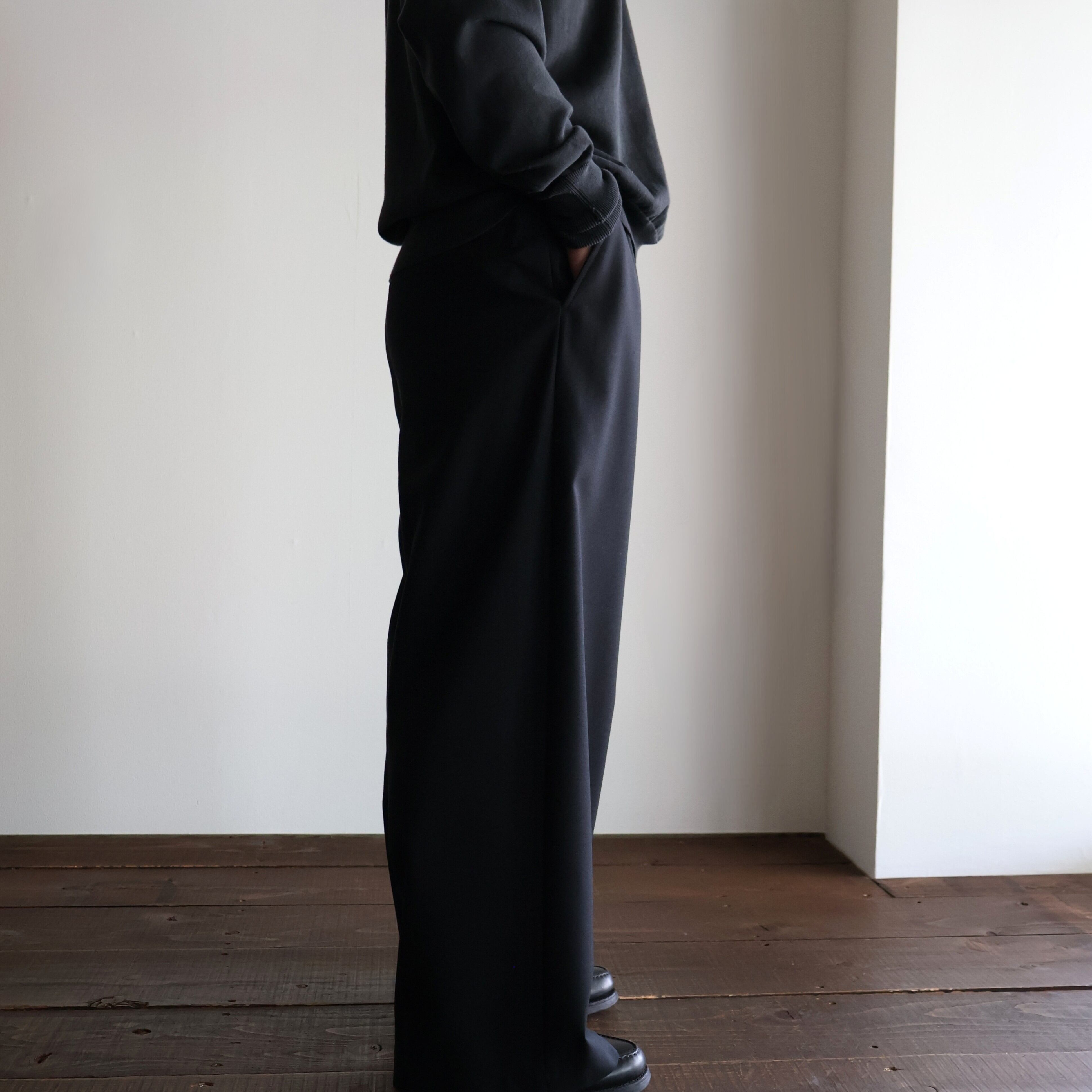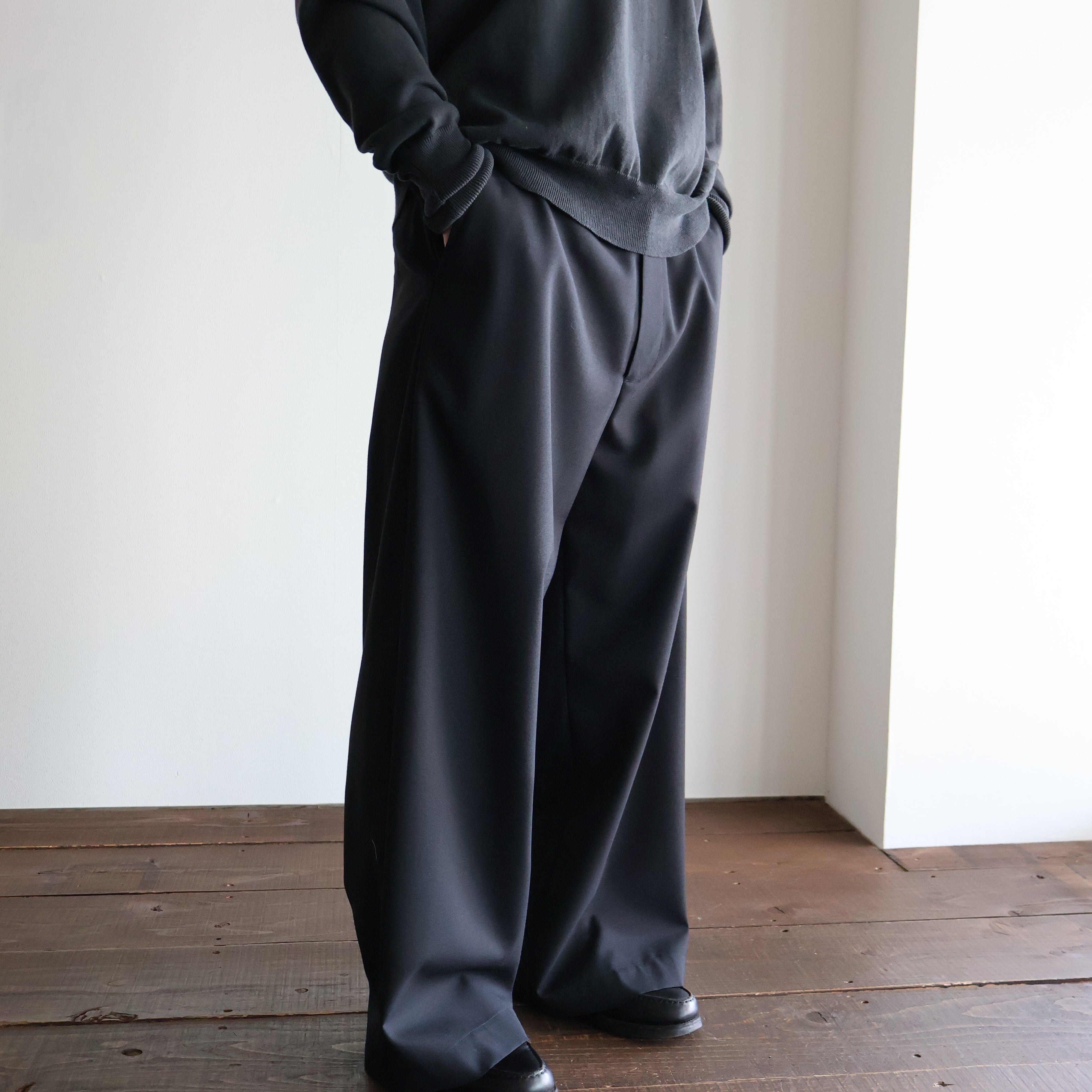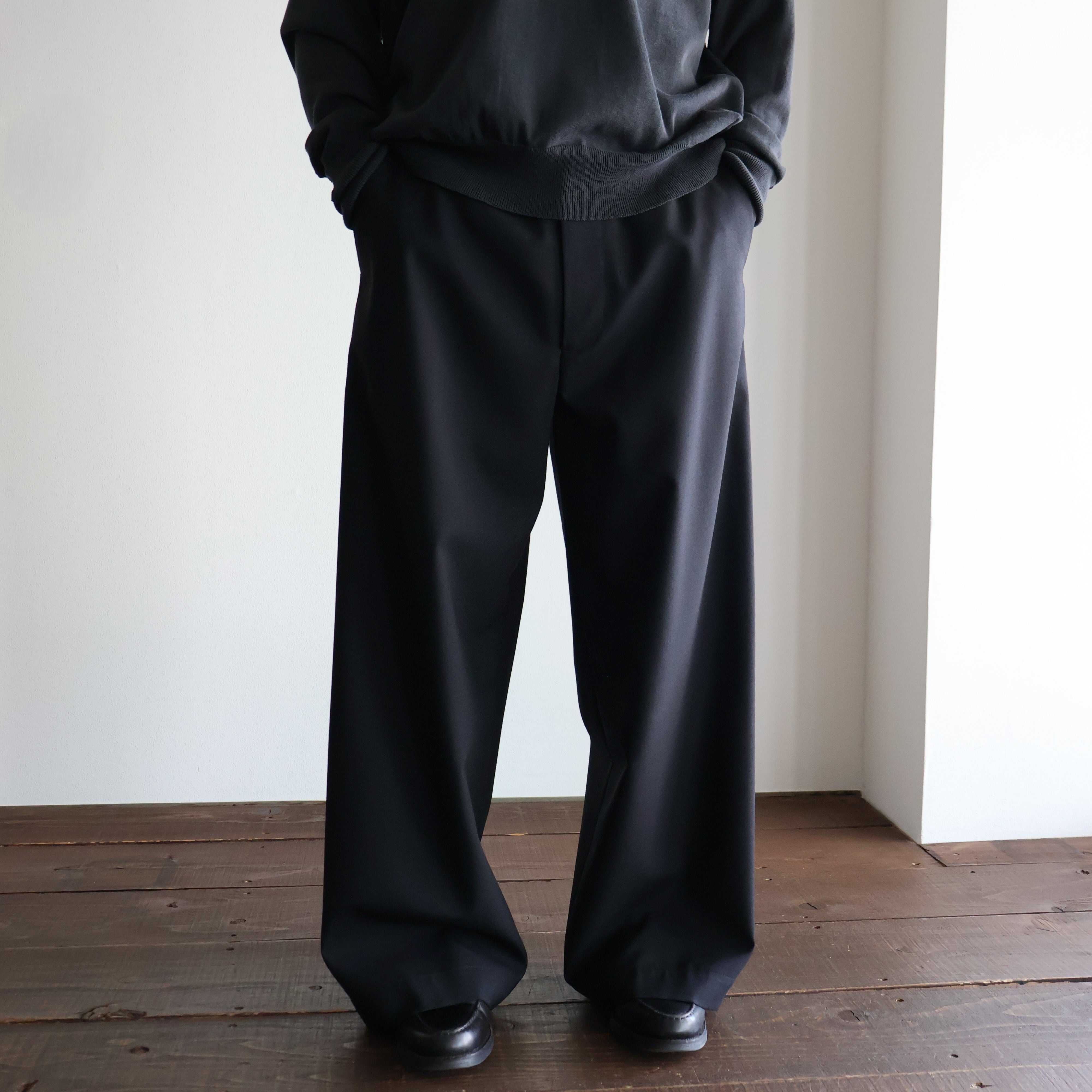 universal products. “ SUMMER WOOL WIDE TROUSERS ( Black )”