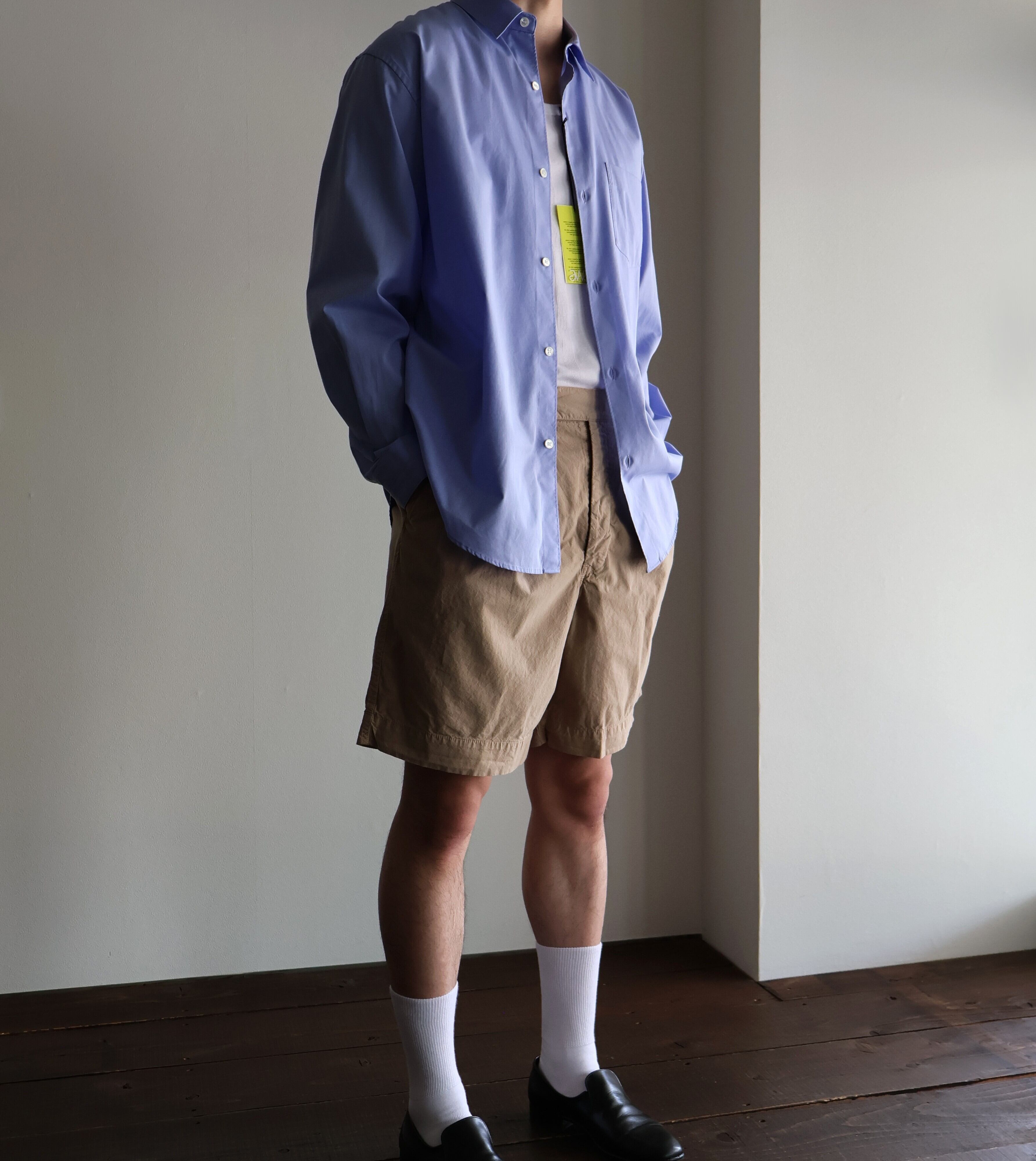 膝上丈のややワイドなシルエットは、リラックス感と清潔感を兼ね備えた大人のカジュアルスタイルに最適です。ウエストにはベルトループに加え、ゴム+タブで調整できる設計になっており、ベルトなしでもフィットし、イージーな着脱と快適さを実現しました。