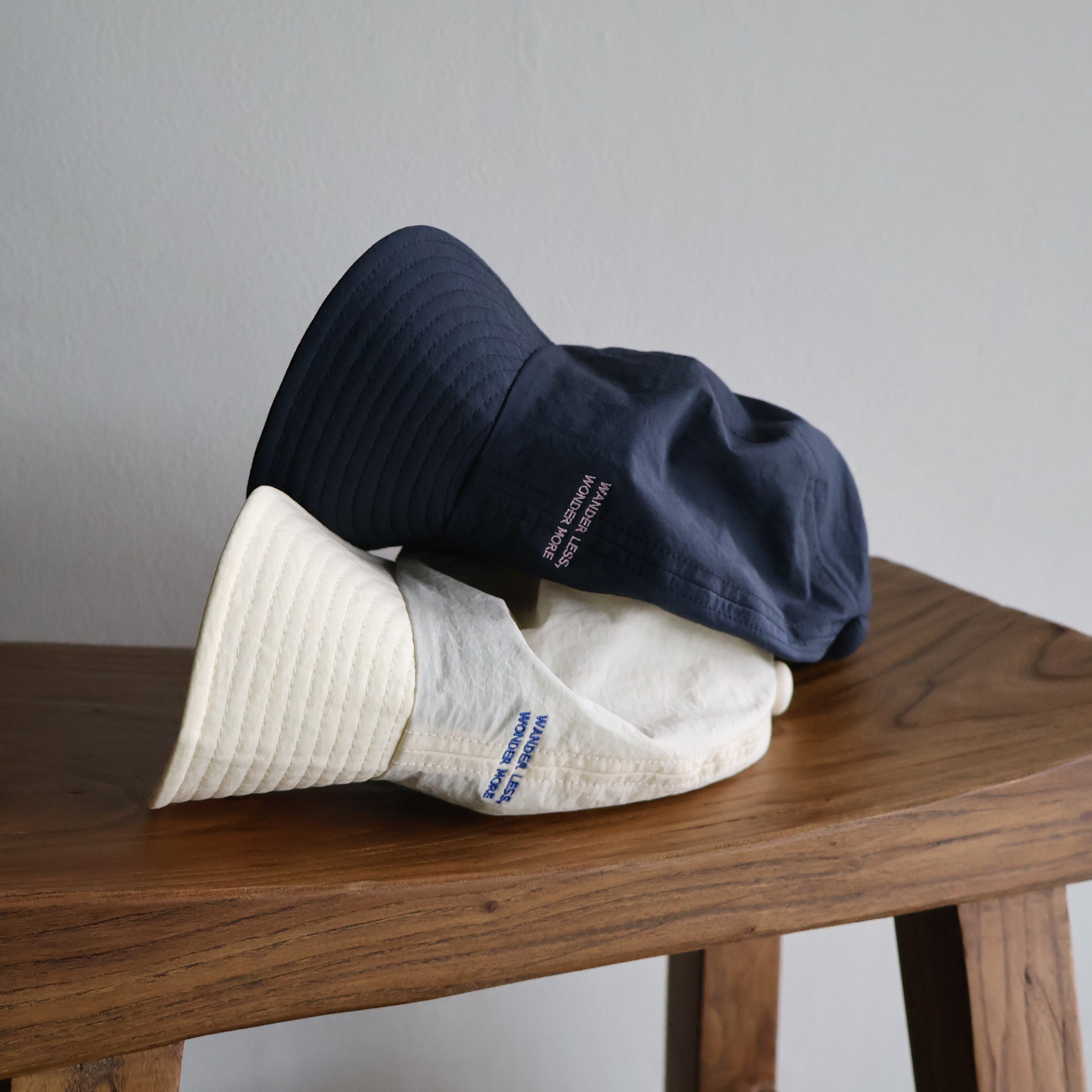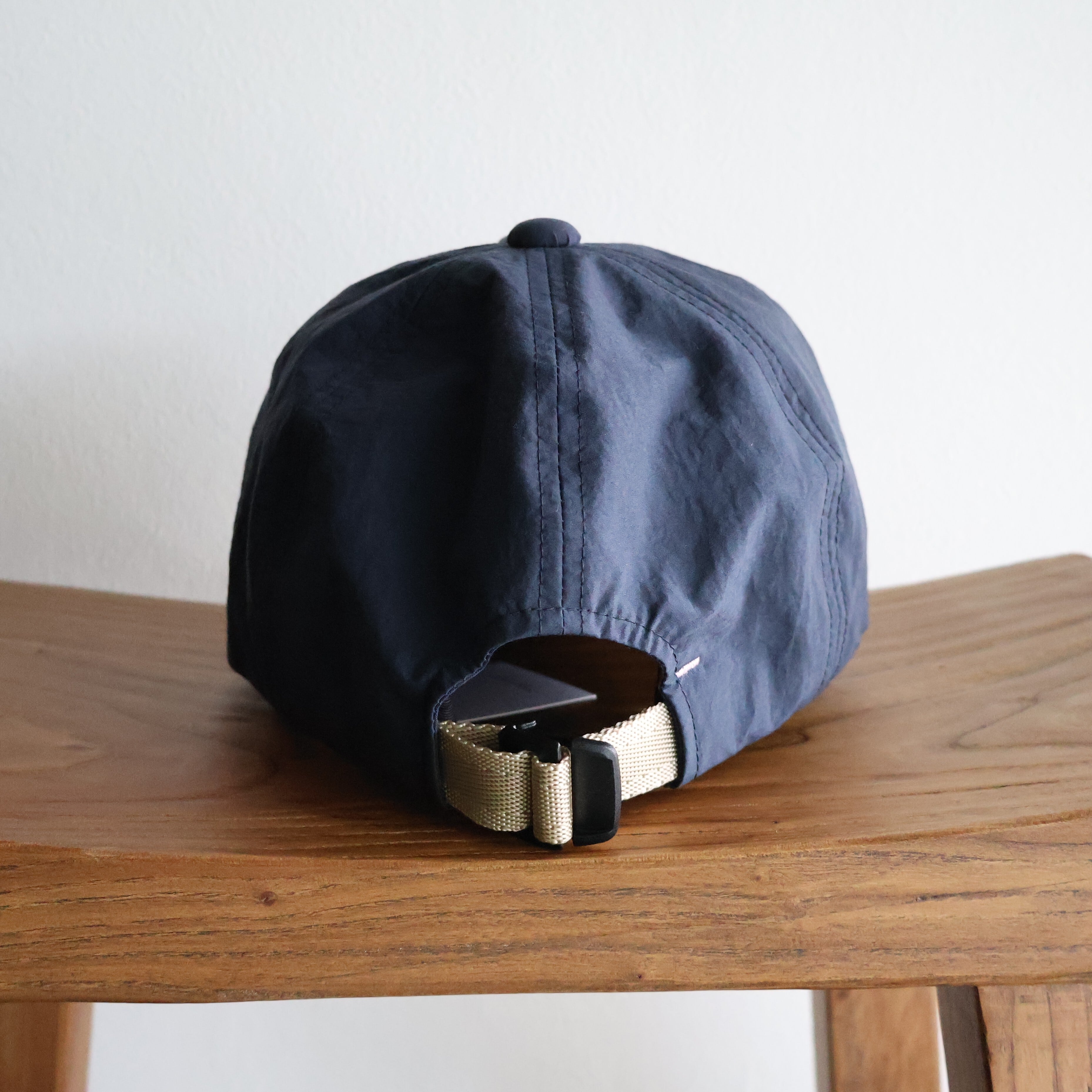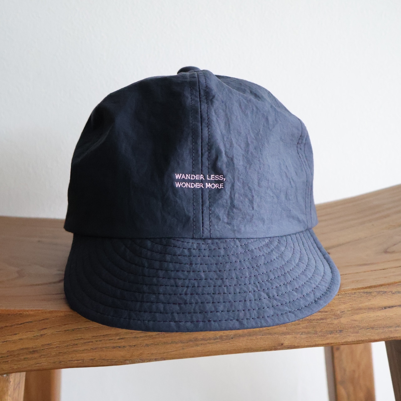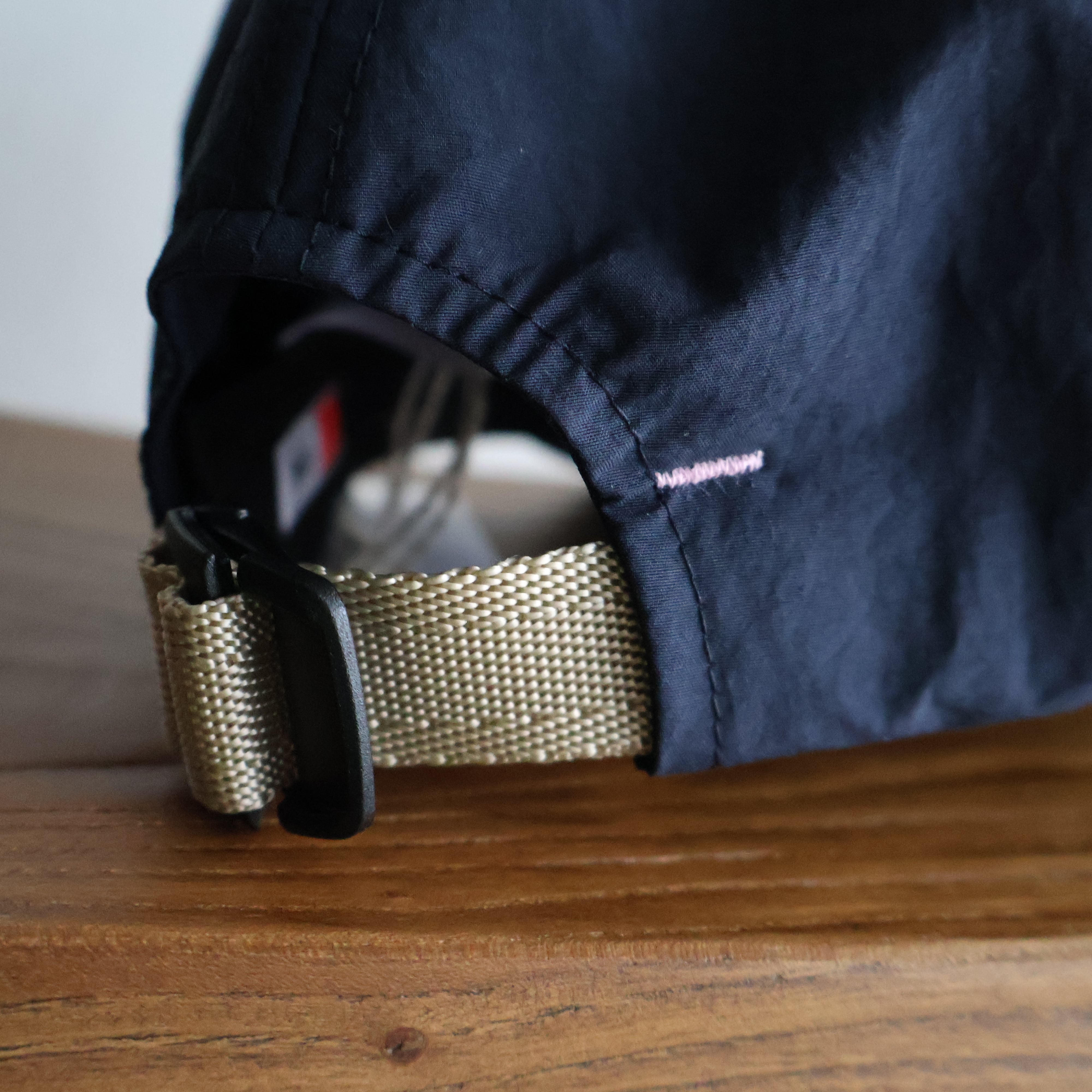 特殊な加工を施したことでシワ感とハリのある仕上がりになっております。クラウン中央の刺繡には「立ち止まることで、心が動く」というメッセージが込められています。柔軟性に優れたナイロンベルトを使用し、カジュアルに取り入れやすいデザインに仕上がっています。