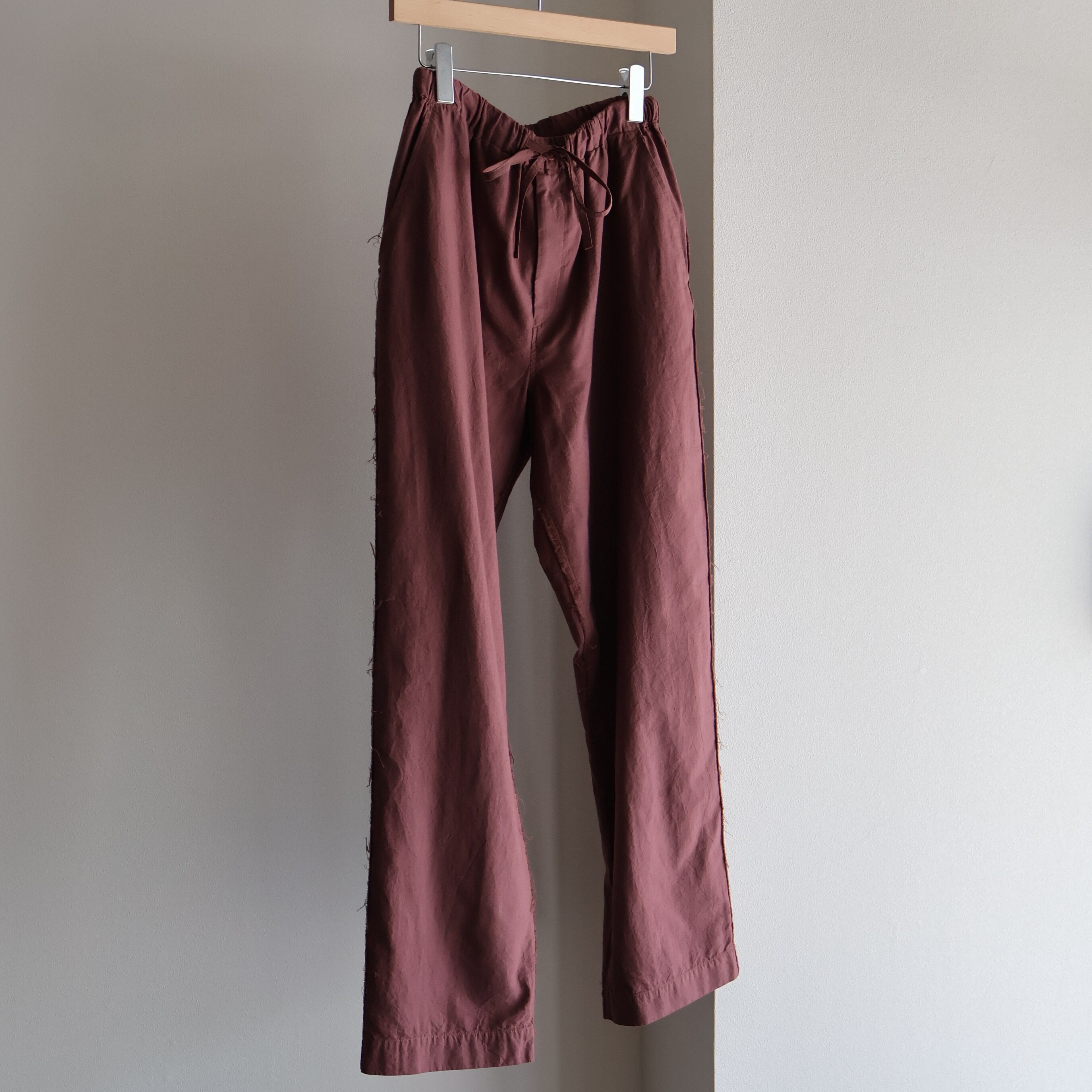 ゆったりとしたシルエッでと素材の持つポテンシャルで、着用した時の快適さはなんとも言えない1本です。