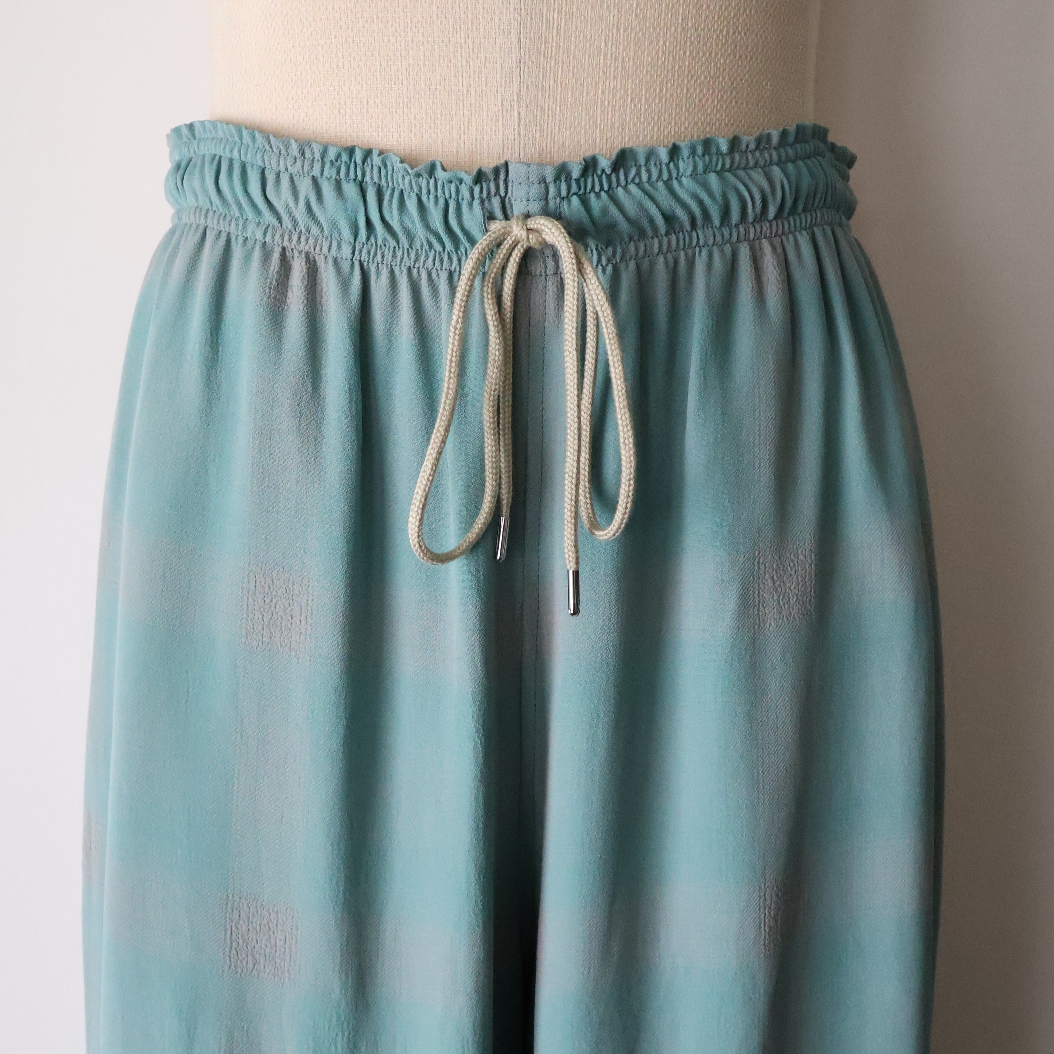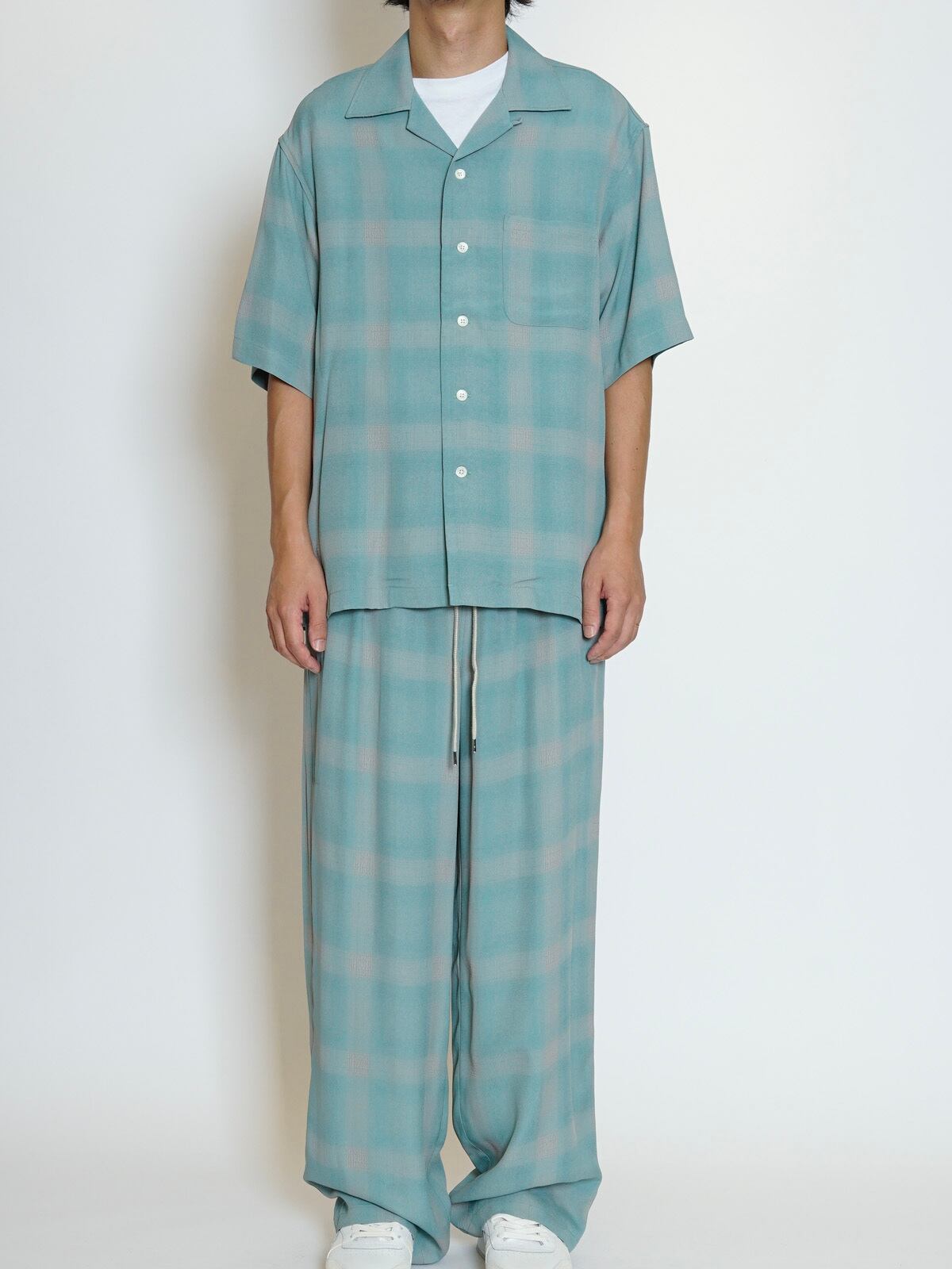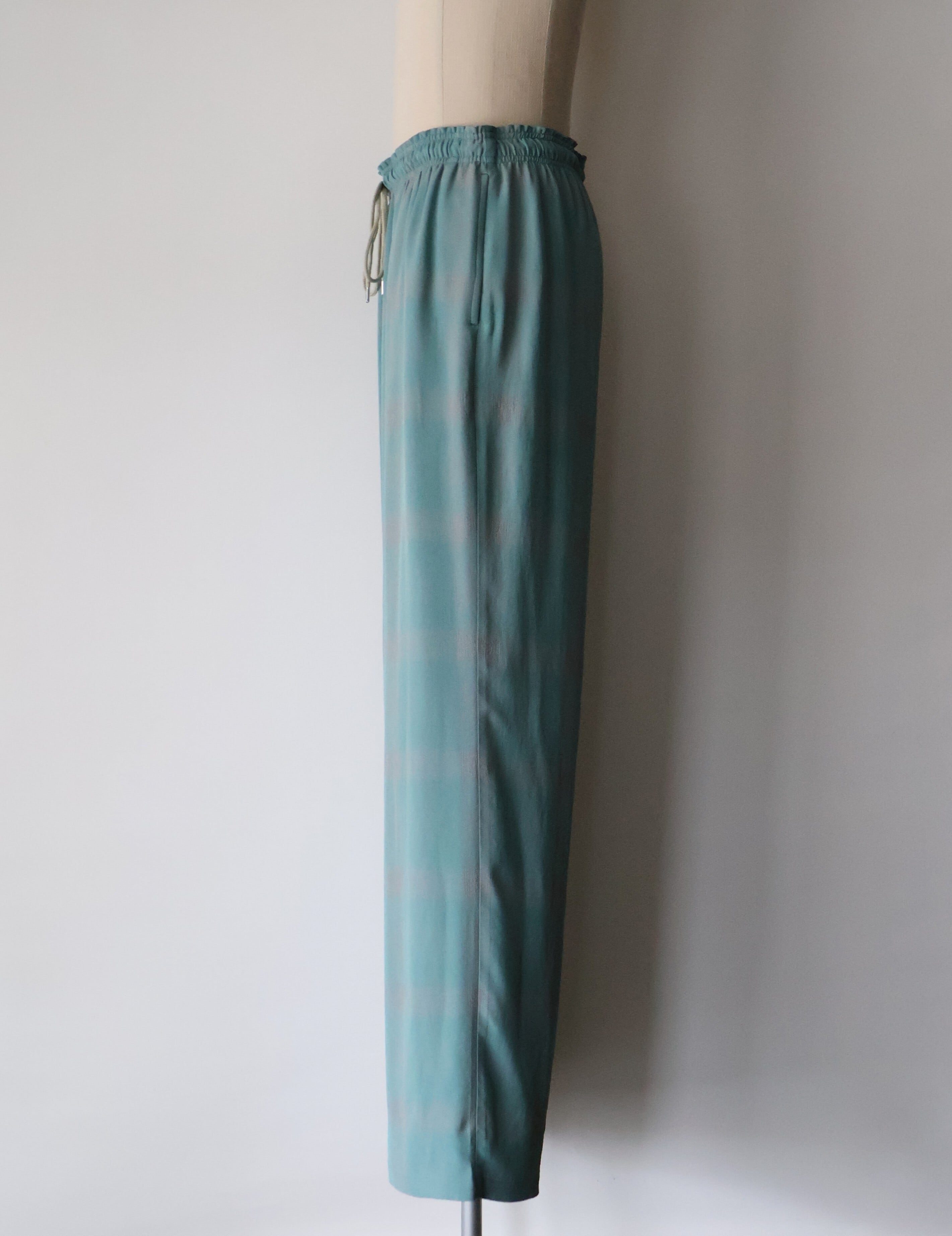 オリジナルで作成したアセテートとレーヨン素材を使った非常に落ち感のあるチェックを使用したラウンジパンツになります。