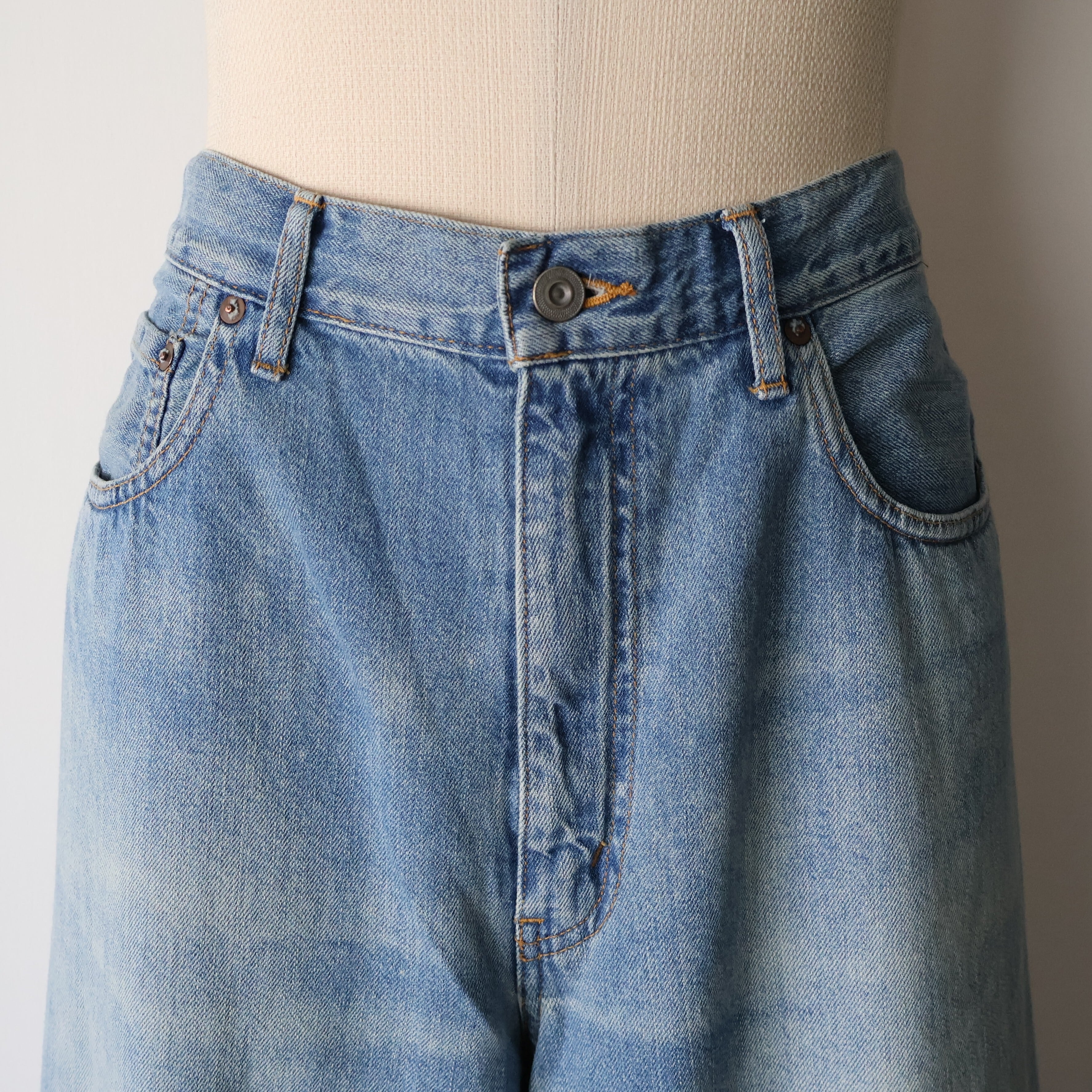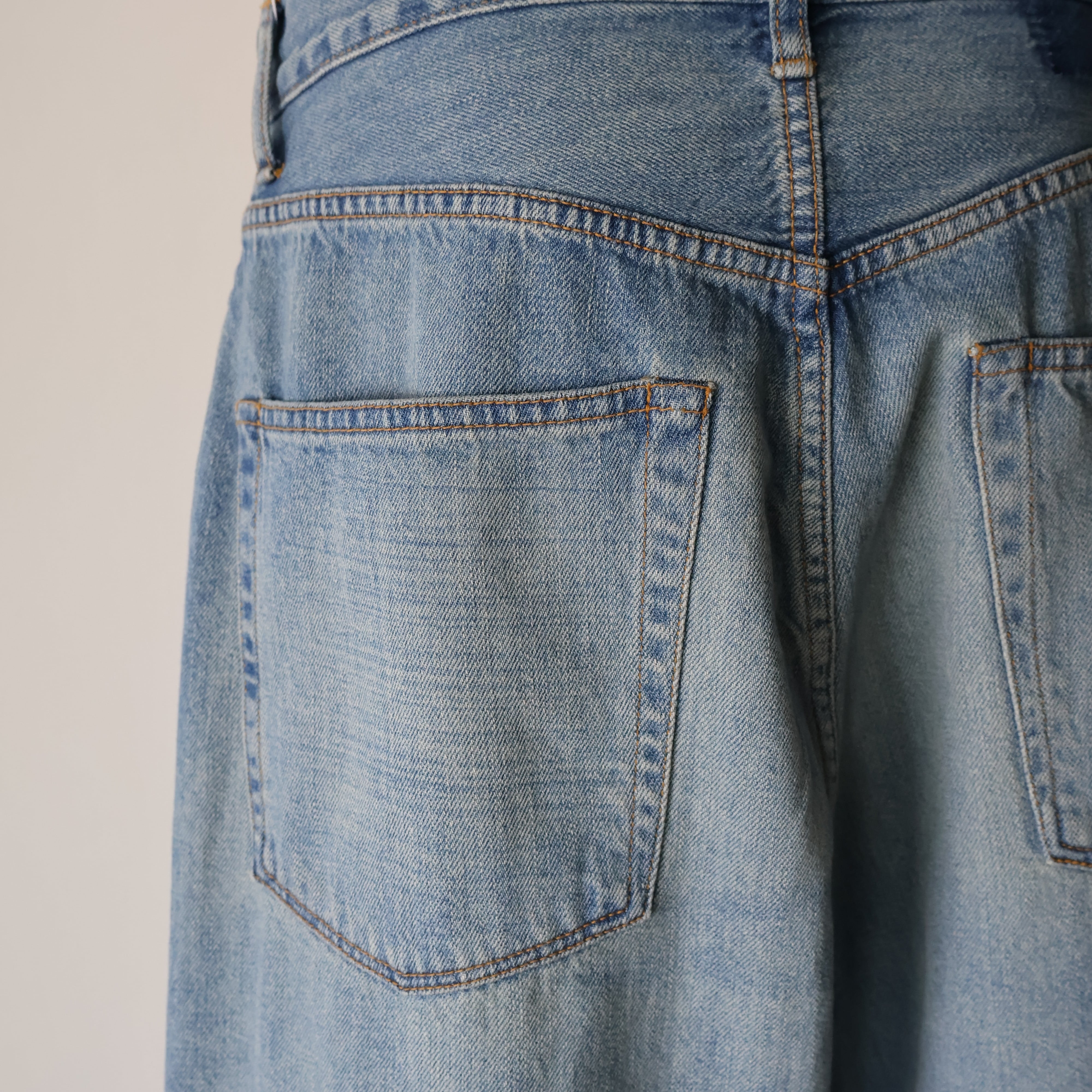 awasa “ selvage light oz denim 5 pocket wide pants ( Indigo fade ) “