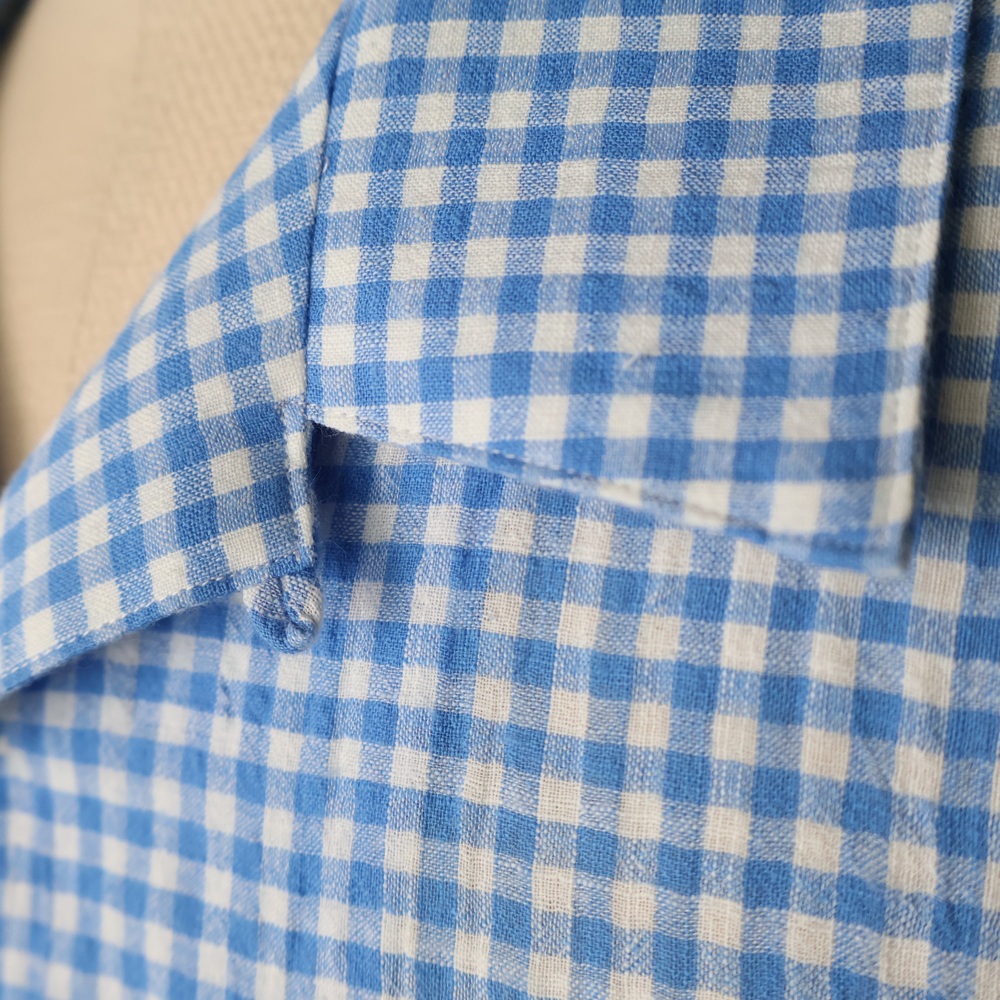 経緯共に50/1 スラブ糸を使用したビンテージの平織り先染めギンガムチェック。