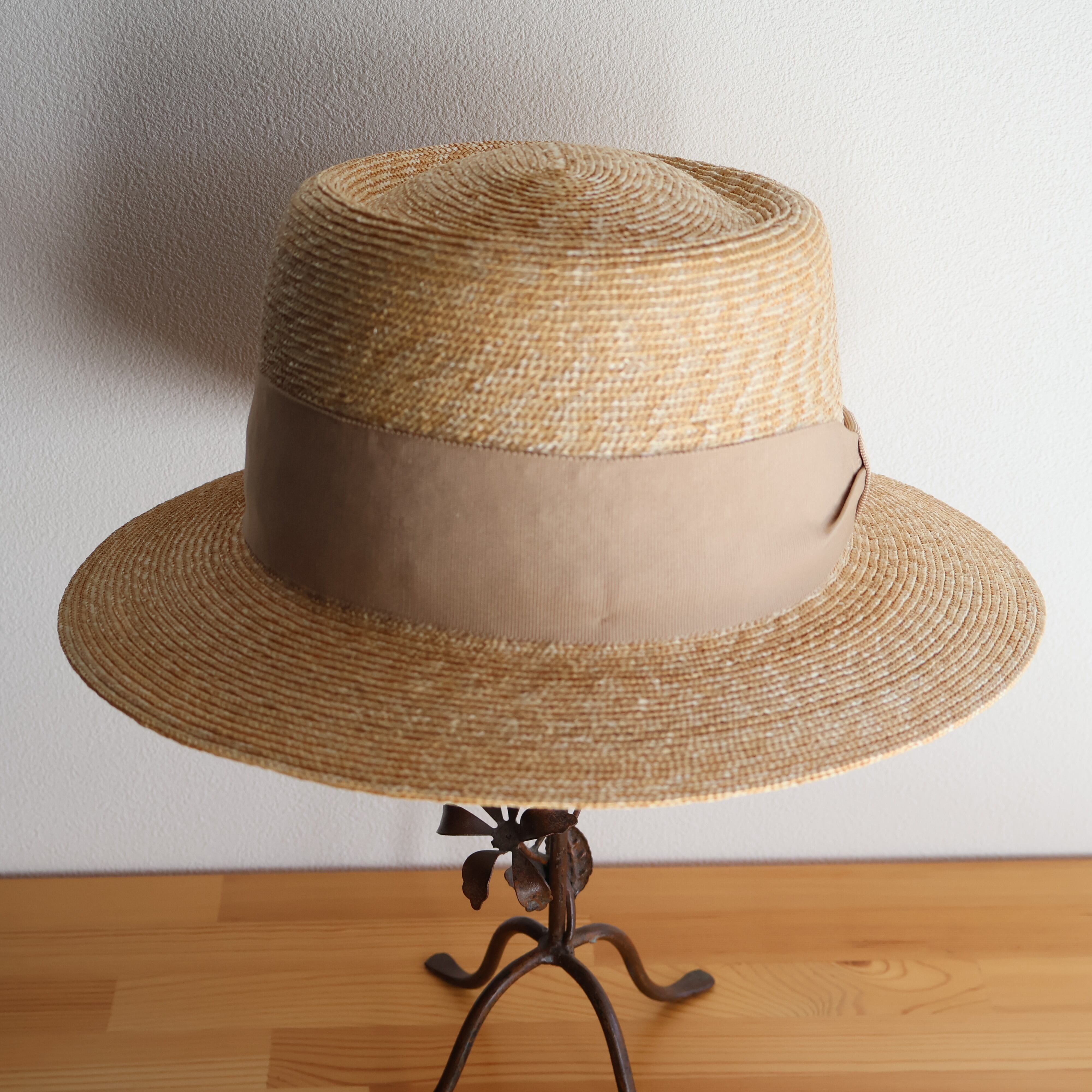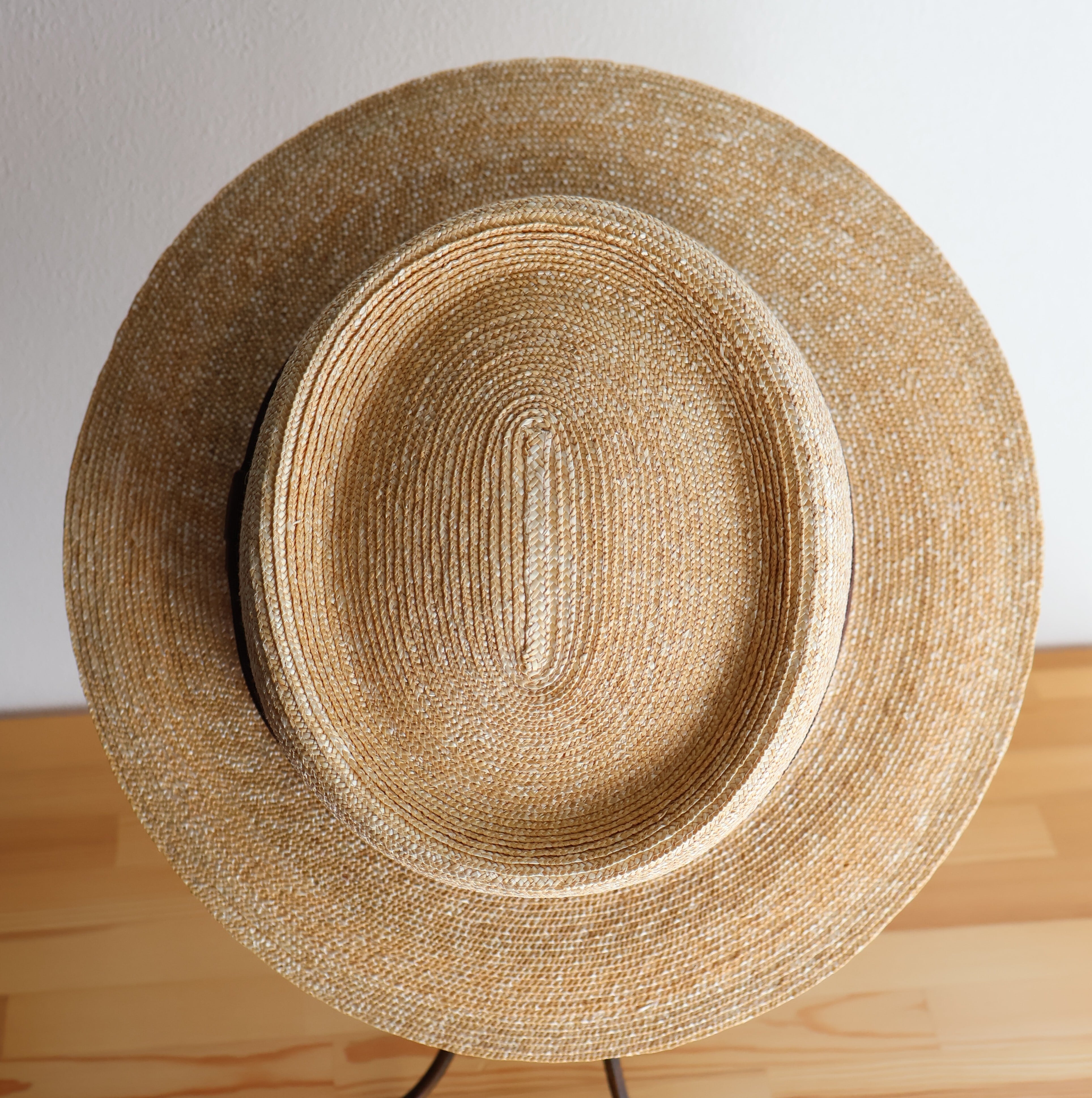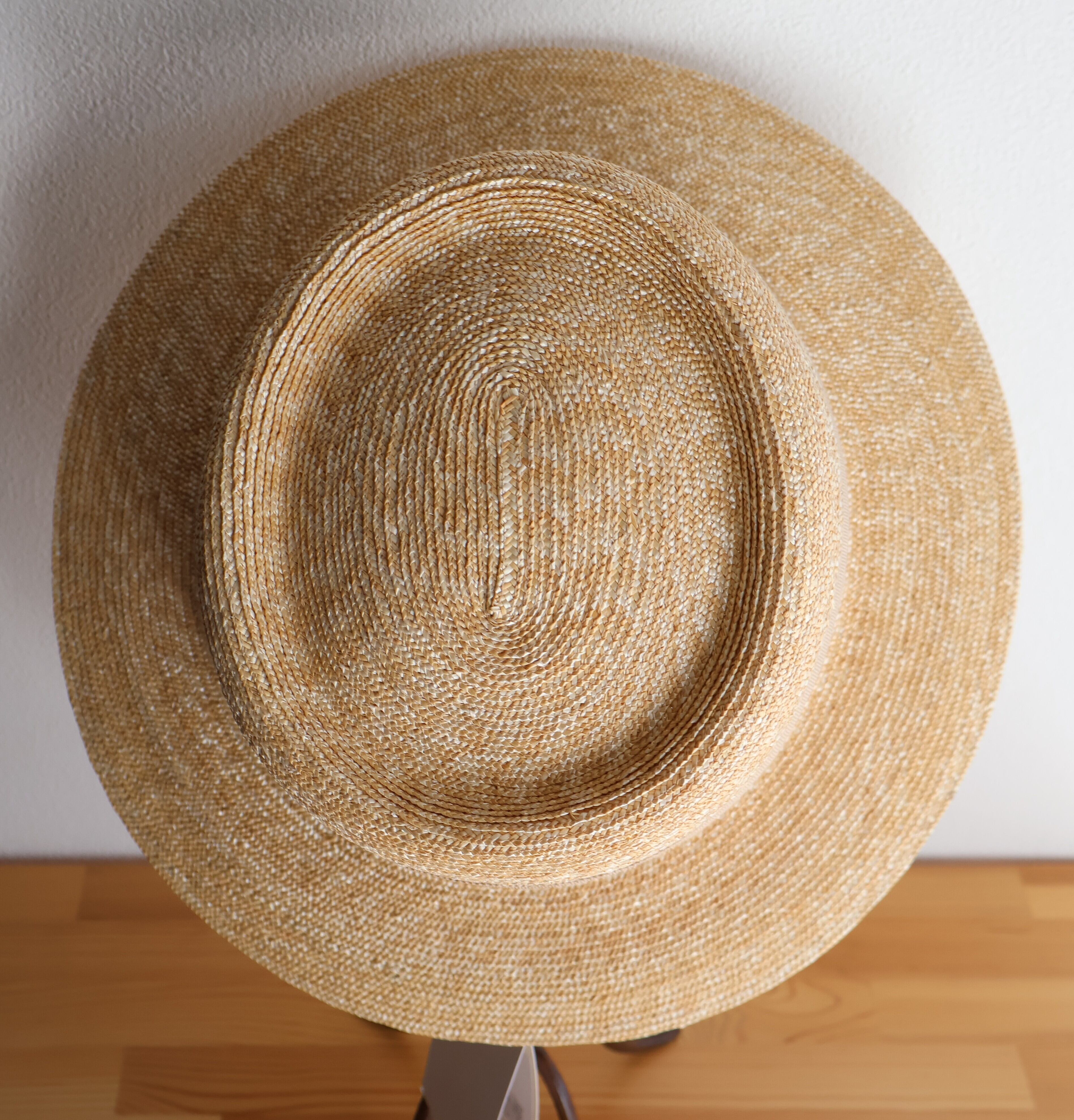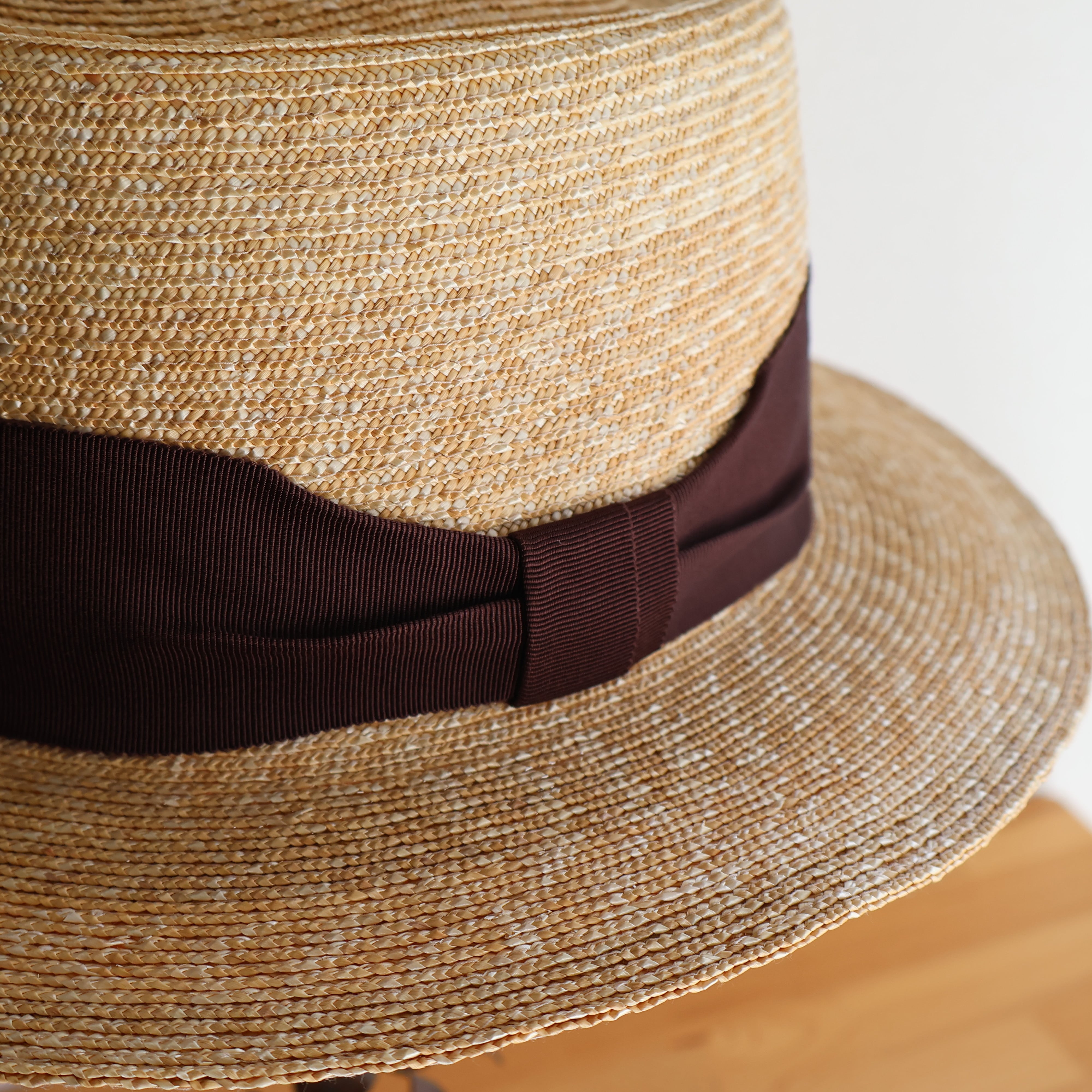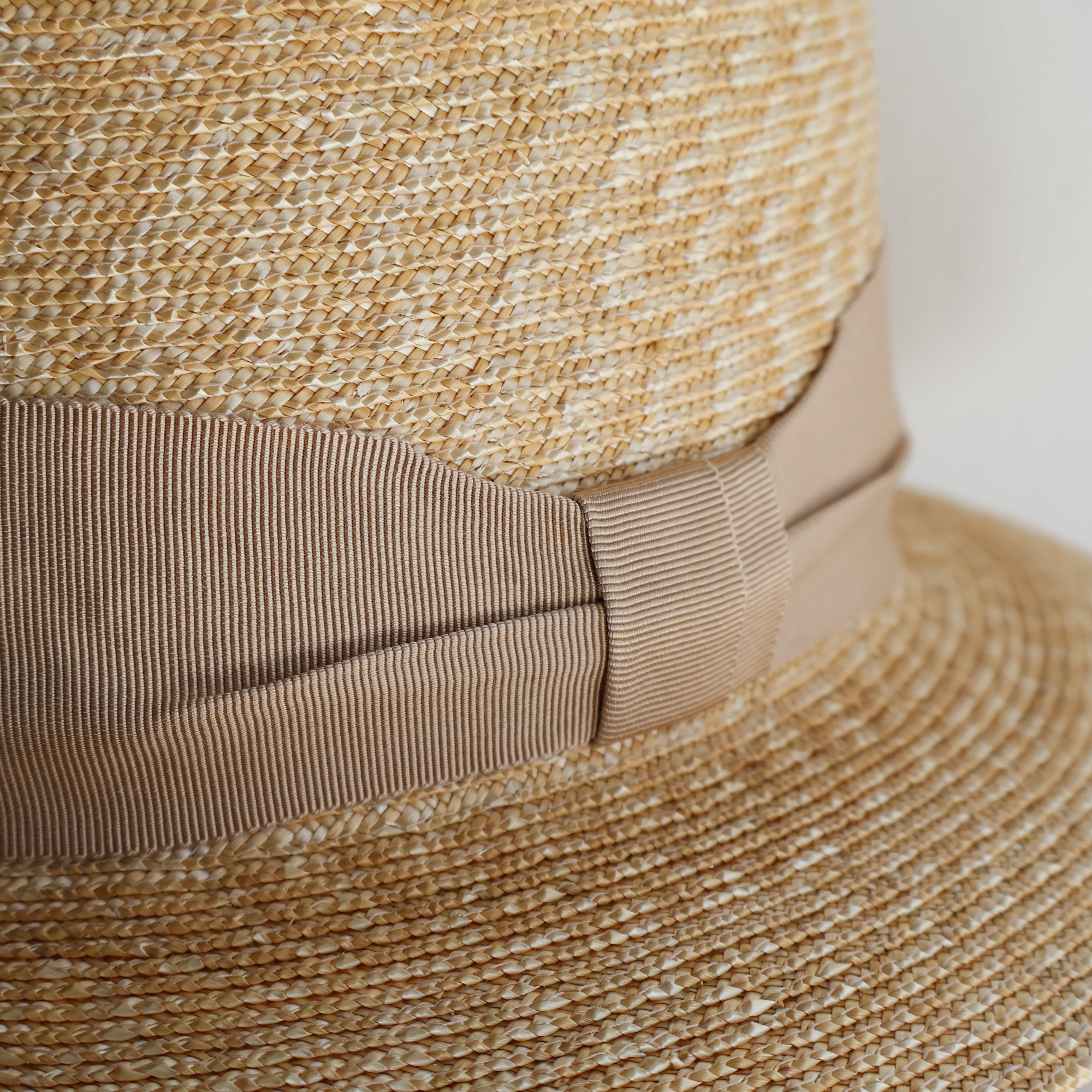 細幅のストローブレードで仕立てたクラシックな佇まいのストローハットになります。