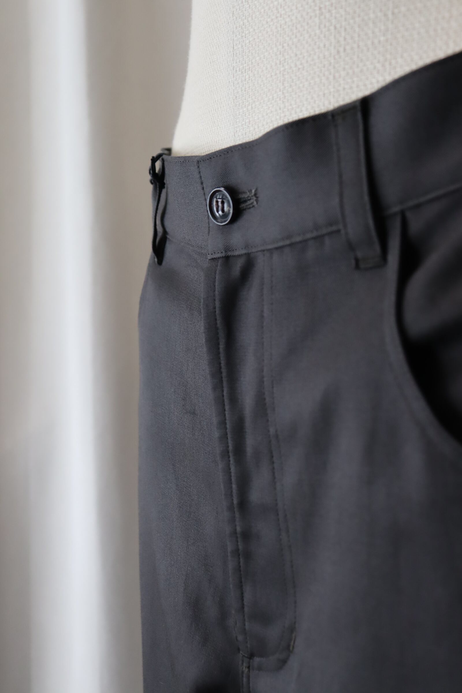 カジュアルパンツ特有の野暮ったさを排除すべく、もたつきのない程度にピップ周りなどを中心に微調整をかけたストレートシルエット。丈感はジャスト丈程度.