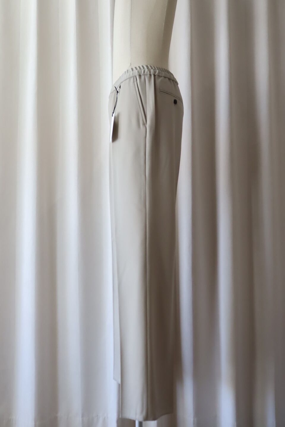 裾の始末はアンフィニッシュにしており、ご自身にて最適なレングスに裾調整をして頂くことで完璧なフォルムを形成することが出来ます。