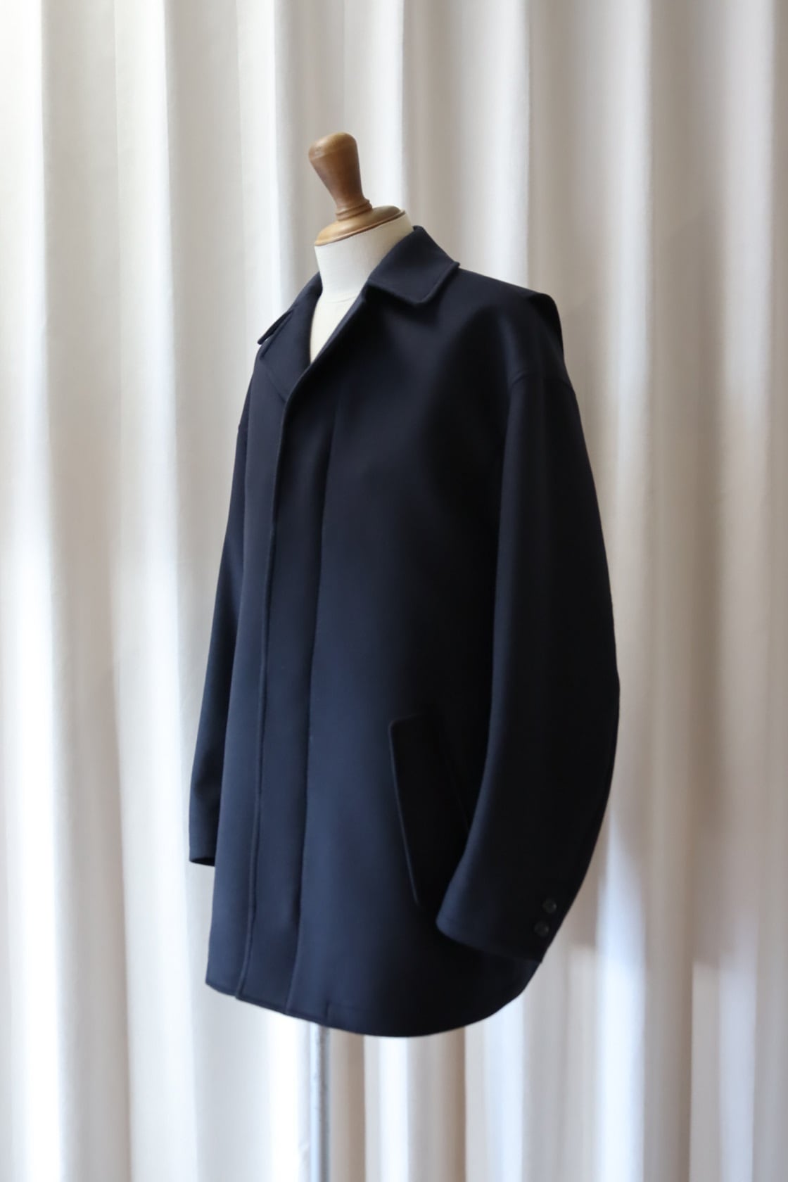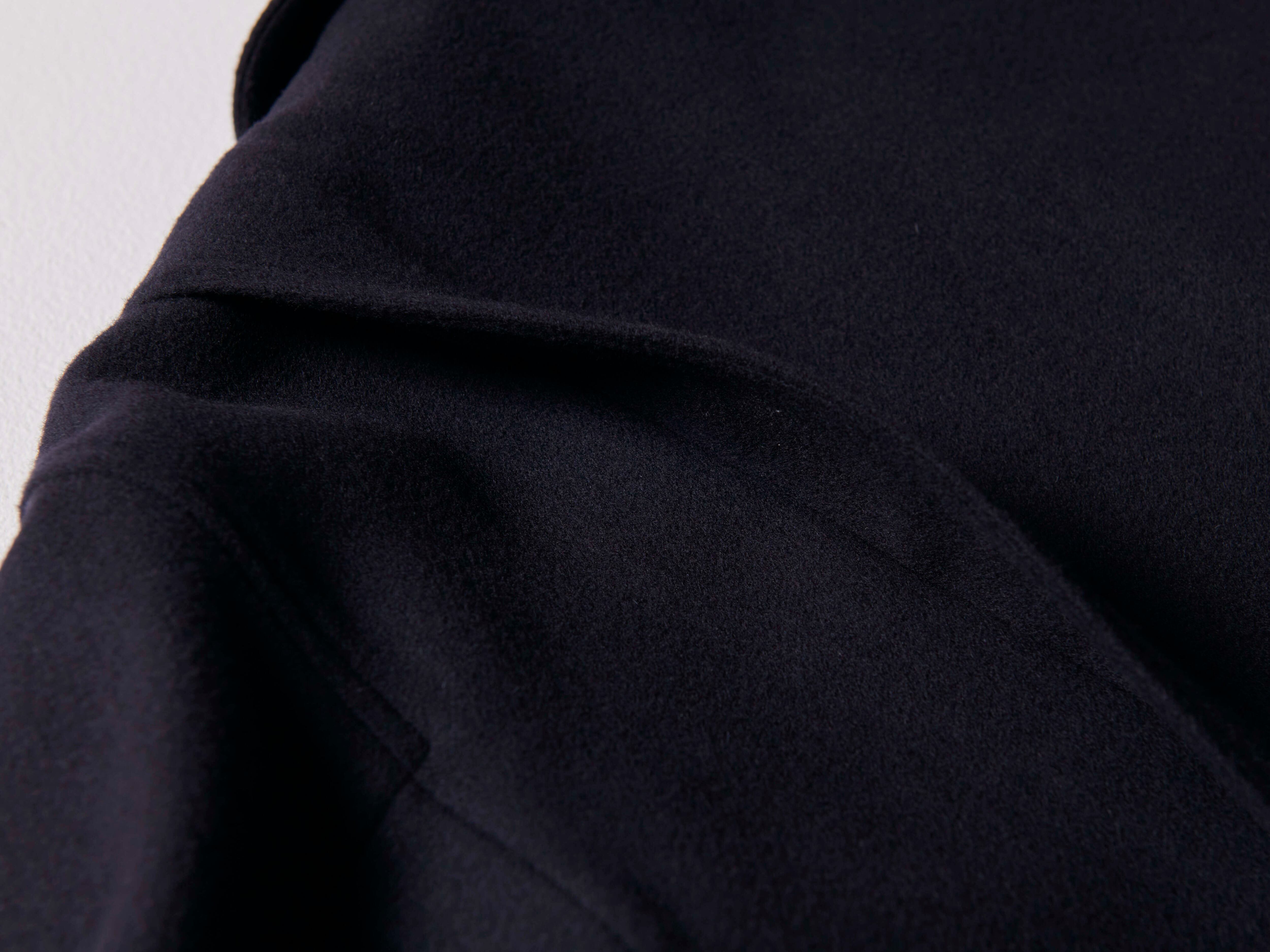 メインディティールはBDU、ボディバランスやシルエットはヴィンテージのPコートより参照。 身幅は広く、着丈はやや長めのリラックスサイジング。