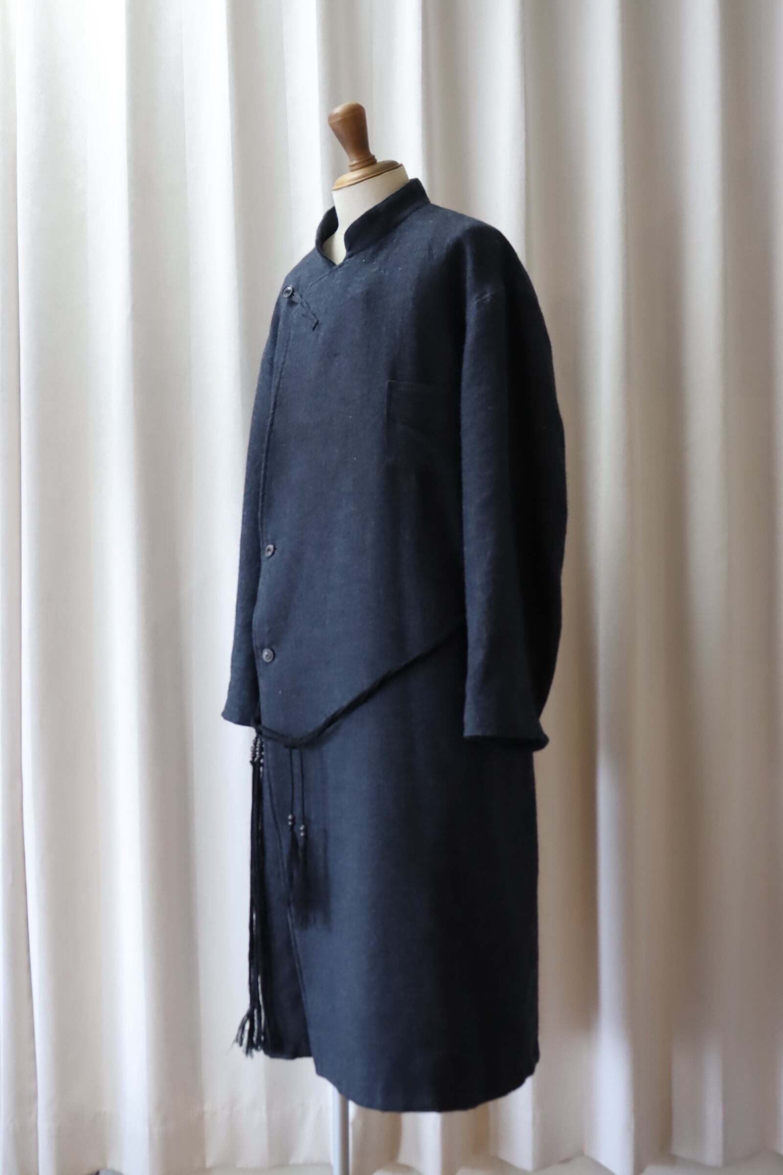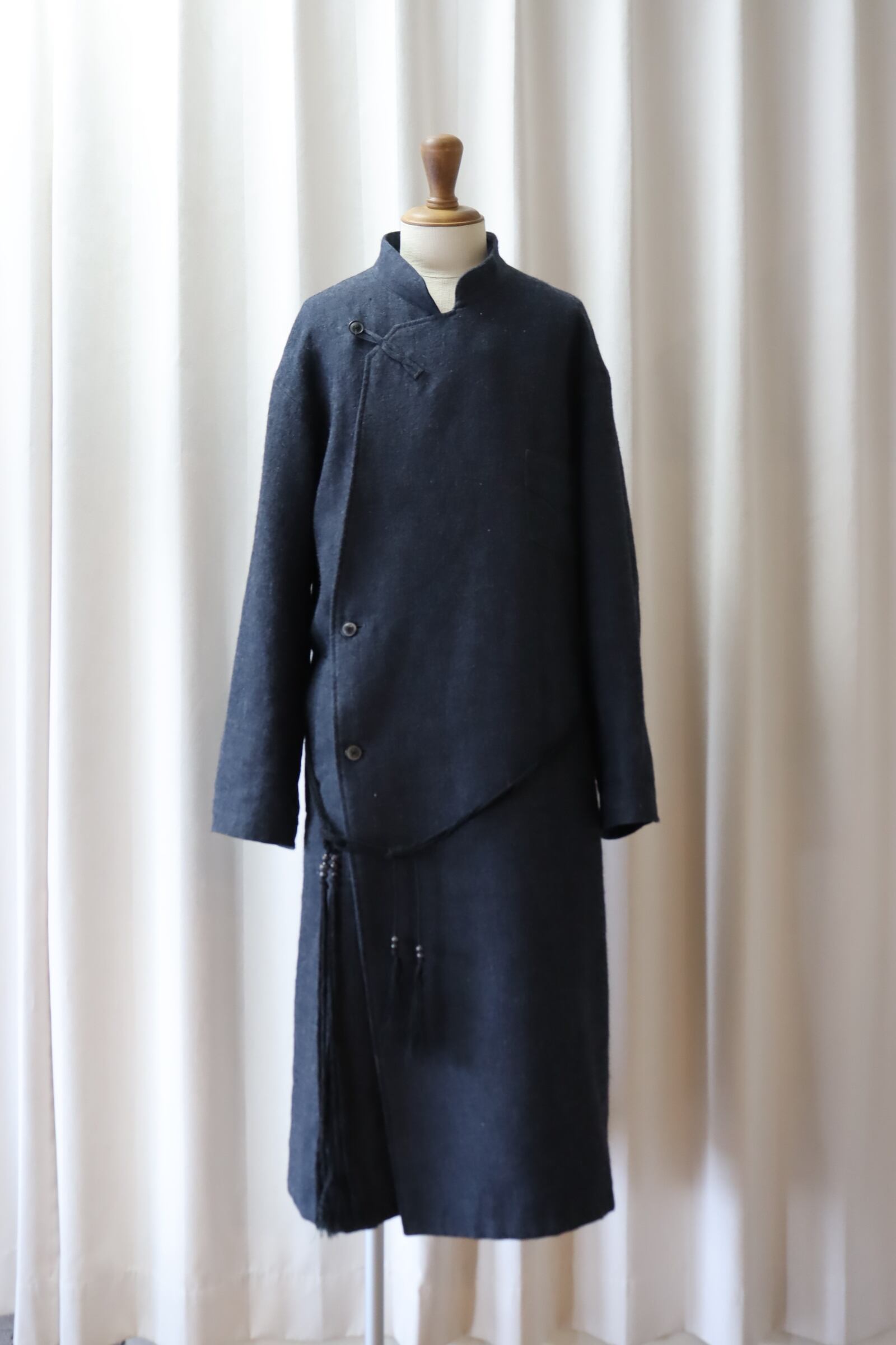 イメージを主軸に置き、前端のカッティングや細やかなディティールの変更や追加を行い、オリエンタルな雰囲気は香る程度におさえ、現代的なウエアとして再構築しております。