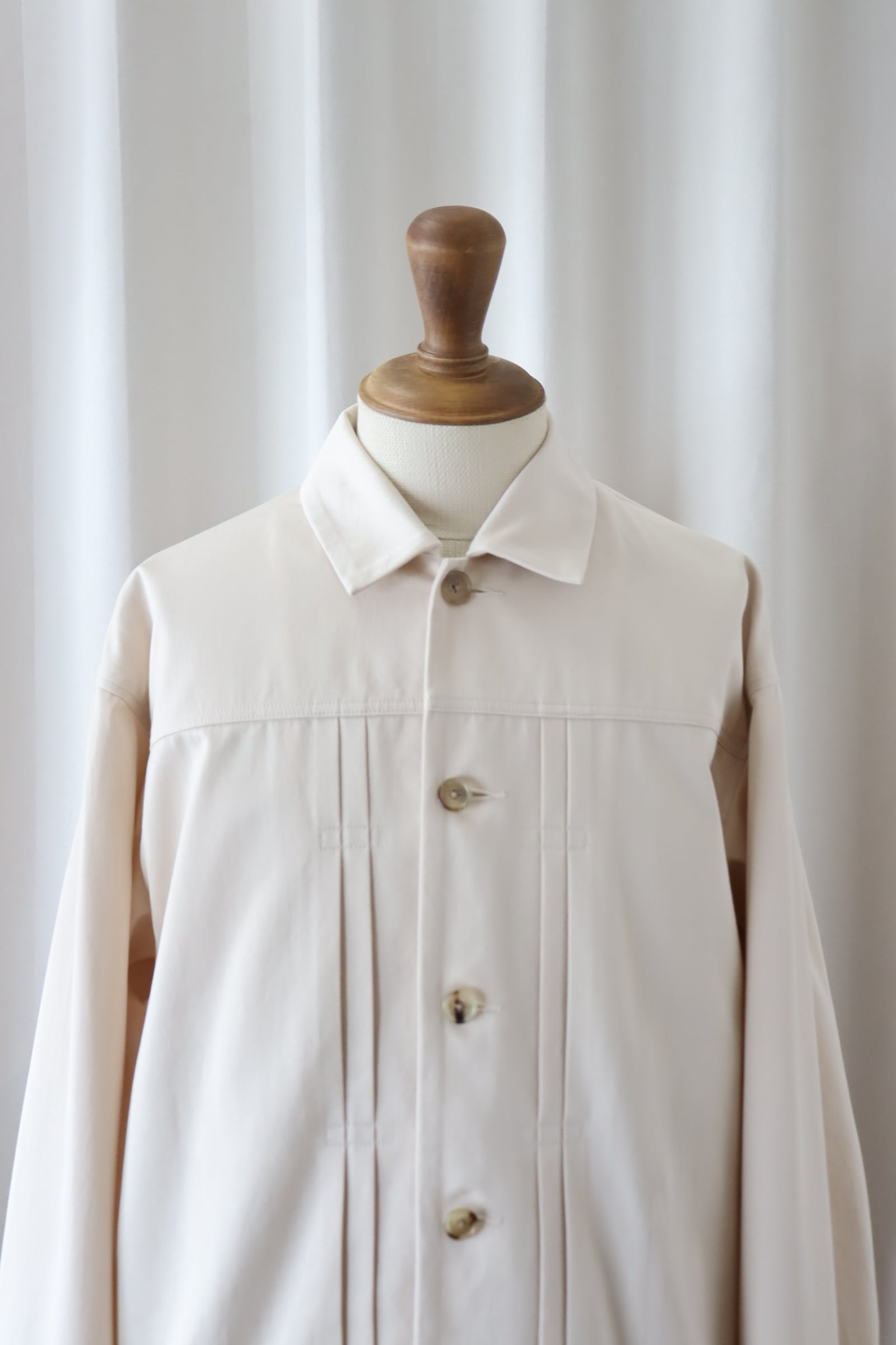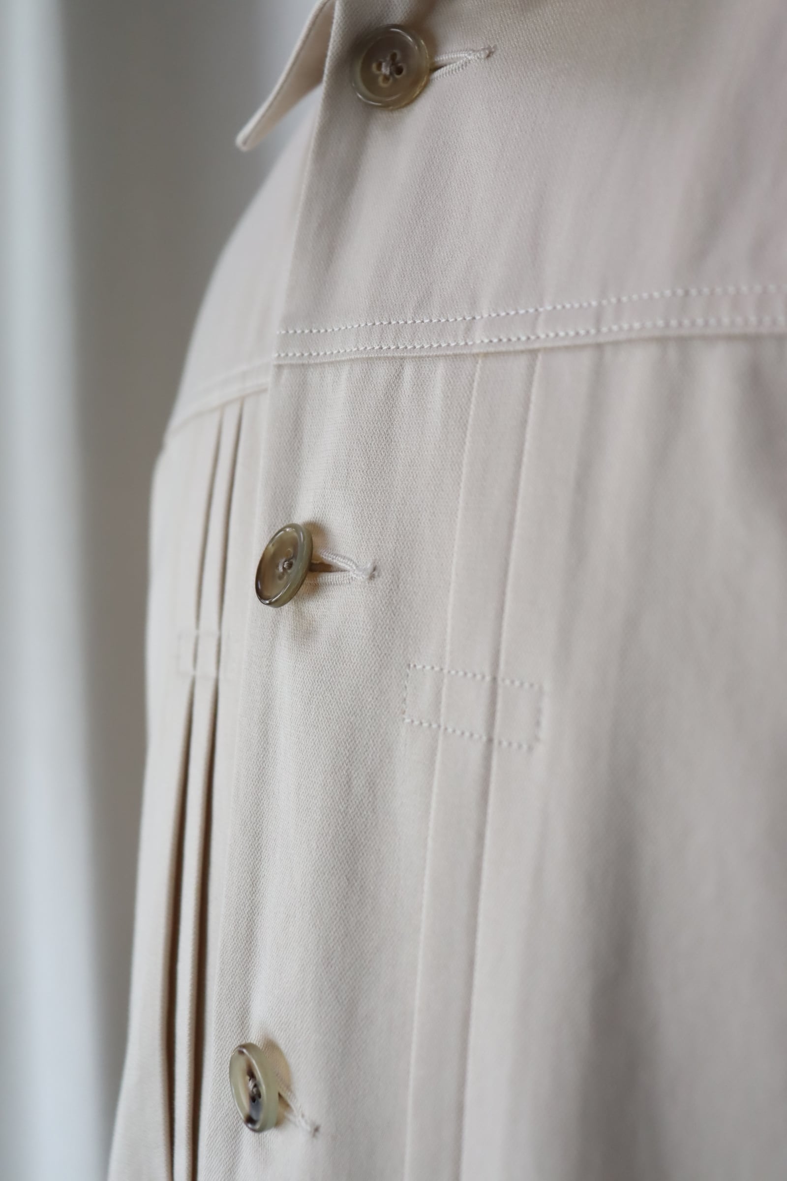 金属タックボタンは使用せず本水牛ボタンで凛と引き締めています。