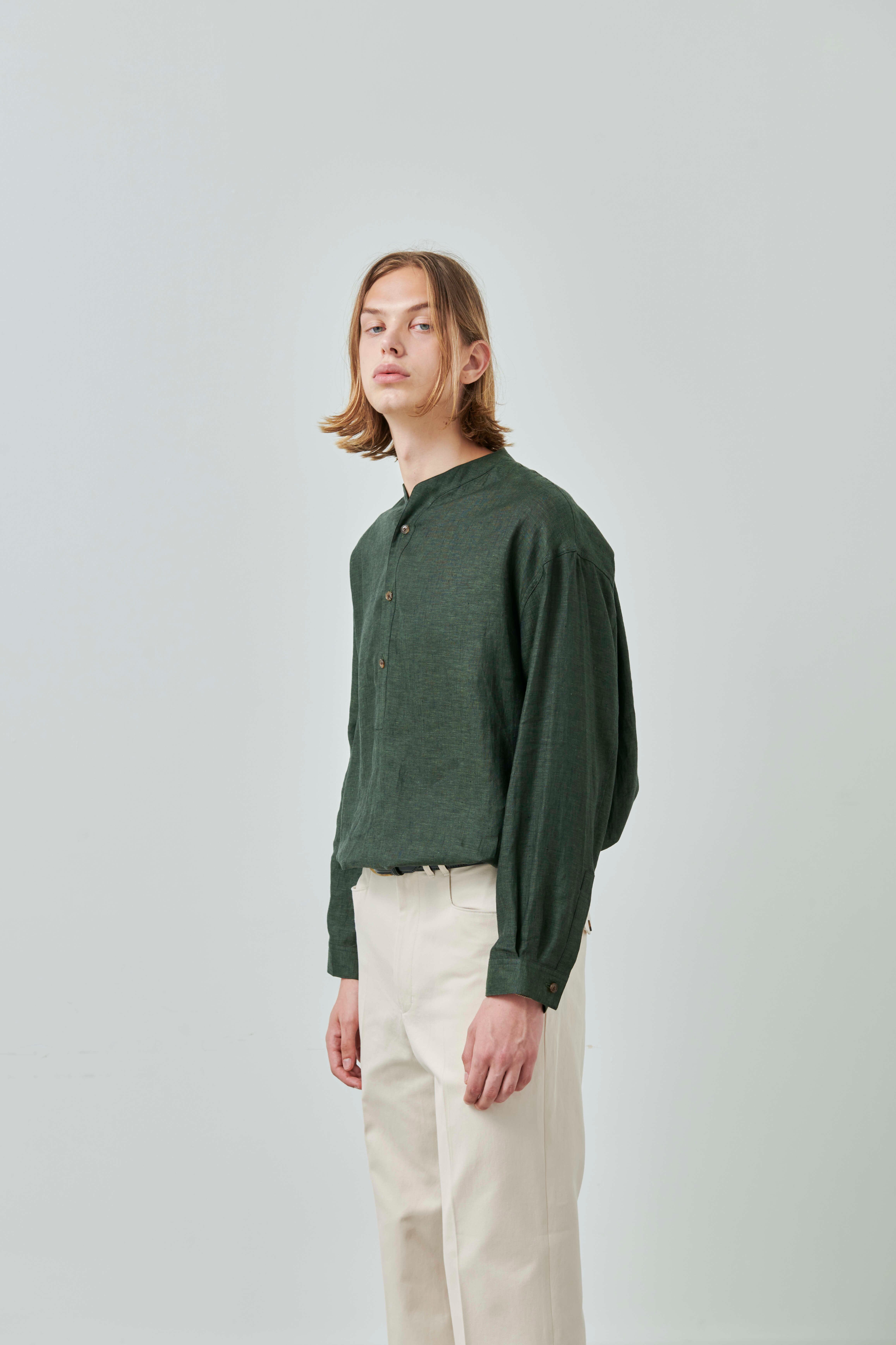 tilt The authentics " Soft Linen Pull Over Shirt (Dark Green)"