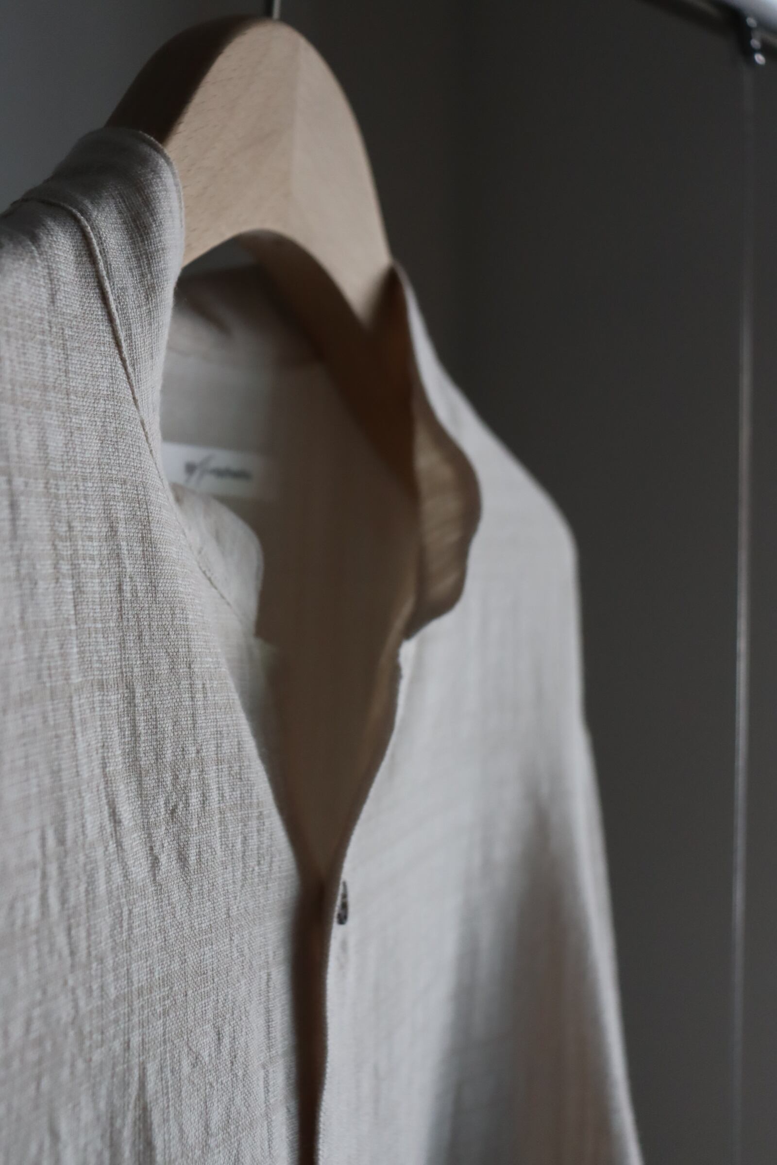 またシャツを仕立てる際に各所に用いる接着芯の類は一切使用せずニュアンスを重視してお仕立てております。非常に肌当たりも良く春先から真夏、初秋までお召しになっていただけるシャツとなっております。