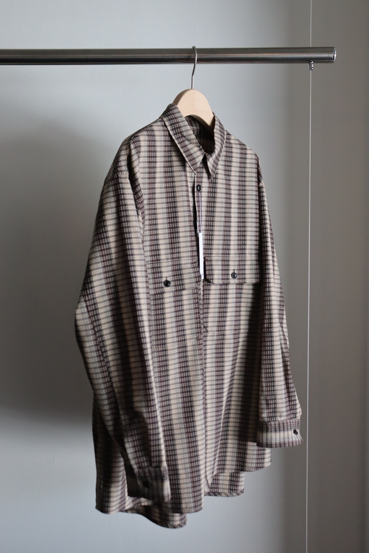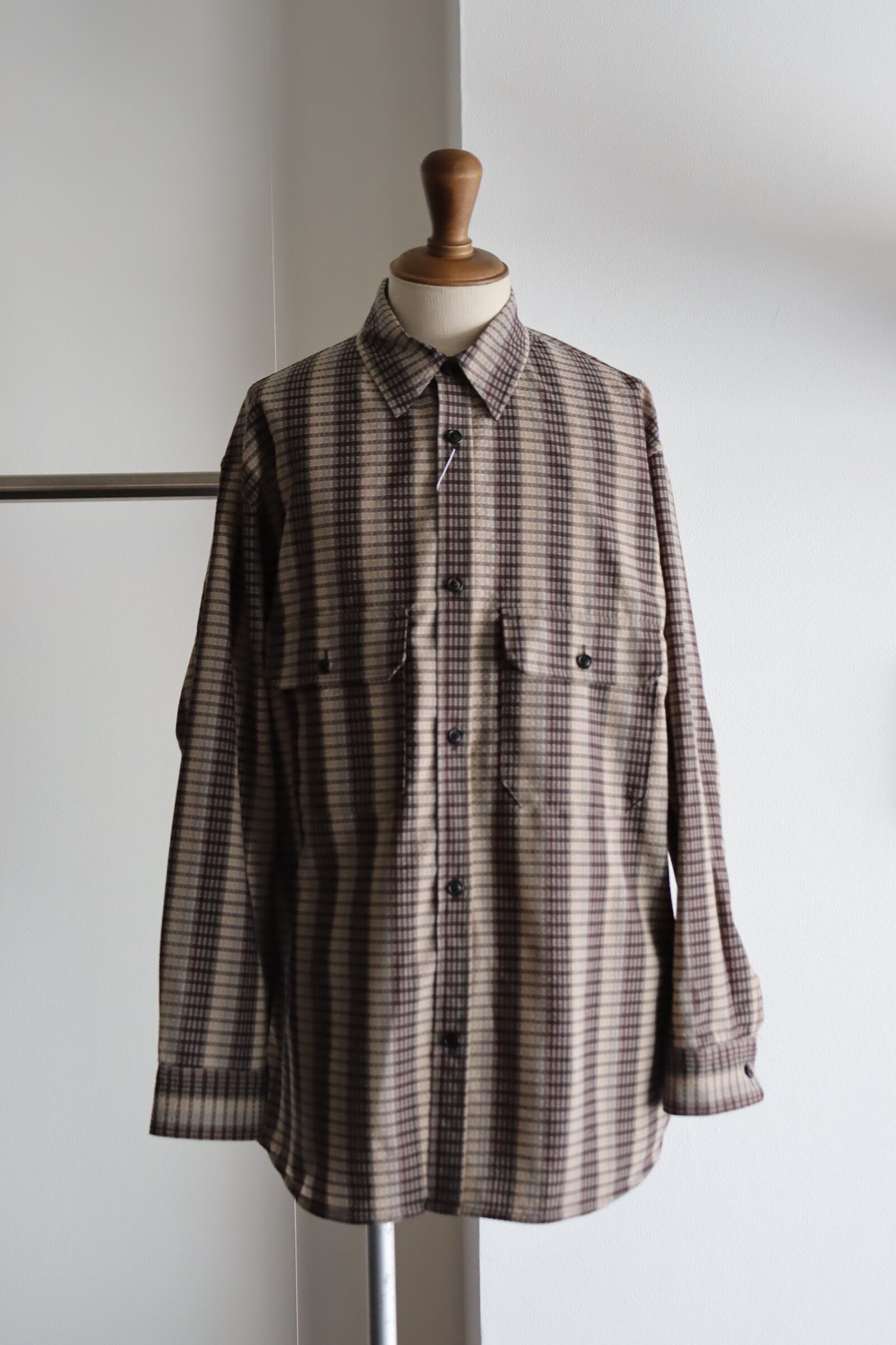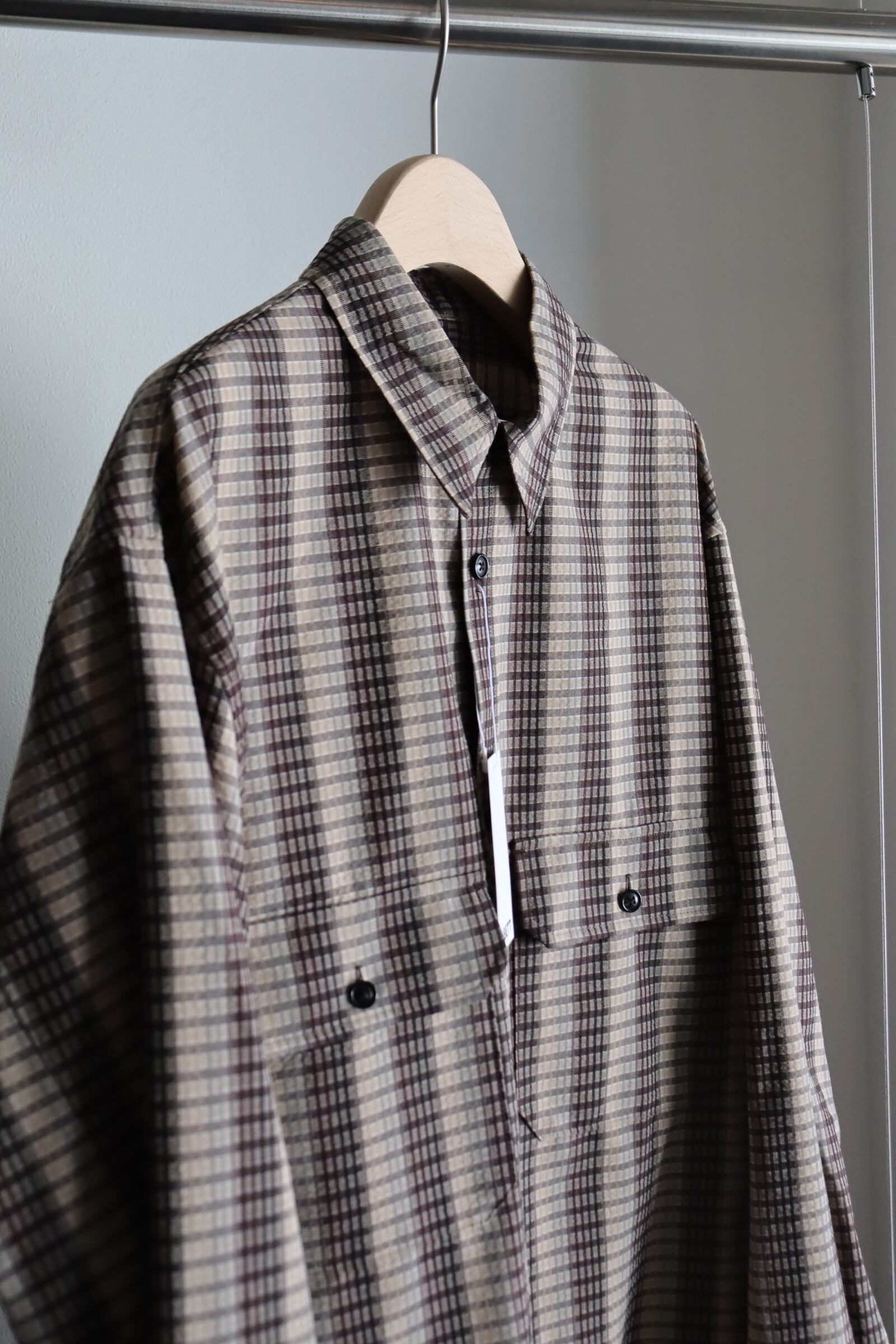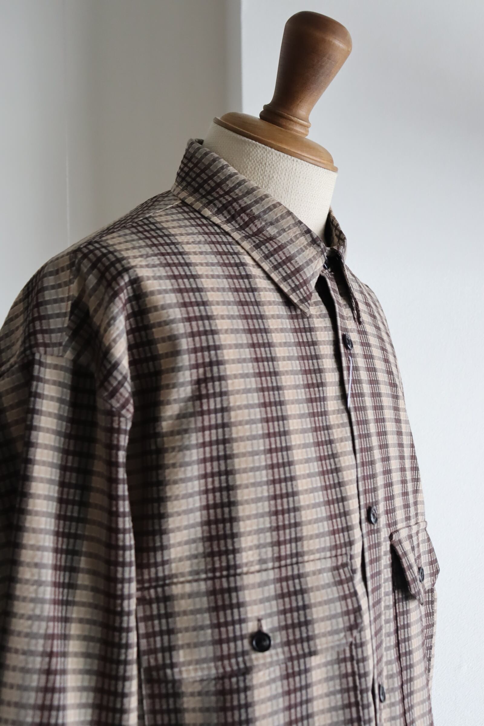 AUBETT " Summer Wool 二重ビームサッカー2ポケットシャツ(Brown)"