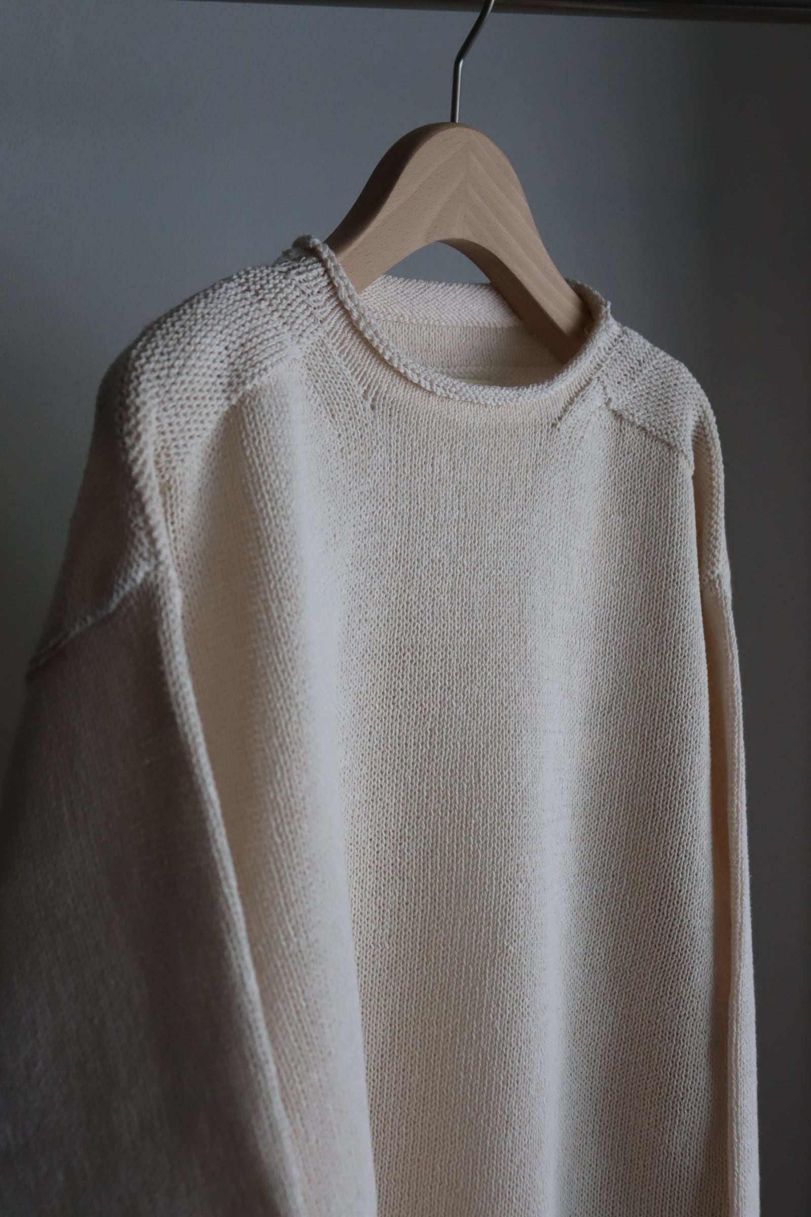 本来の目的の元では固く重たいものとなってしまいますが、現代的観点を取り込んだガンジーニットとしてリラックス感のある90年代のニットのイメージで仕上げられております。