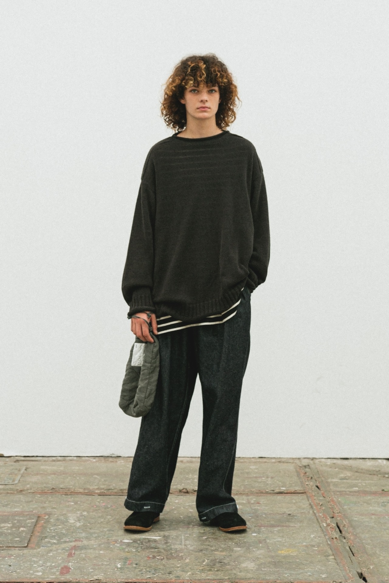 本来の目的の元では固く重たいものとなってしまいますが、現代的観点を取り込んだガンジーニットとしてリラックス感のある90年代のニットのイメージで仕上げられております。