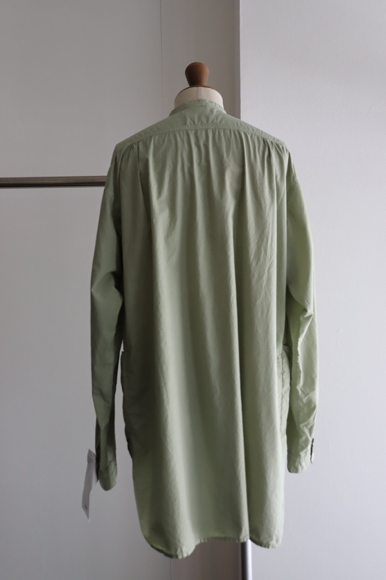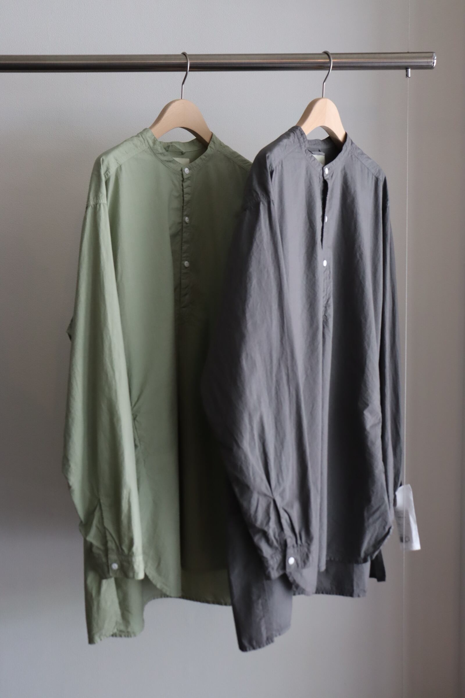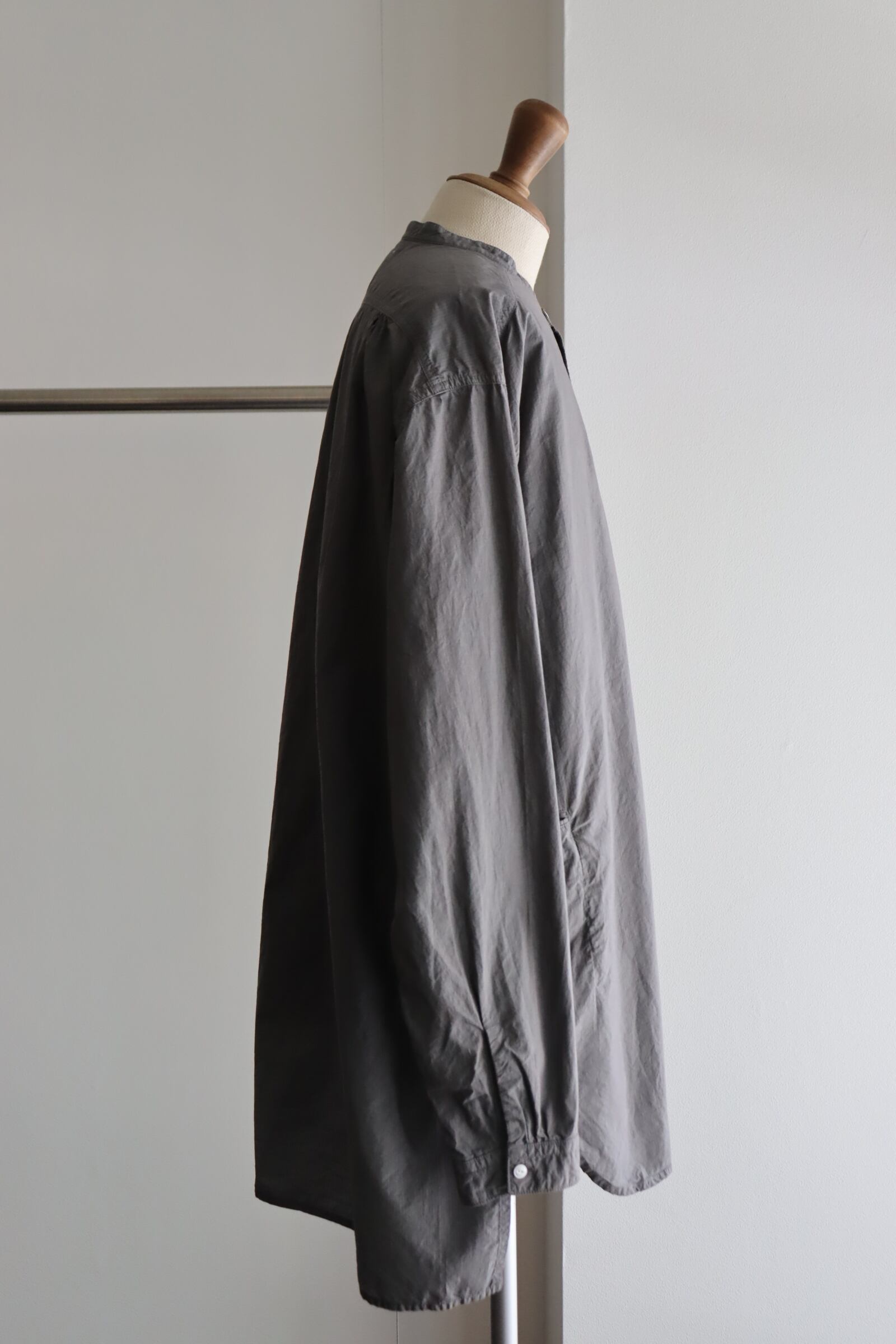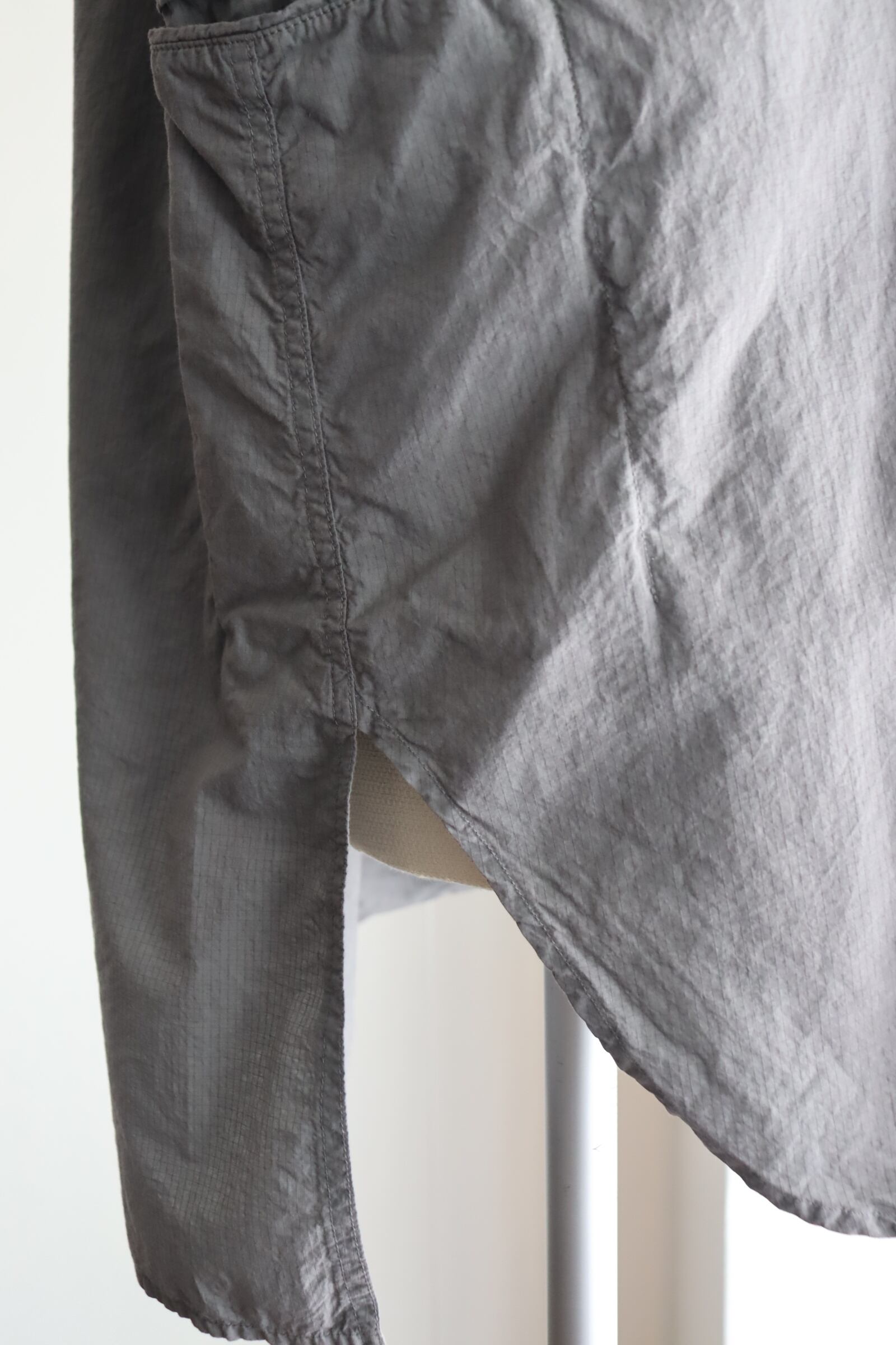 シルエットはオーバーサイズのグランパシャツをイメージしてウエスト部分に両⽟縁のポケッ
