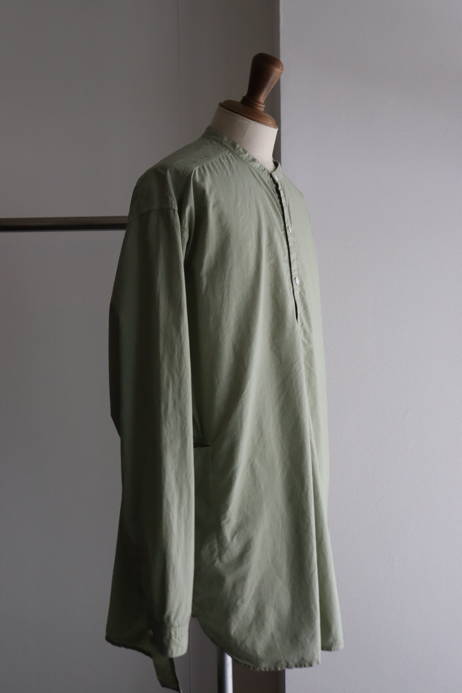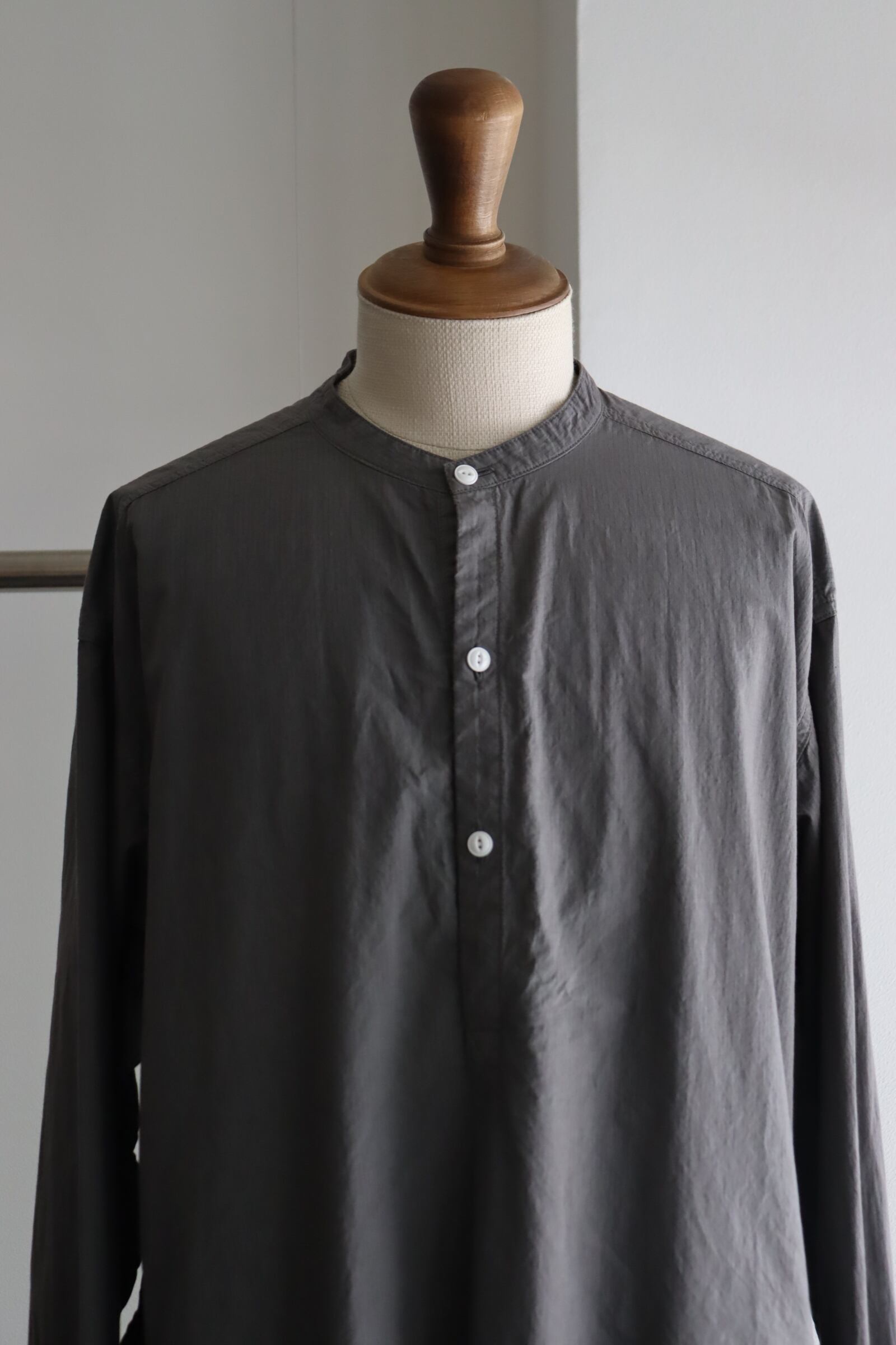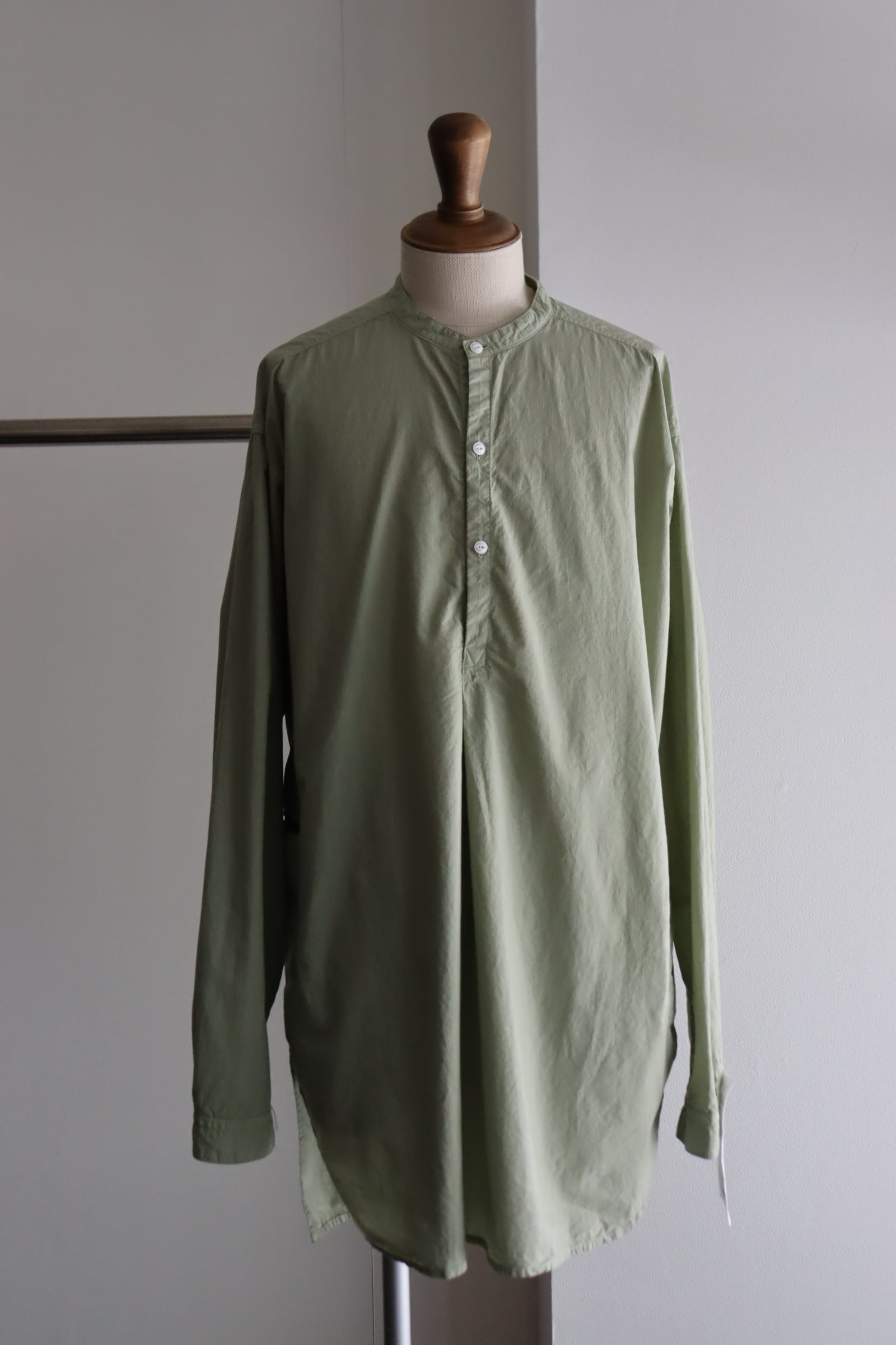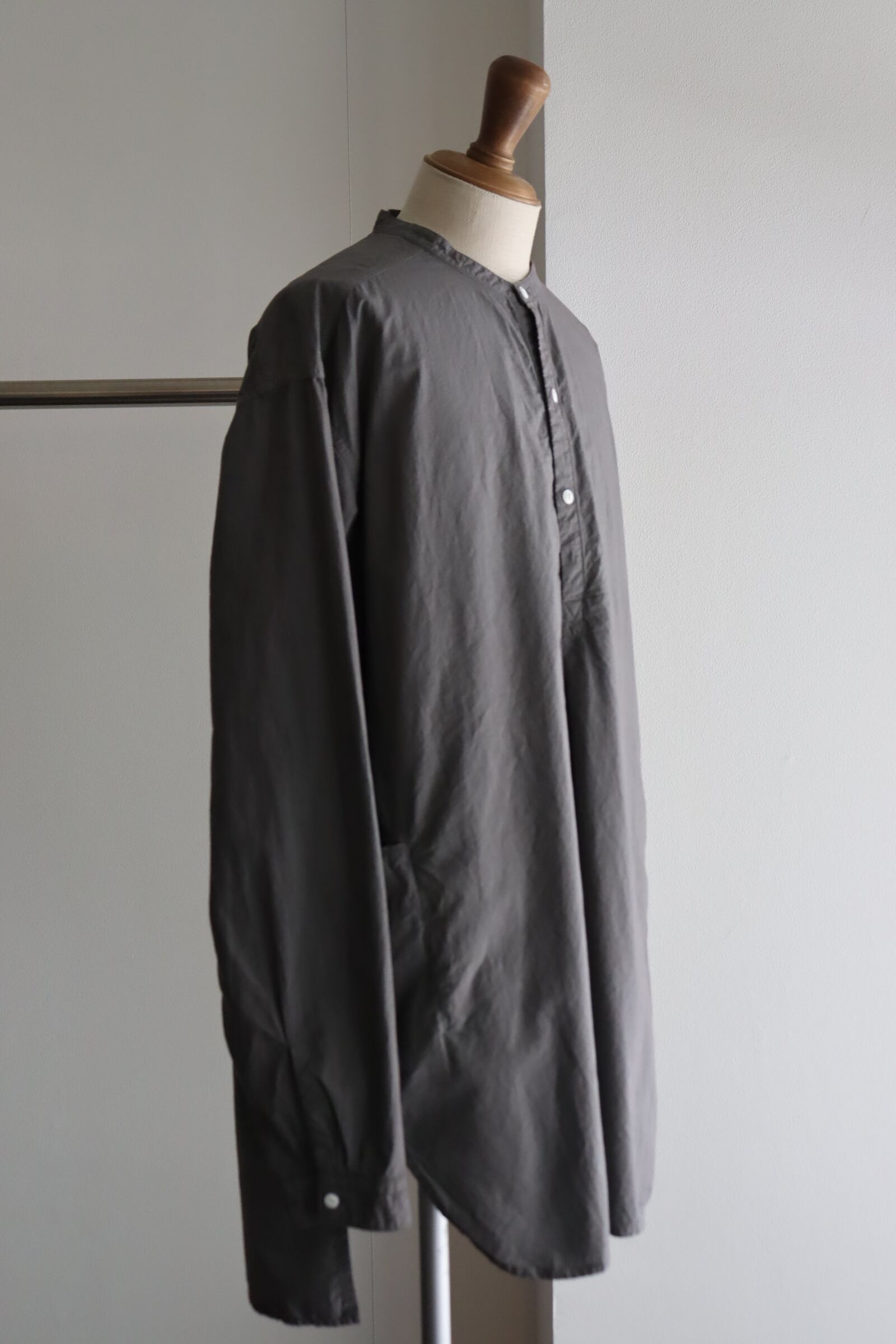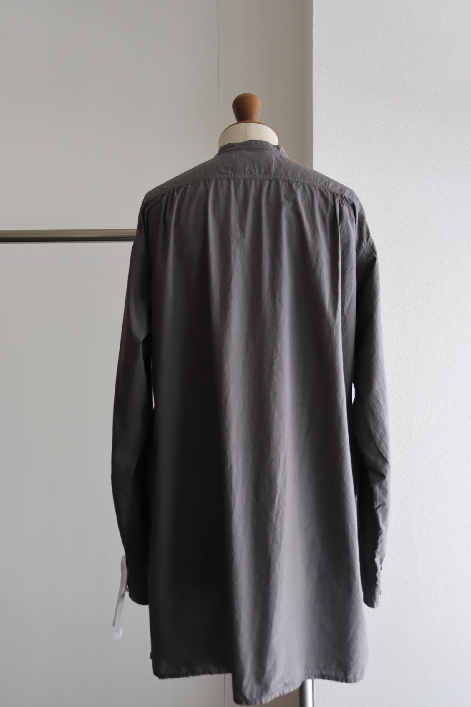 シルエットはオーバーサイズのグランパシャツをイメージしてウエスト部分に両⽟縁のポケッ