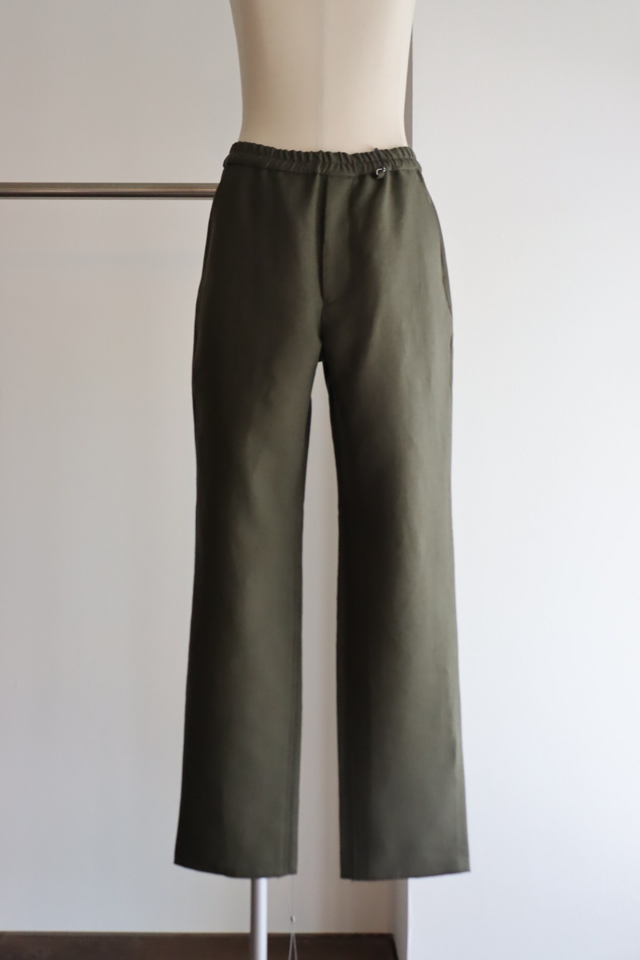 太番手のリネンの平織りをゆっくりと高密度に織り上げた生地を使用したストレートシルエットのスラックス。