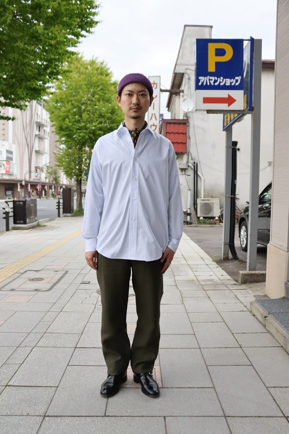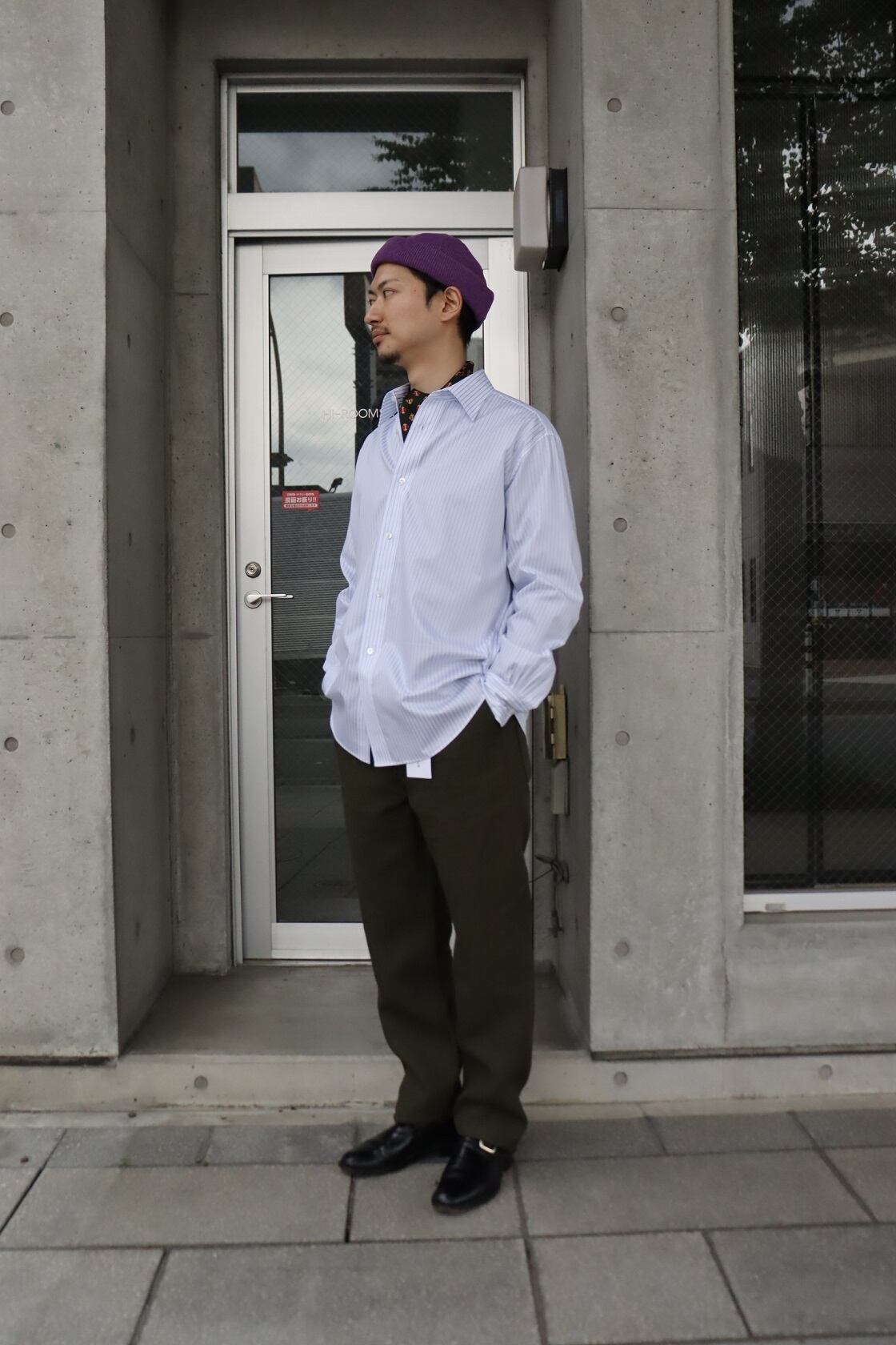 一手間加えた双糸で織り上げられた生地のシワは丸みのあるシワとなり、月日を掛けて着用している人に寄り添った風合いに育っていくことでしょう。