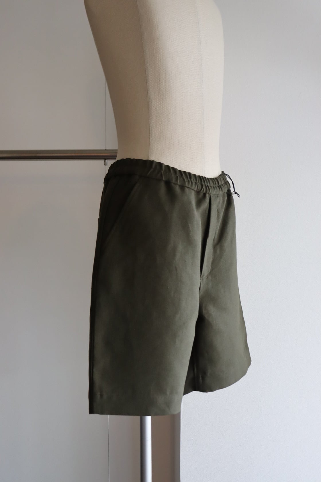 太番手のリネンの平織りをゆっくりと高密度に織り上げた生地を使用したショーツ。