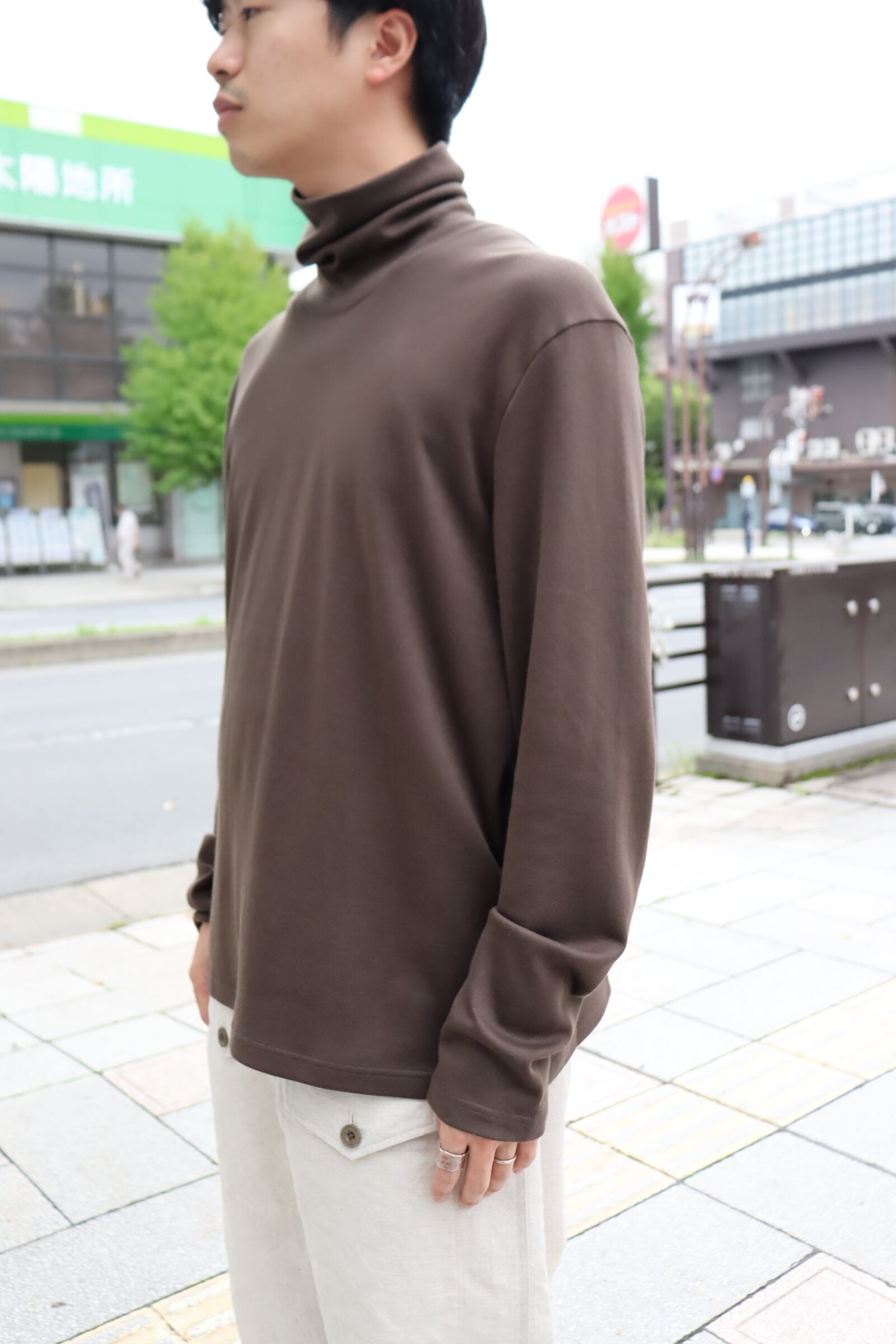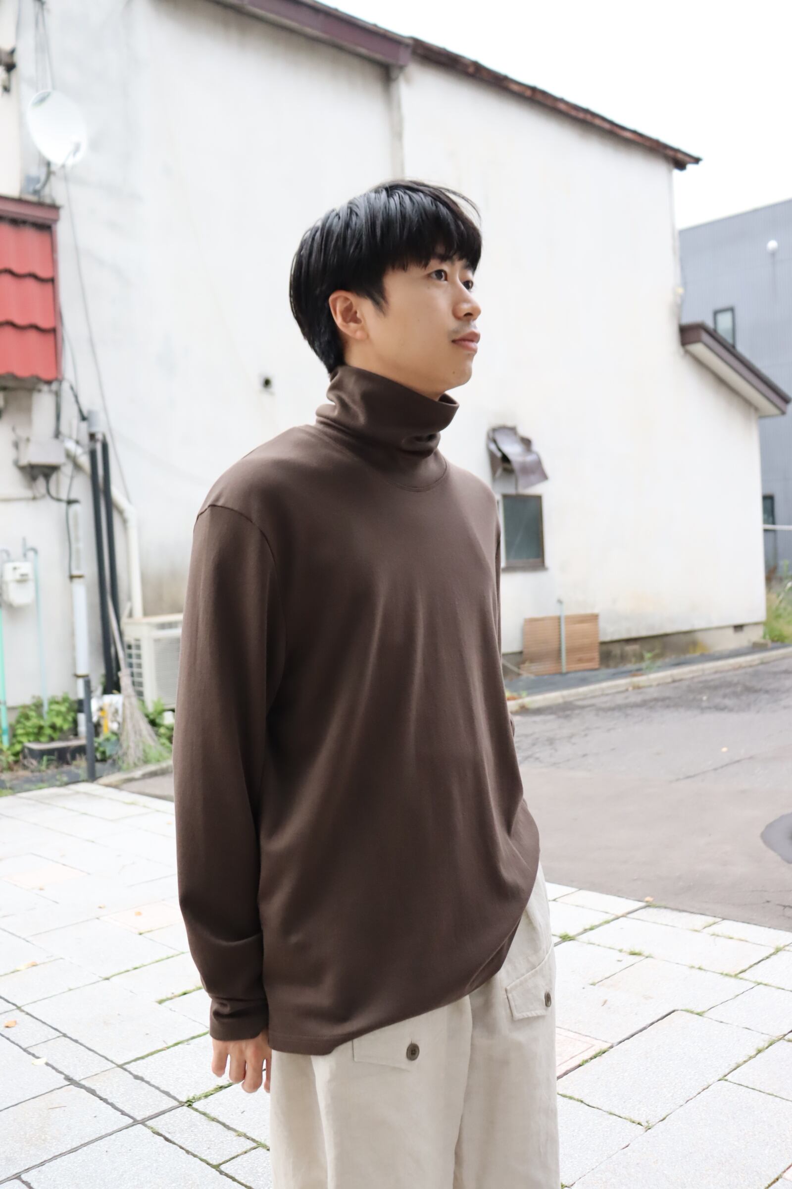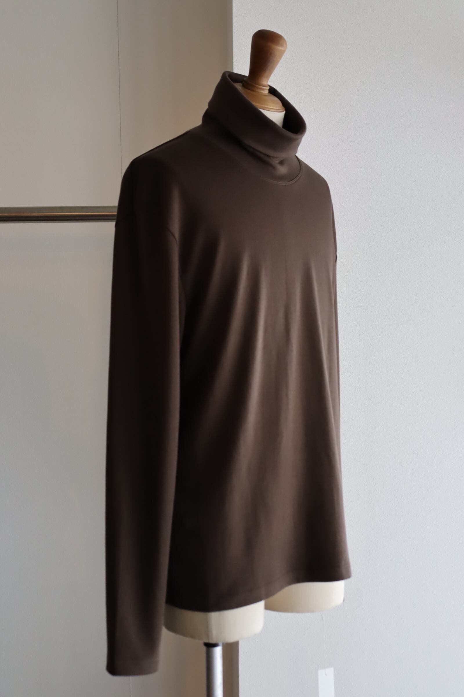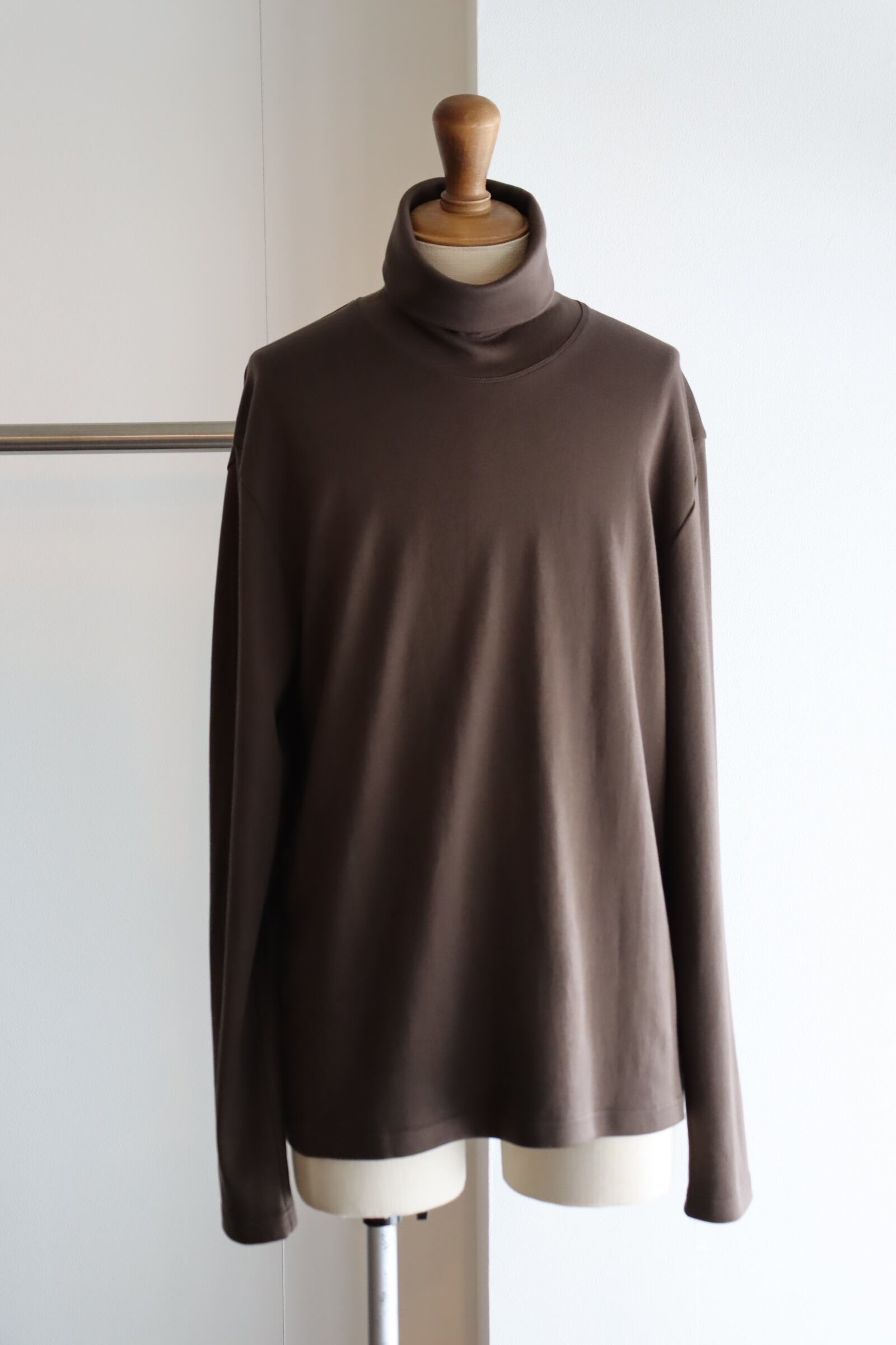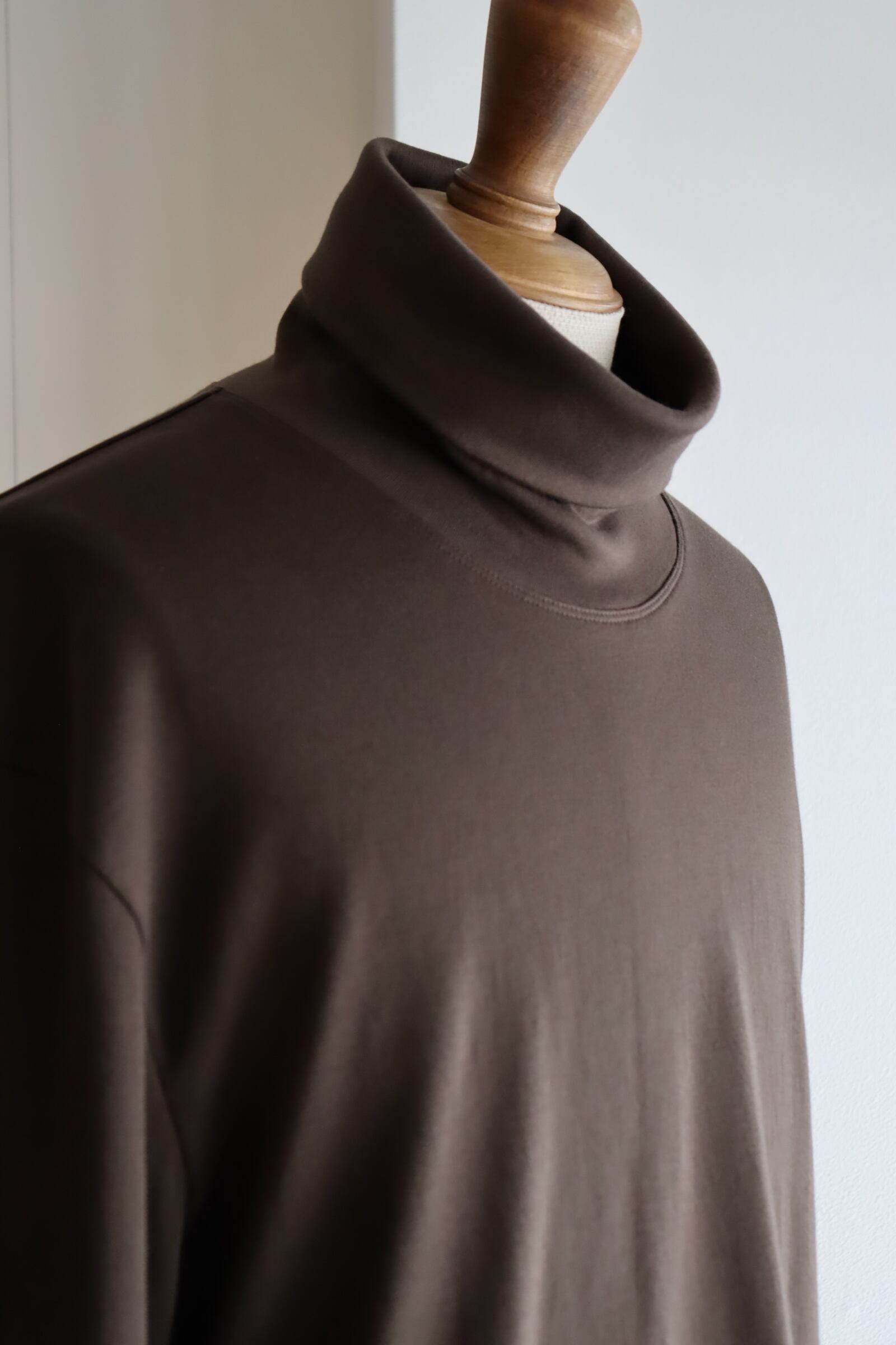 コットンをゆっくりと熟成させることでコットンの持つポテンシャルが最大限に引き出すことが出来、まるでカシミヤのような柔らかさと肌触りを体現して頂ける非常に着心地の良い素材に昇華され、首回りに直接触れるアイテムでもあるタートルには最適な素材感となっております。優しいタッチの首周りに、何一つストレスを感じさせない素晴らしいタートルとなっております。