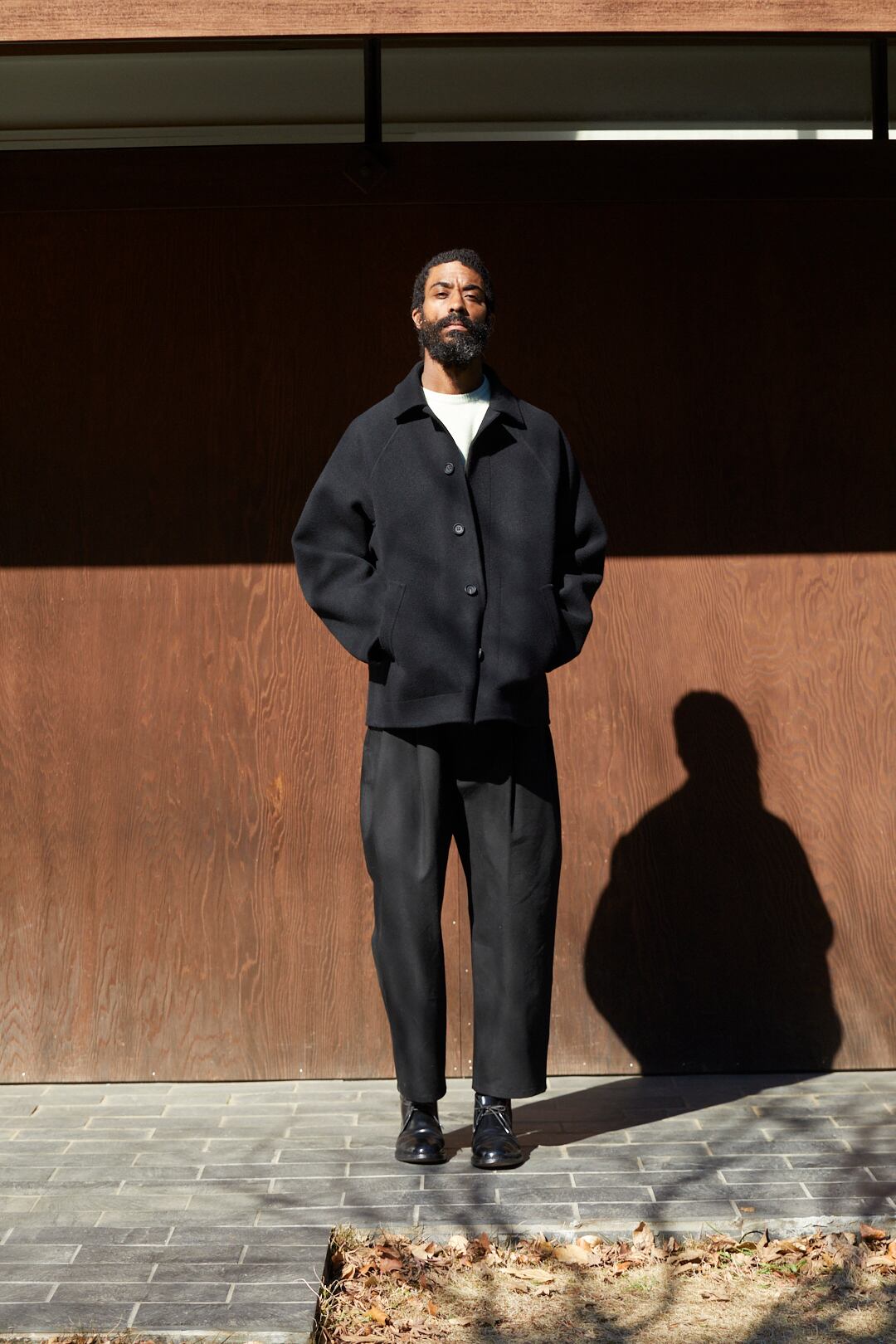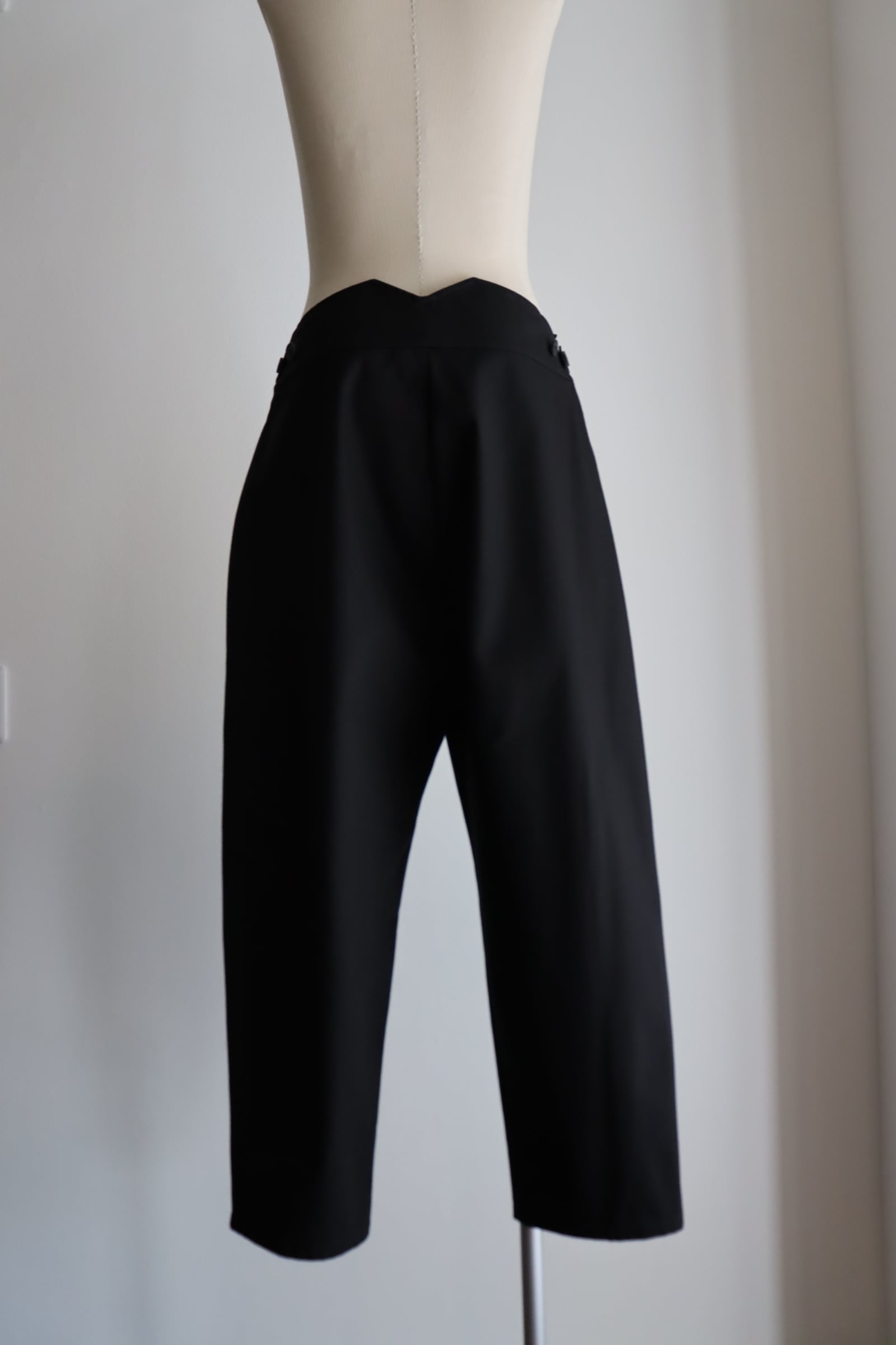 イギリス軍のオフィサーパンツのハイバックをソースに、シルエットを腰回りたっぷりの量感にすることで使いやすいバランスにしました。