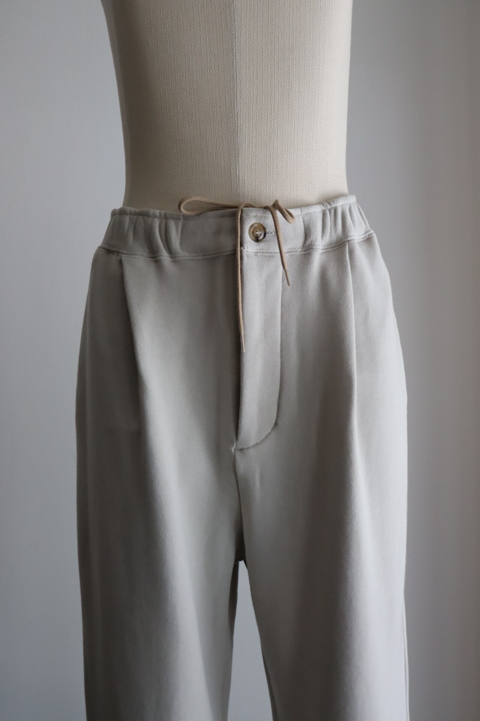 生地は肉感のあるスウェットを使用し、裏はパイル。前開き、裾にはスピンドル付き。