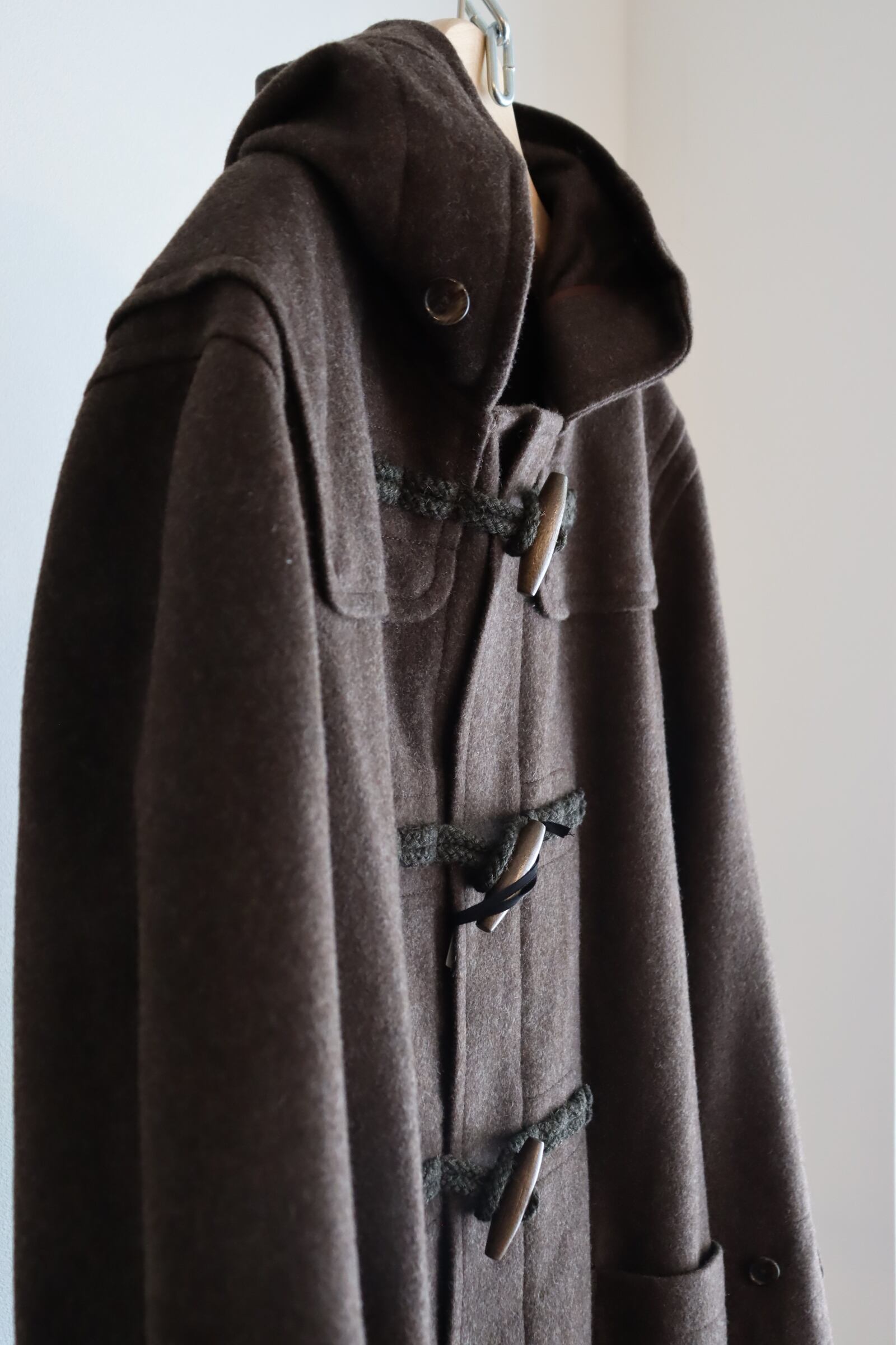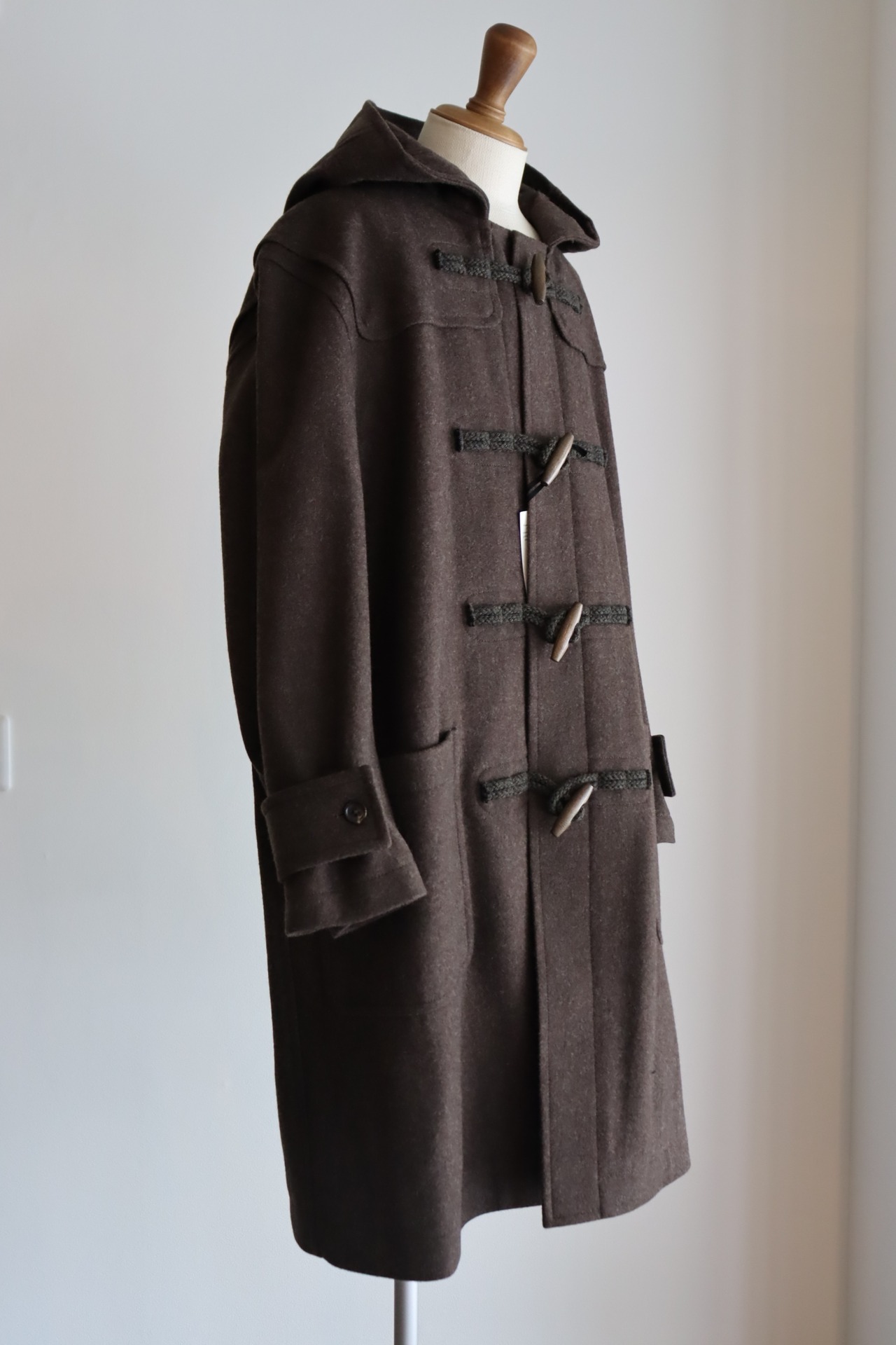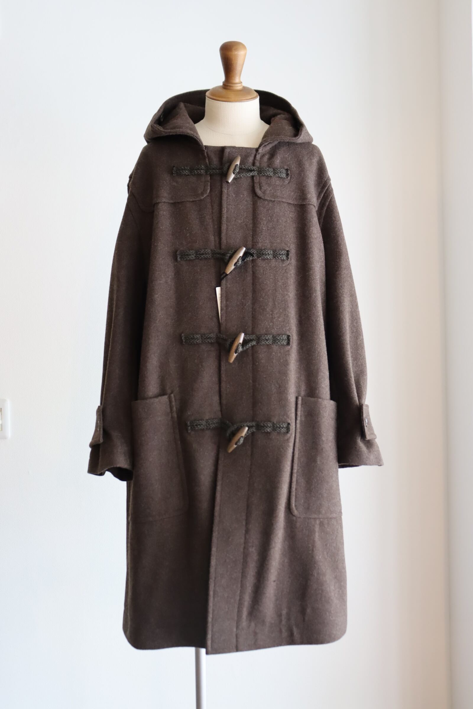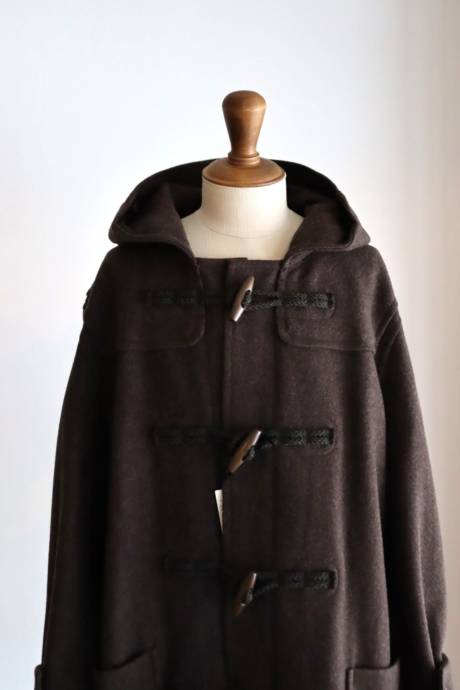 デザインは正統派のダッフルコートで、非常に合わせやすく使い勝手の良い1着となっております。トラディショナルな着用方法からカジュアルな装いまで幅広くお使い頂けます。