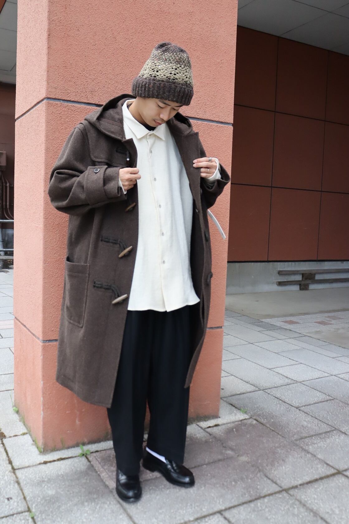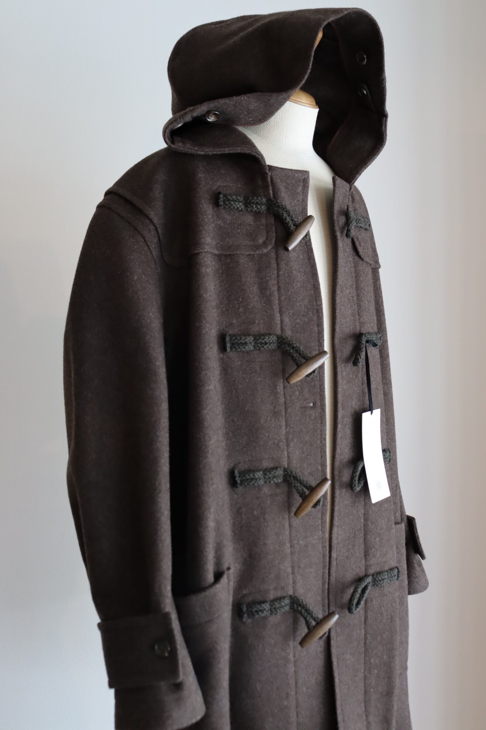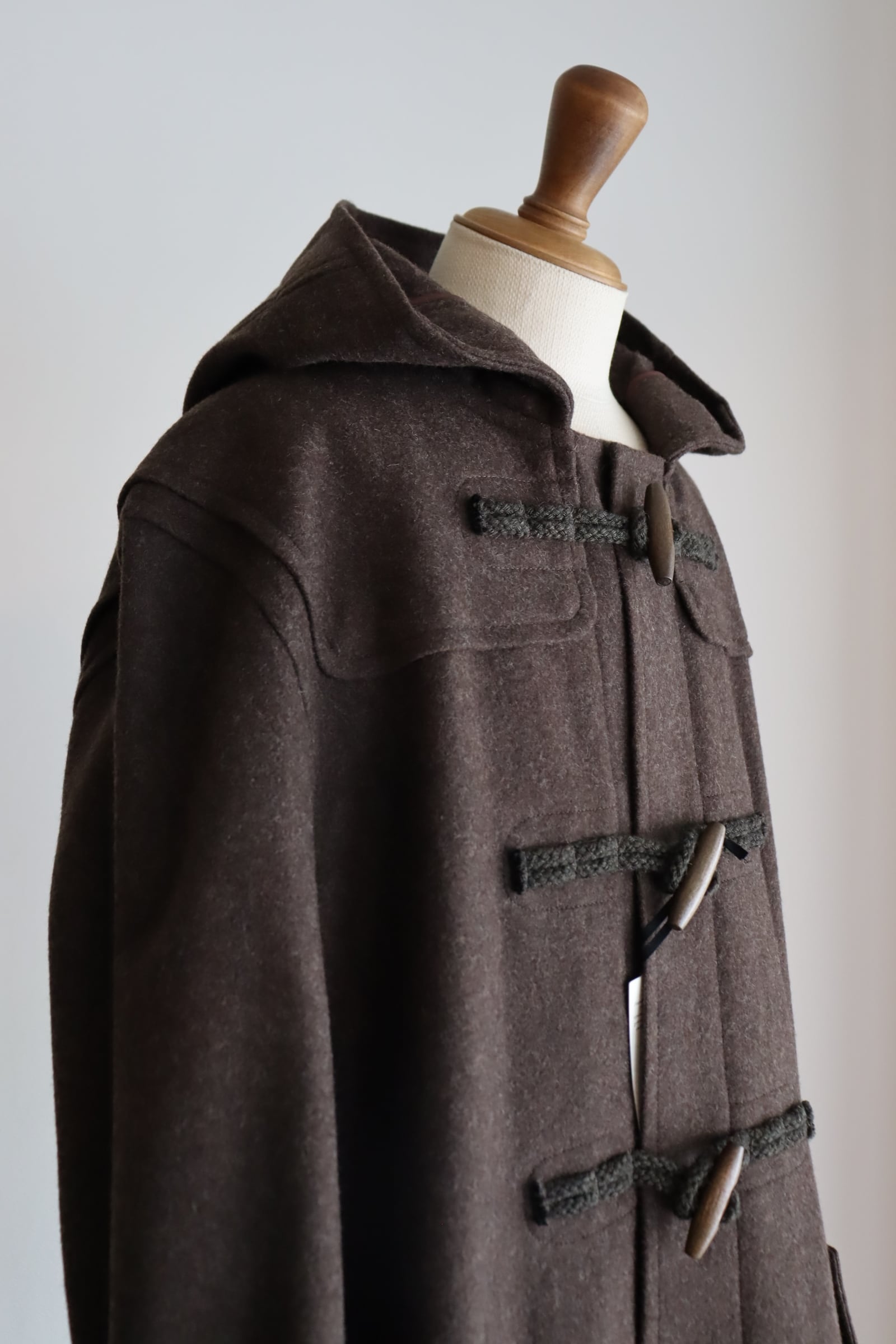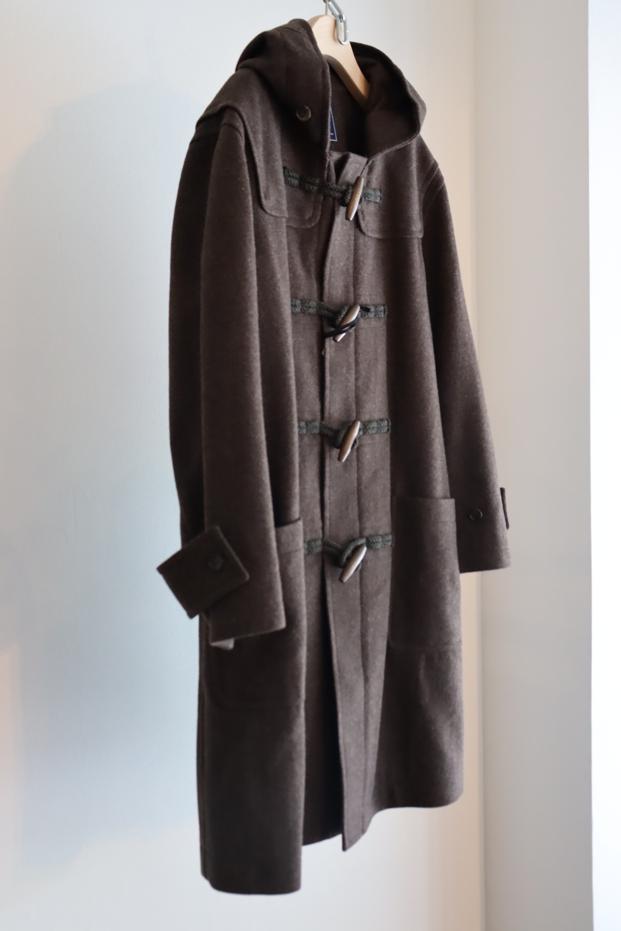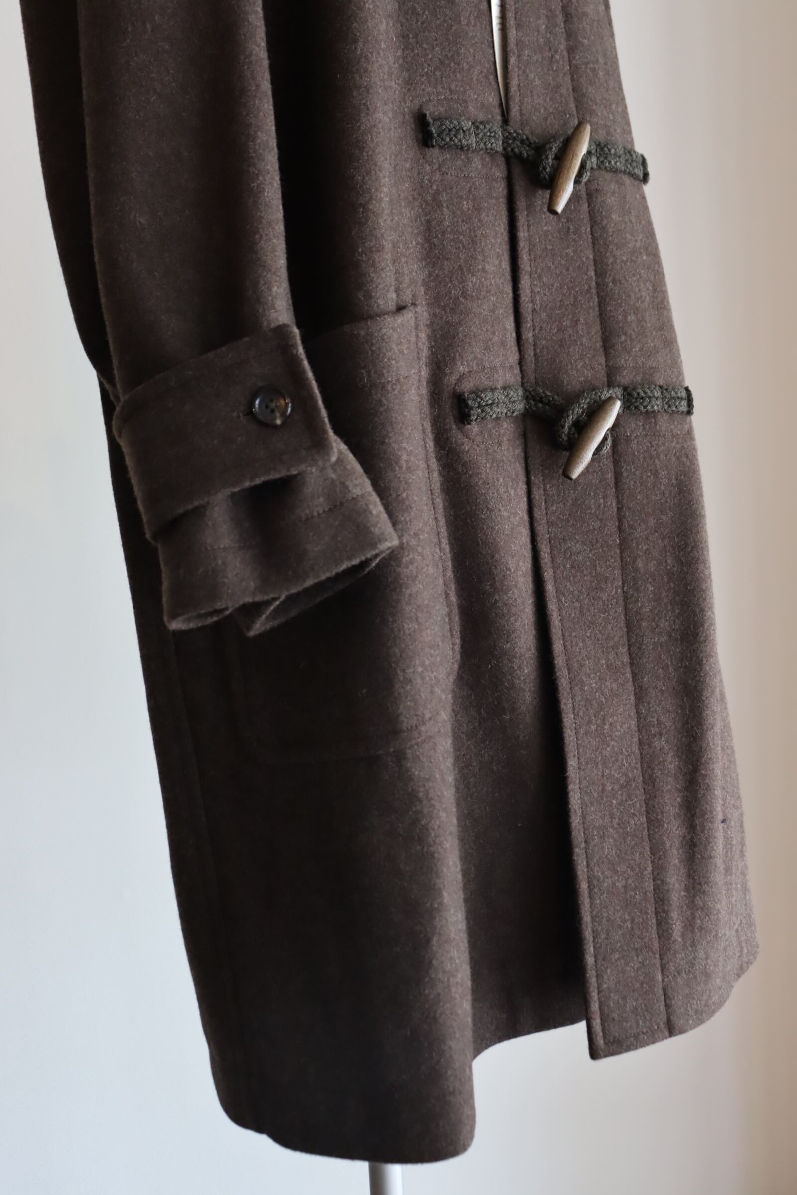 デザインは正統派のダッフルコートで、非常に合わせやすく使い勝手の良い1着となっております。トラディショナルな着用方法からカジュアルな装いまで幅広くお使い頂けます。