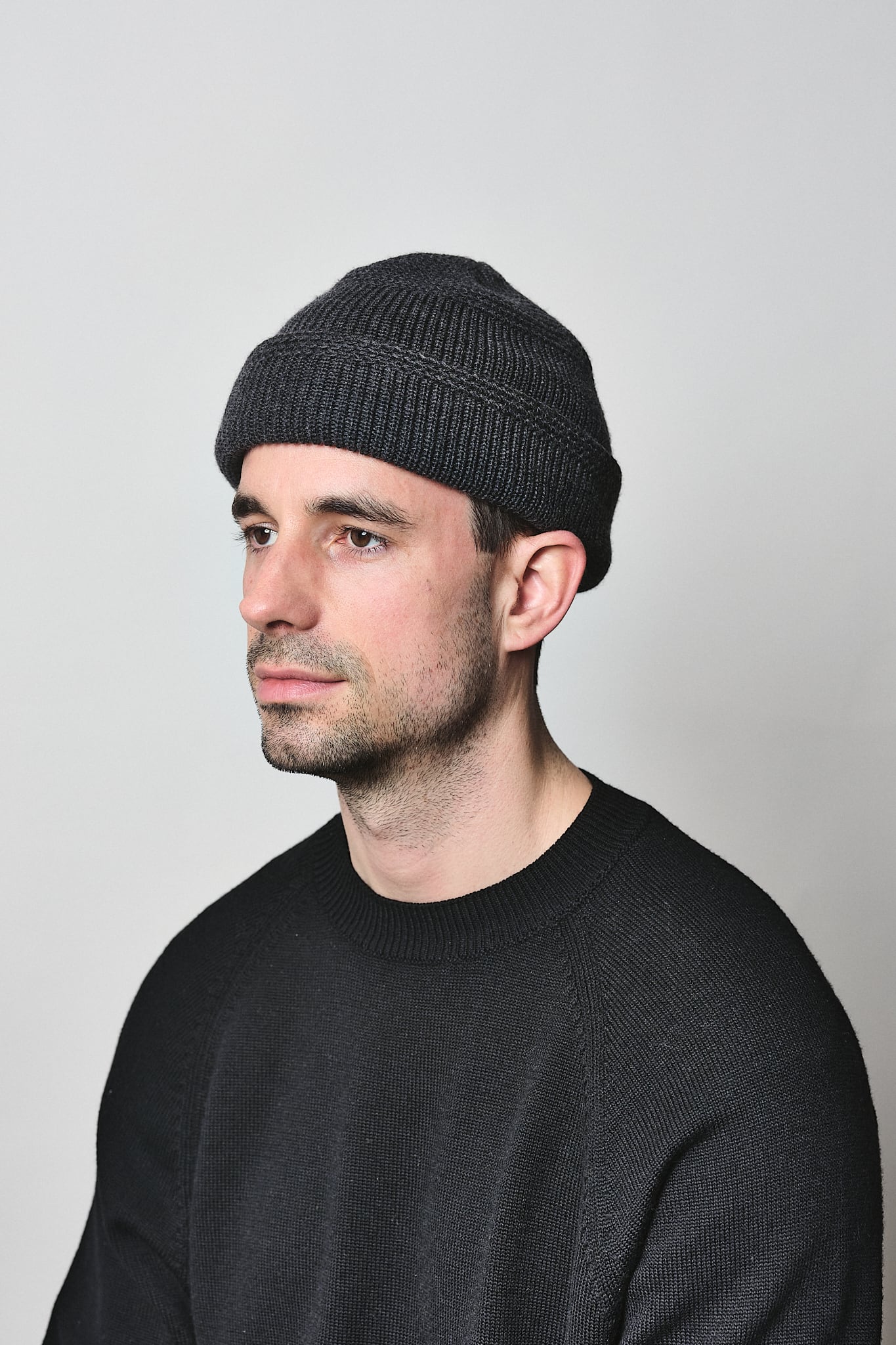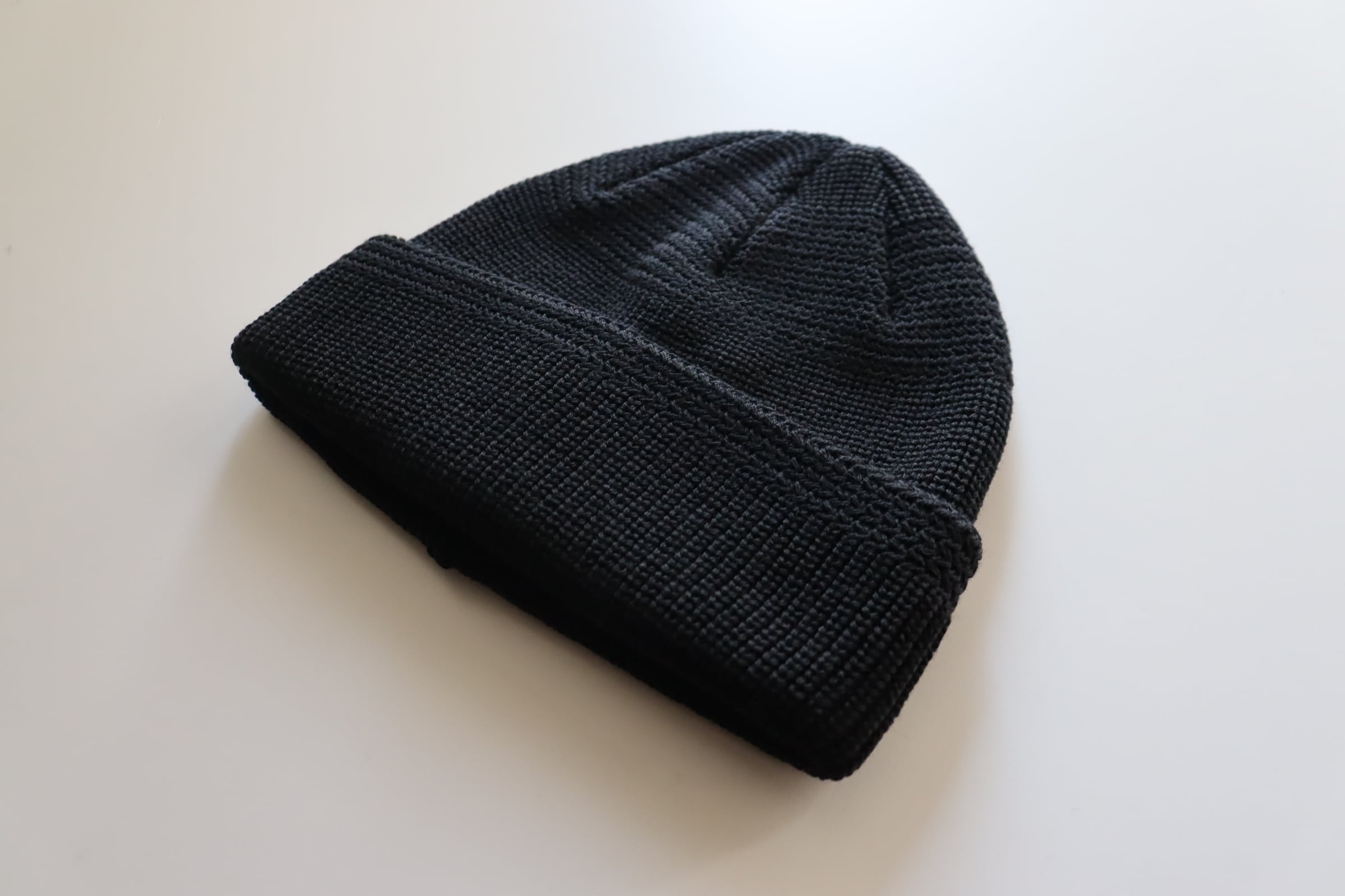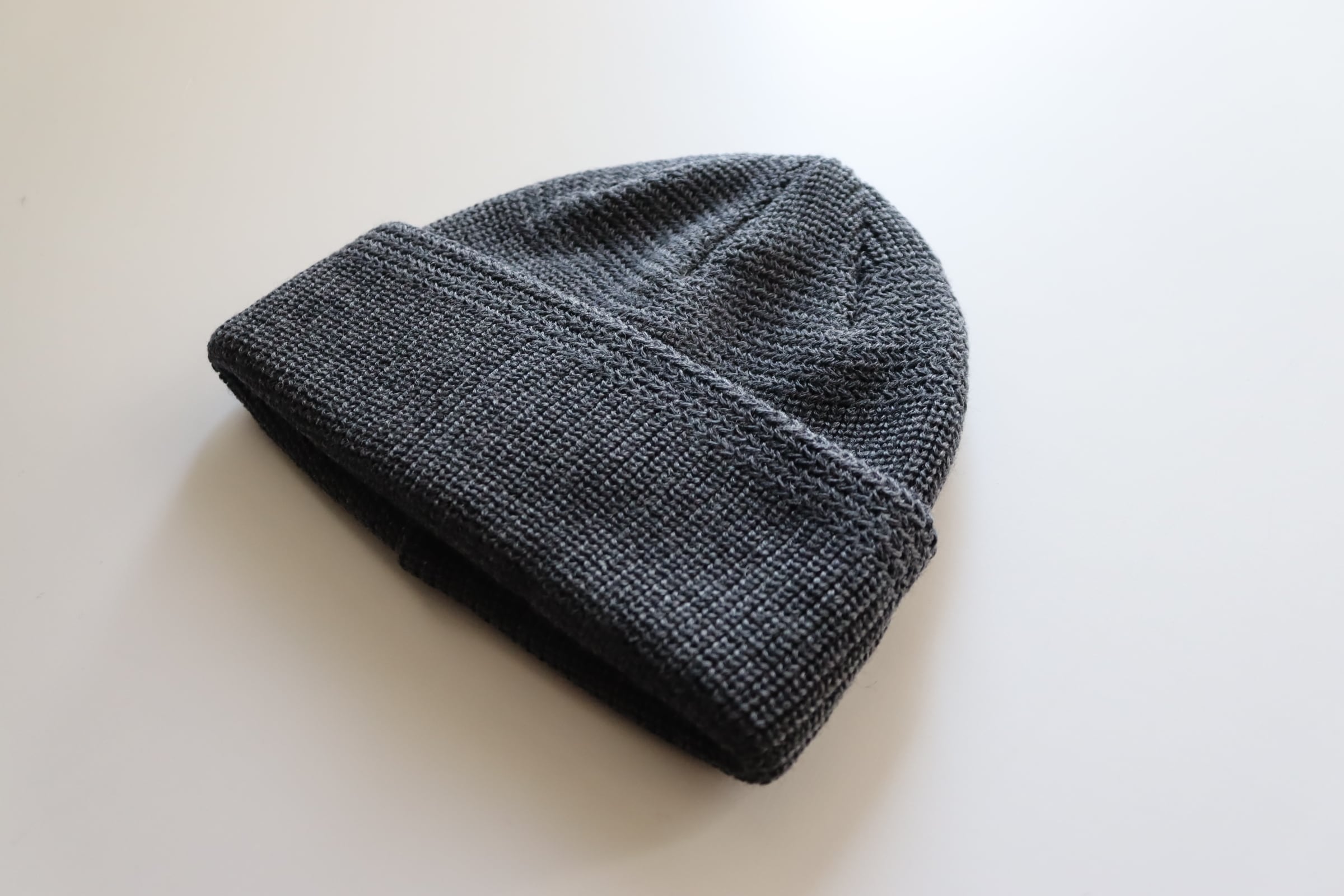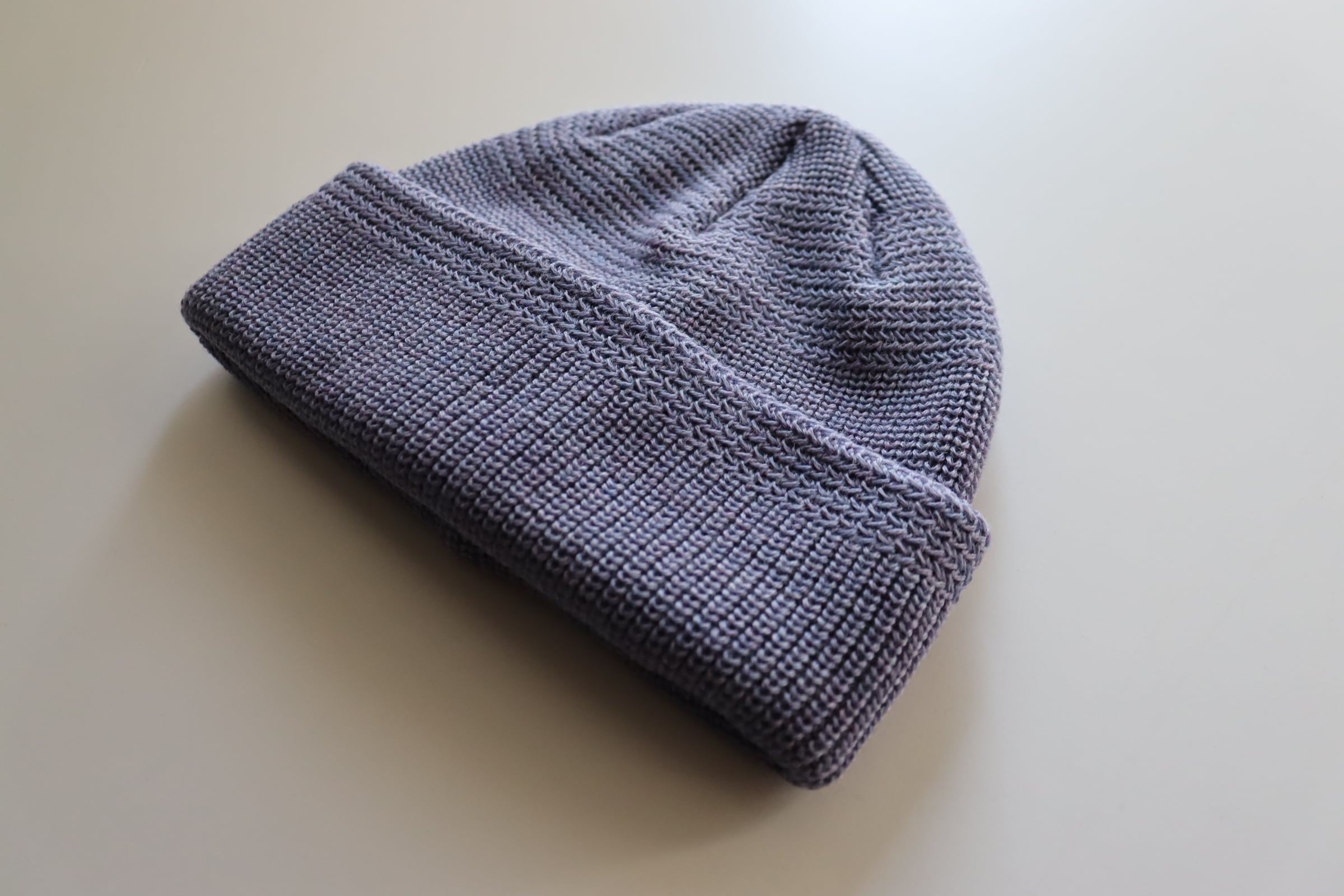 程良い光沢感と弾力がありソフトな肌触りのニット帽。