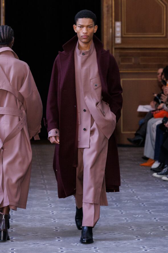 ドロップショルダーシルエットで、肩の力を抜いた落ち着きのある印象のスタイルです。