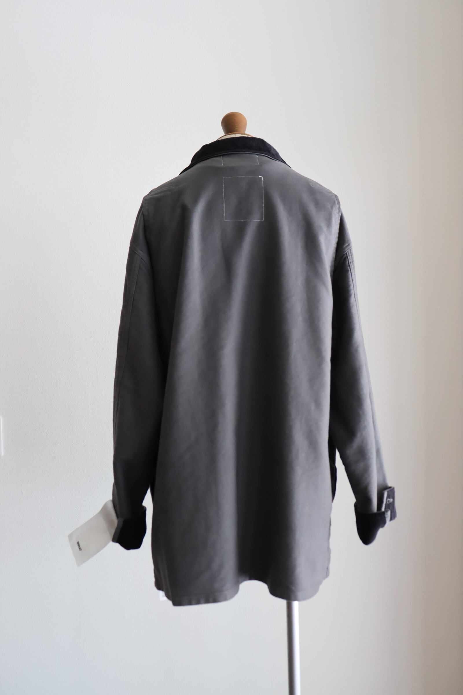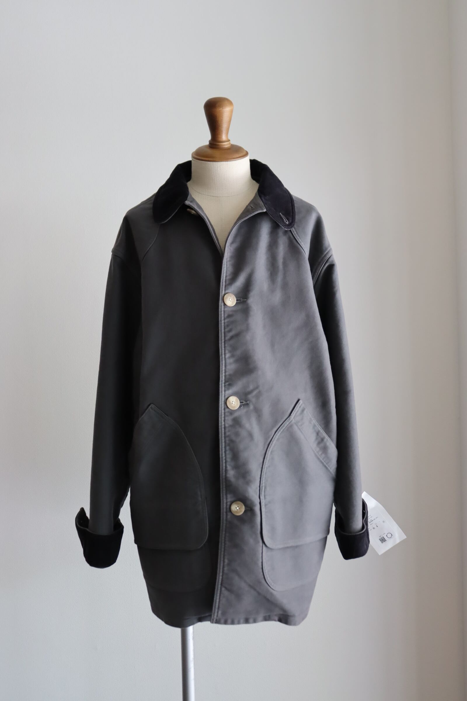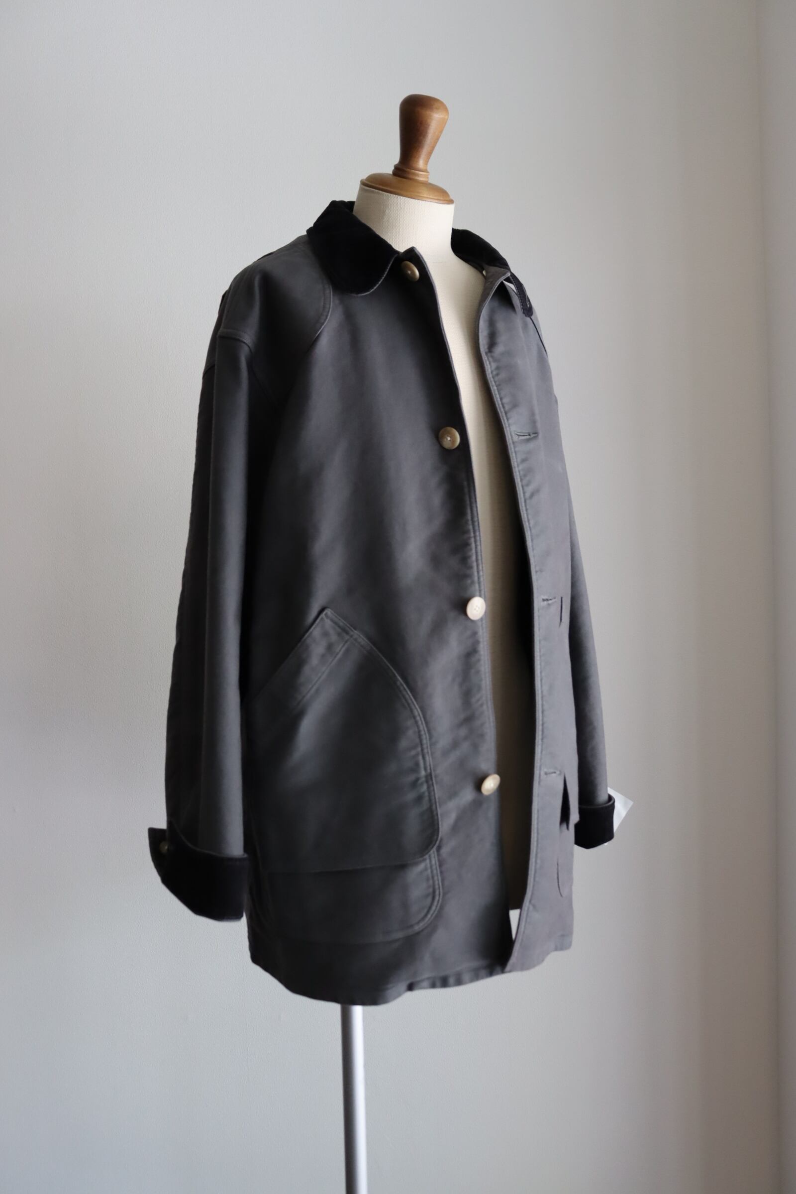 型は60's〜70'sの某アウトドアブランドのHUNTING JKからインスピレーションを受け、⾼密度に織られた厚⼿のモールスキンにスエード起⽑加⼯された素材を採⽤しています。素材の特性としては、⾁感があり締まり感の中に独特なソフト感を感じる素材に魅⼒を感じました。