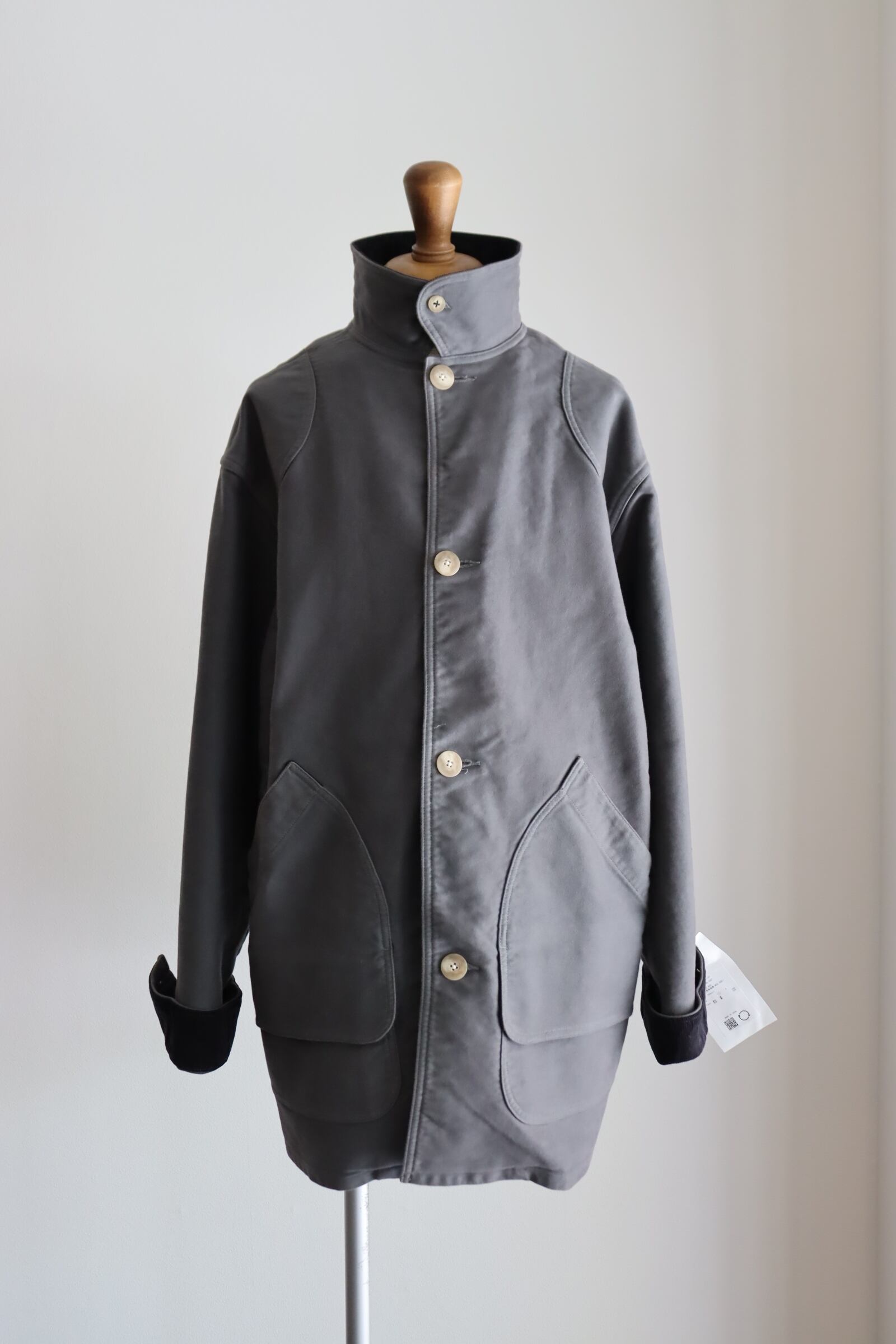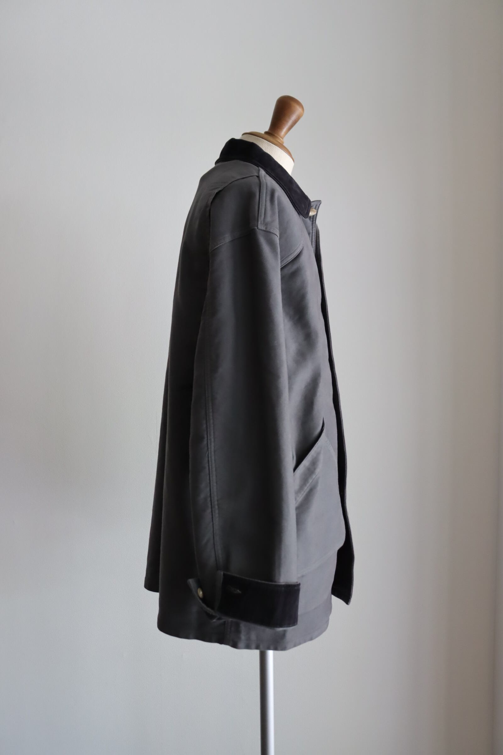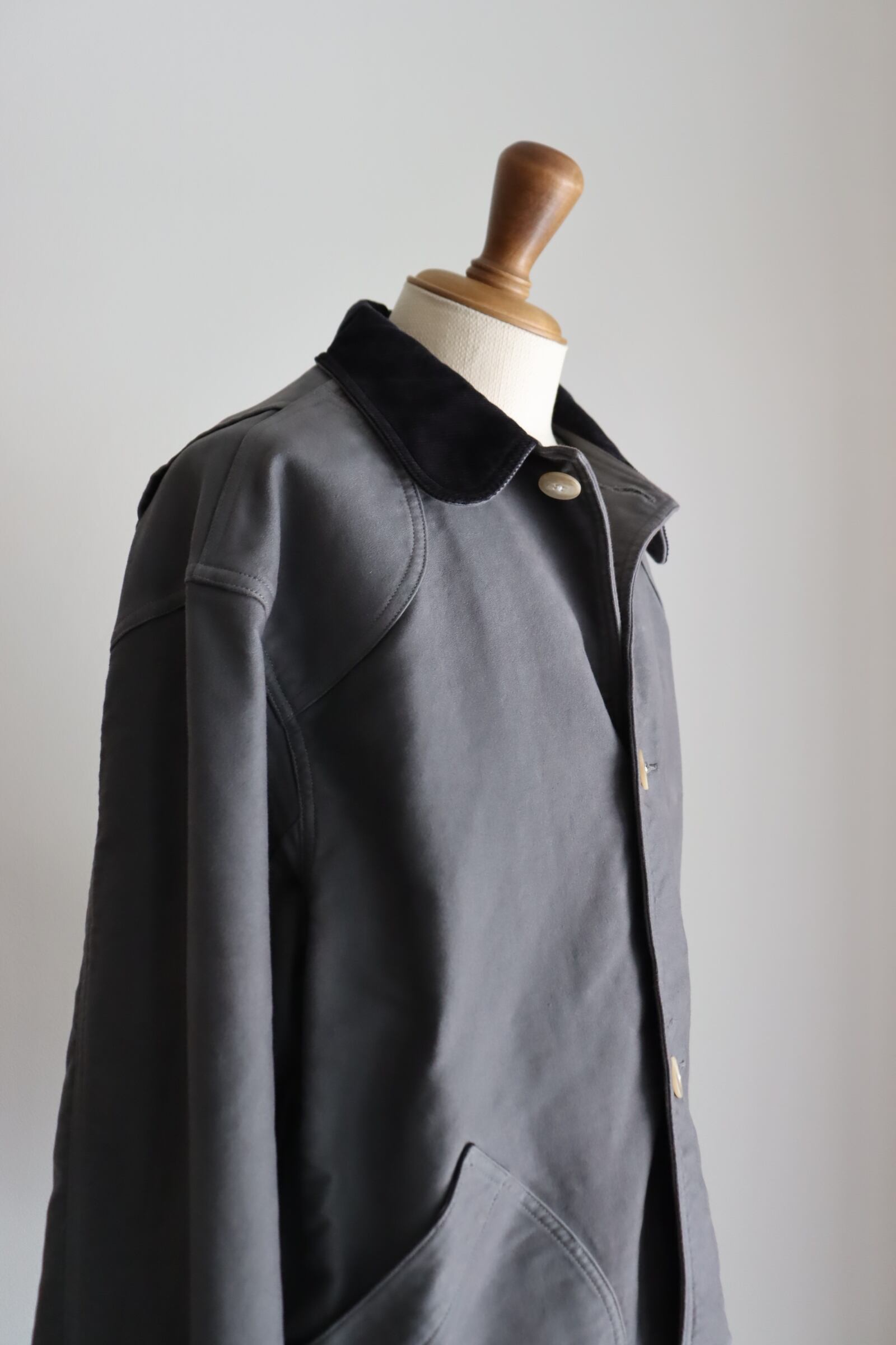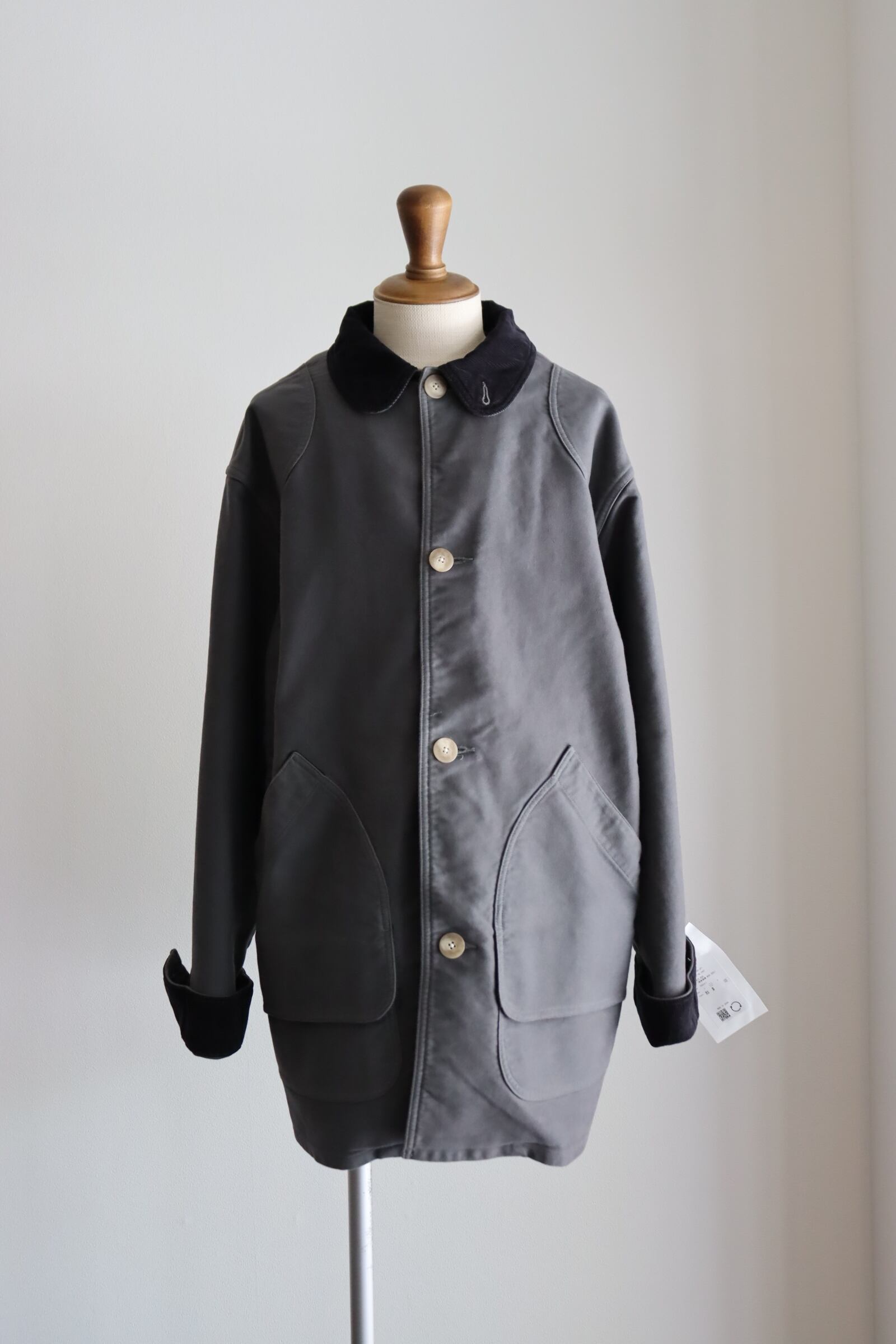 型は60's〜70'sの某アウトドアブランドのHUNTING JKからインスピレーションを受け、⾼密度に織られた厚⼿のモールスキンにスエード起⽑加⼯された素材を採⽤しています。素材の特性としては、⾁感があり締まり感の中に独特なソフト感を感じる素材に魅⼒を感じました。
