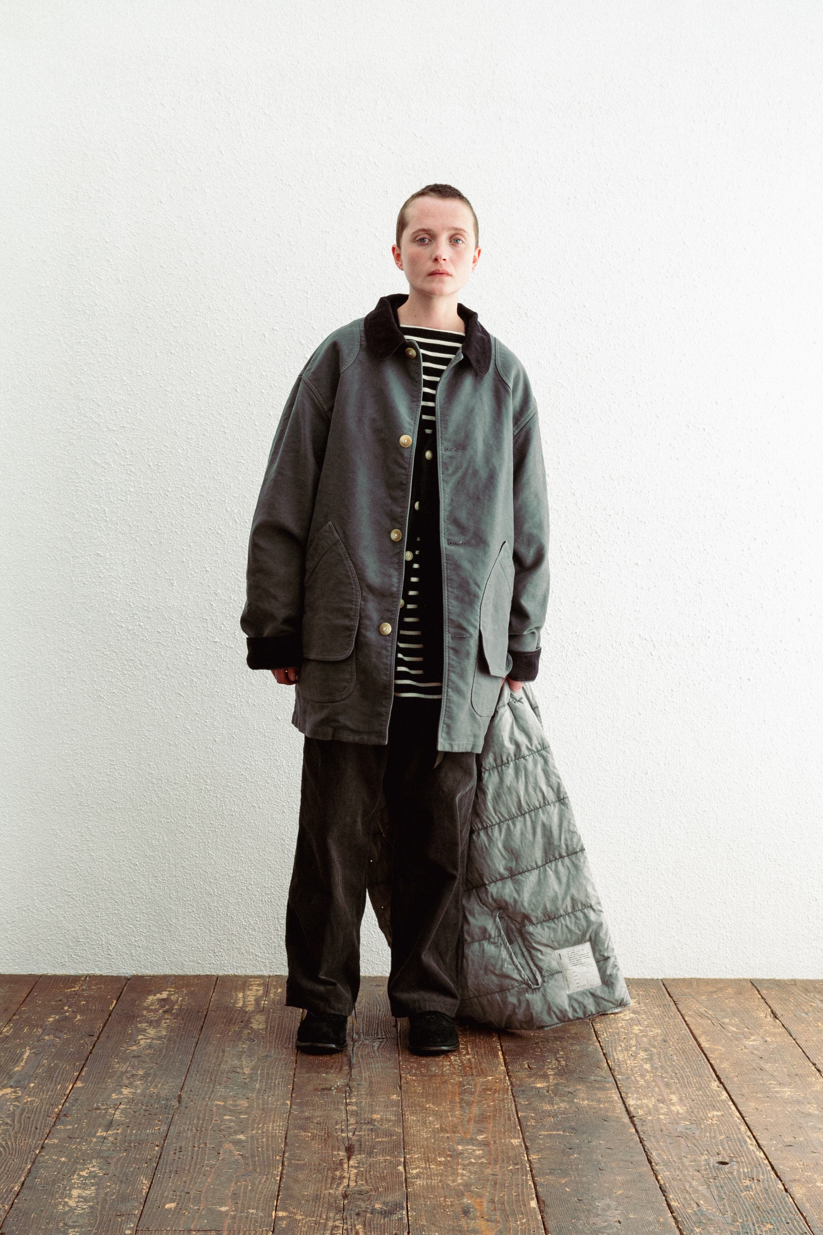 こちらのCharcoal の染は墨汁によるボタニカルなハイブリッド染になります。また、これまで提案してきたキルトのLINNCOAT,LINERVESTともアジャスト出来る様な仕様になっています。