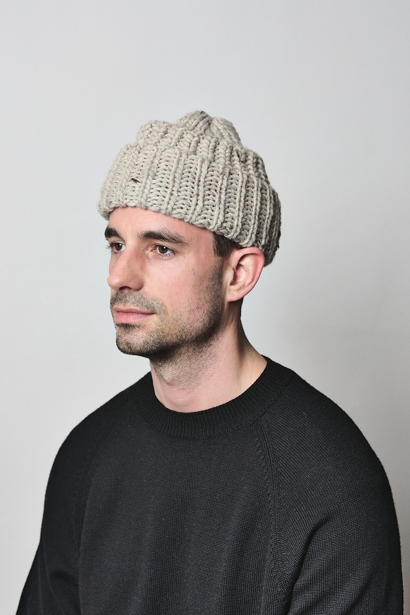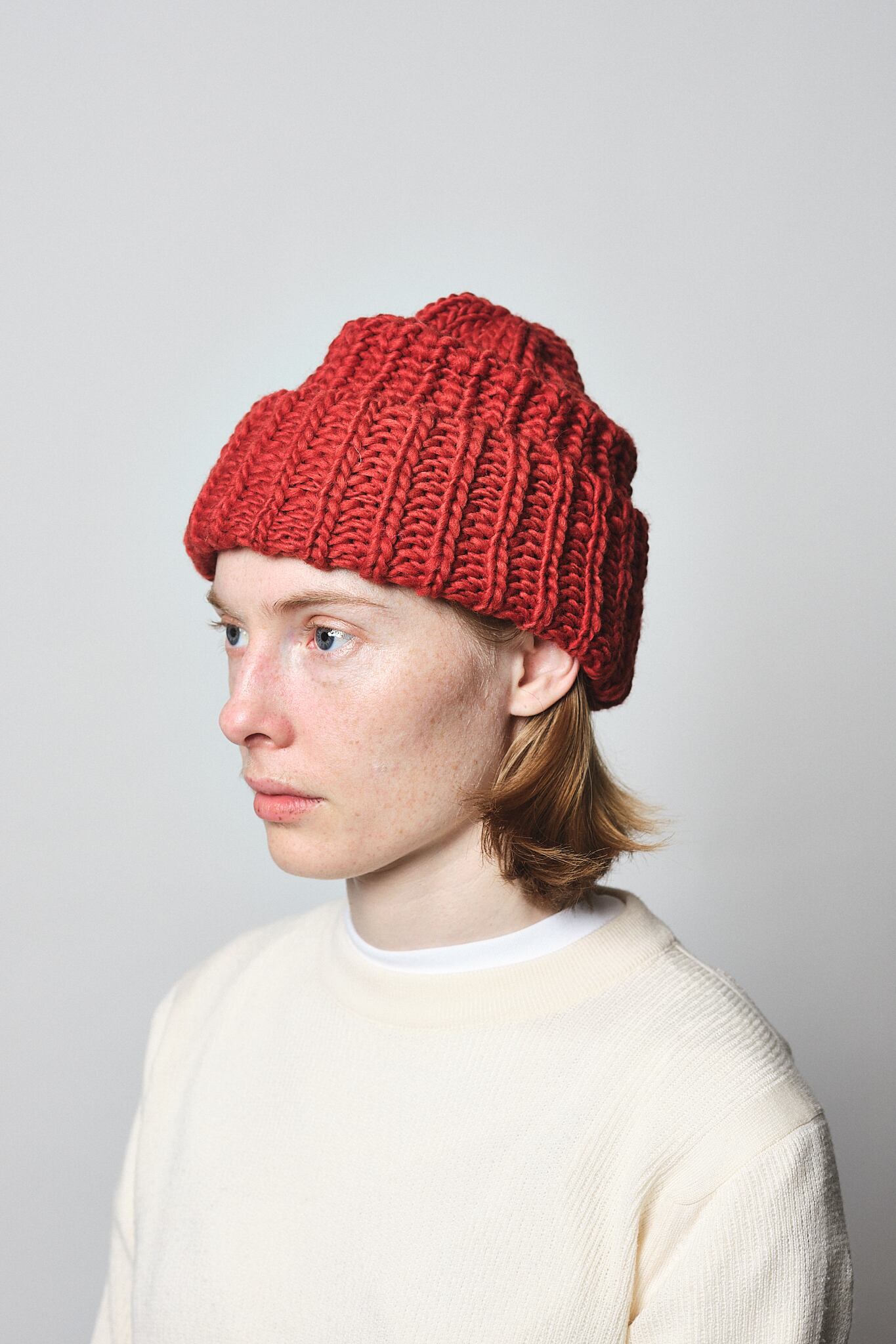 英国羊毛をブレンドし、もっちりとした弾力とふわっとしたボリュームのニット帽。