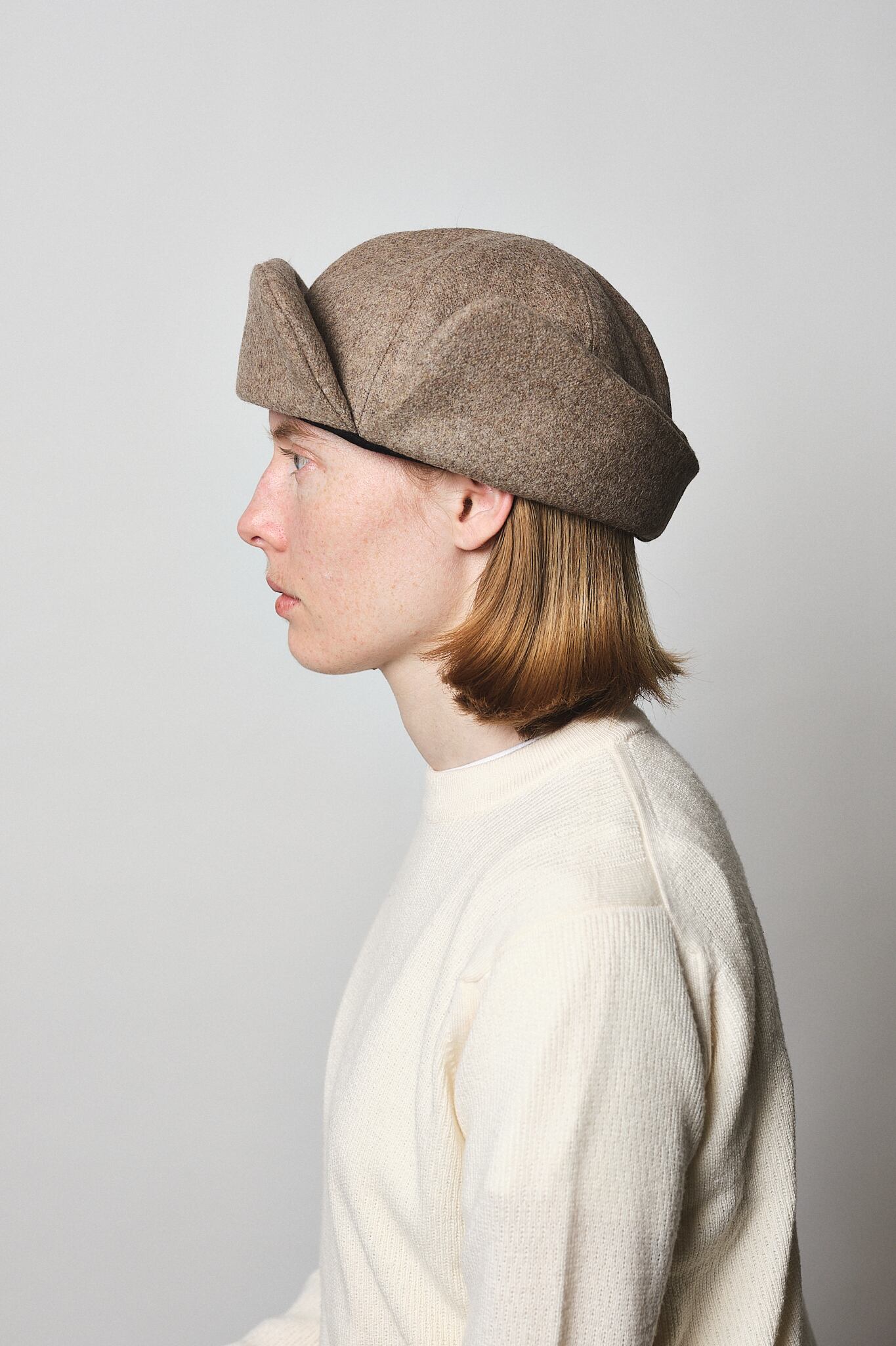 杢調の味わい深いメルトンフライトキャップ。深めのクラウンに柔らかなツバを合わせることによって、安定感のある被り心地です。