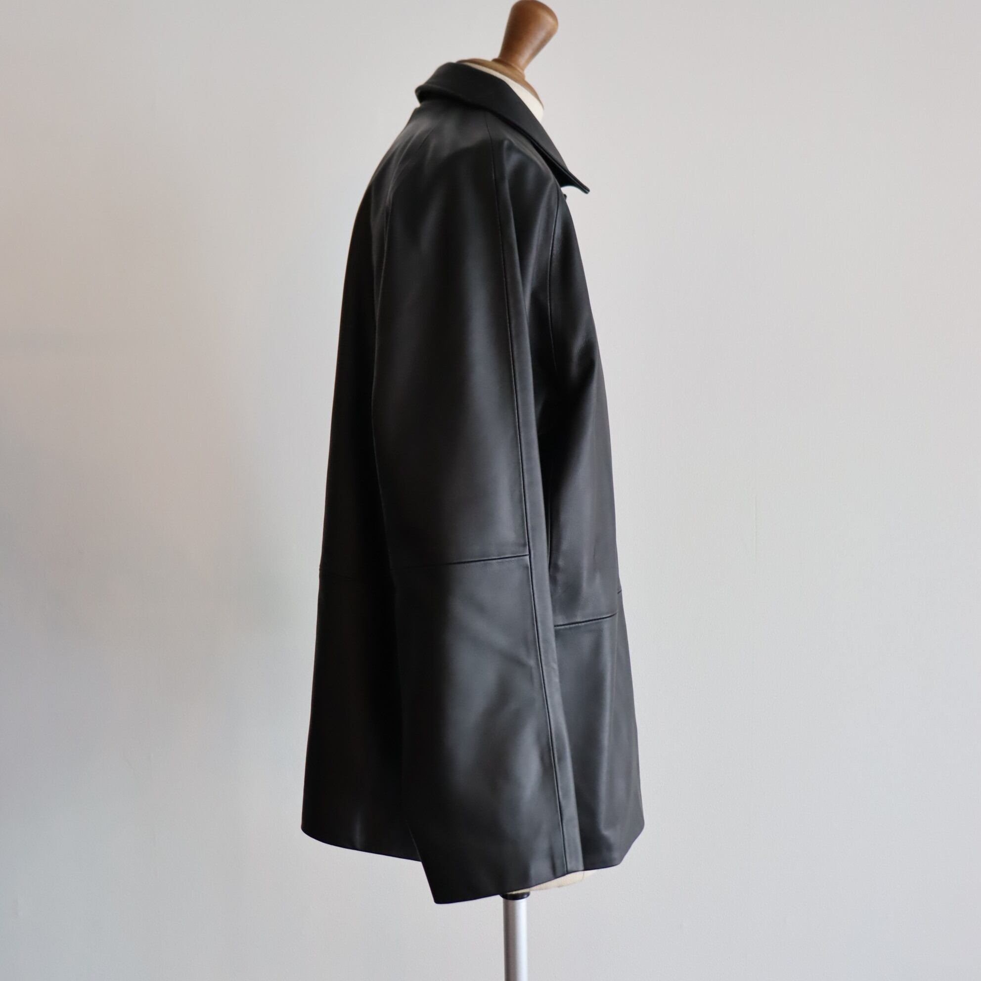 ラグランスリーブ仕様で、アームホール、身幅は程よくゆとりのある現代的なシルエットで、今レザーを着るとなるとこのくらいの程よいゆとりのあるレザーJKTがお勧めで、気軽に羽織れるレザーJKTとなっております。