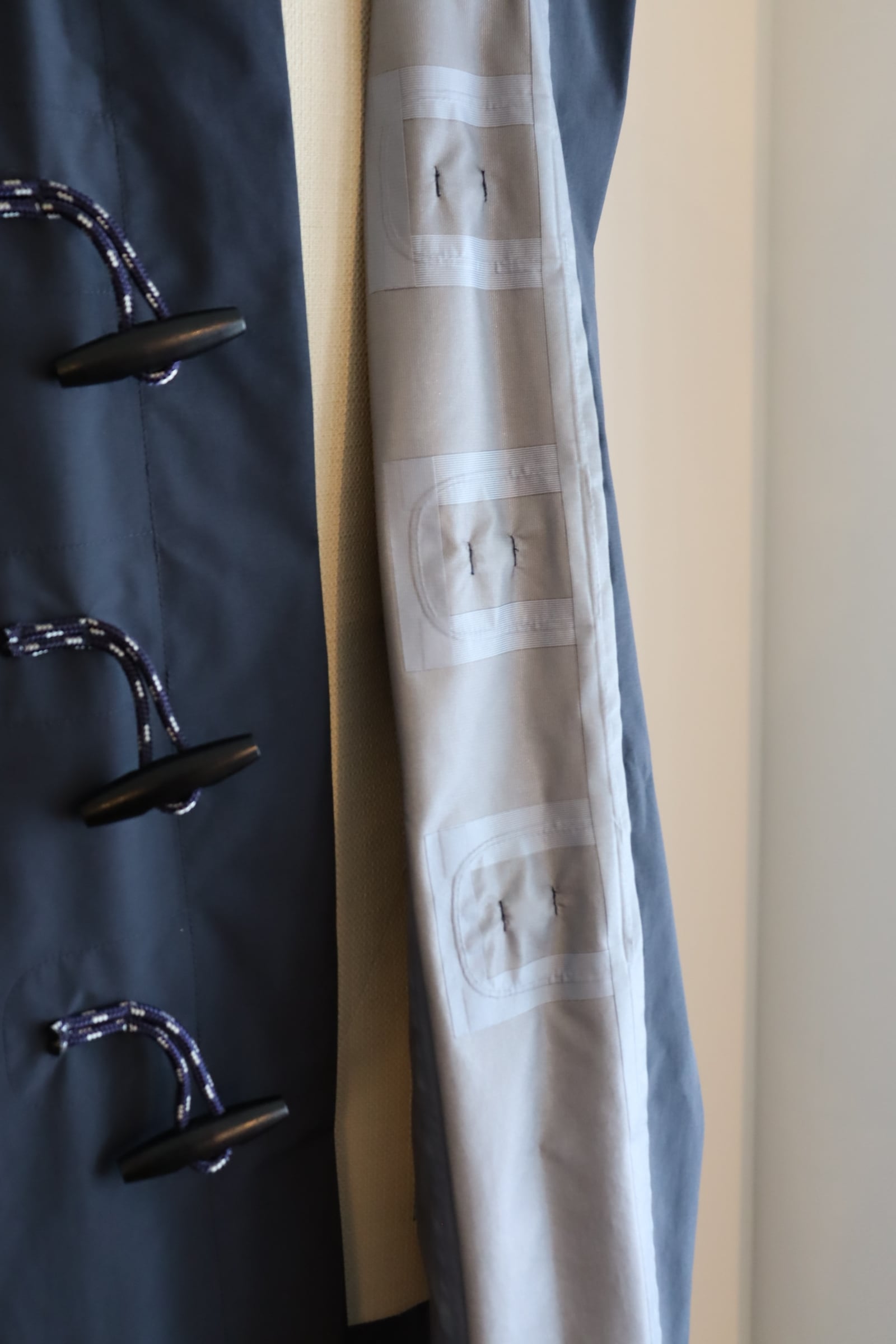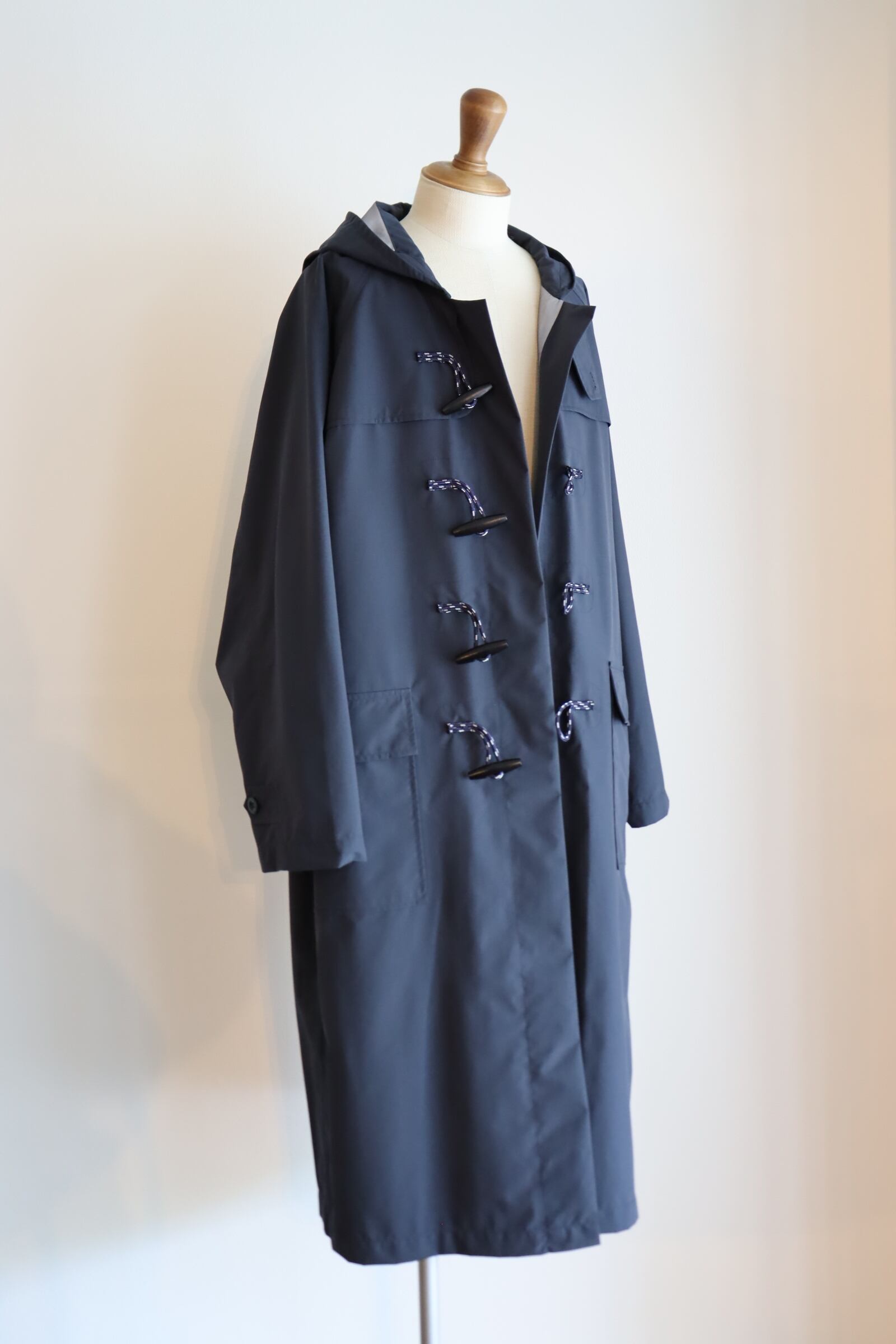 透湿防水・防風の3レイヤー素材にシームテープ仕様やトグル紐にコード紐を使い、機能的なアウターとなっております。