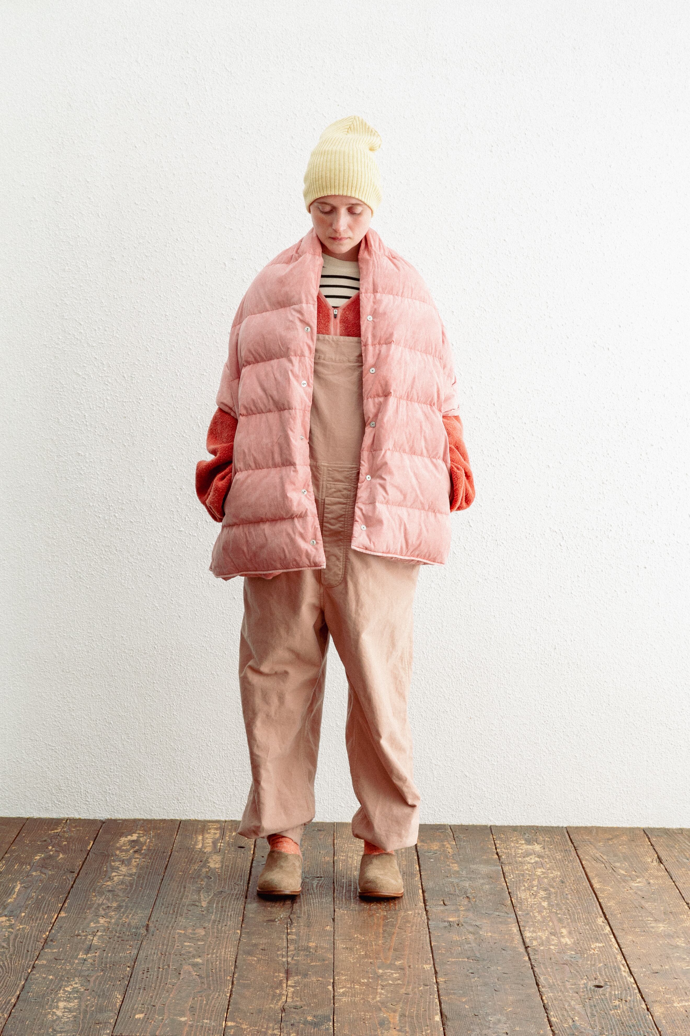 某アウトドアブランドのカヤックのフリースプルオーバーからインスピレーションを受け、着丈が短かったり、前後差があったりする本来の機能を実⽤性あるデザインにチューニングしたり、製品染にも対応し易い様に接ぎ線を加えたりしています。
