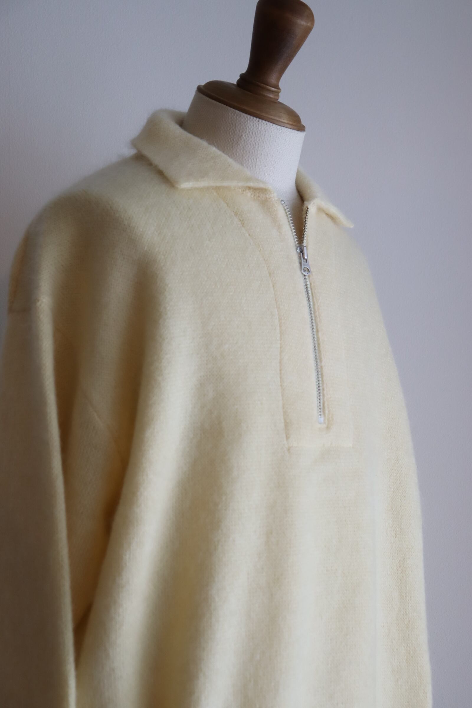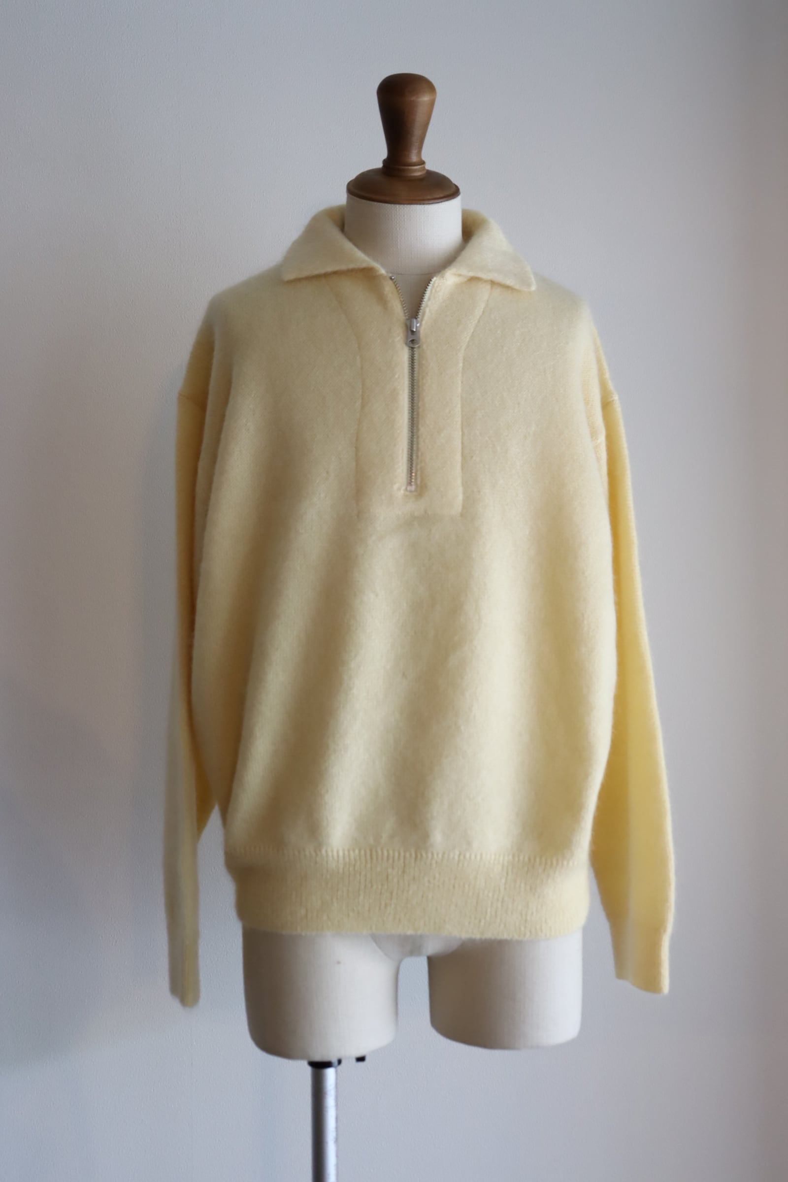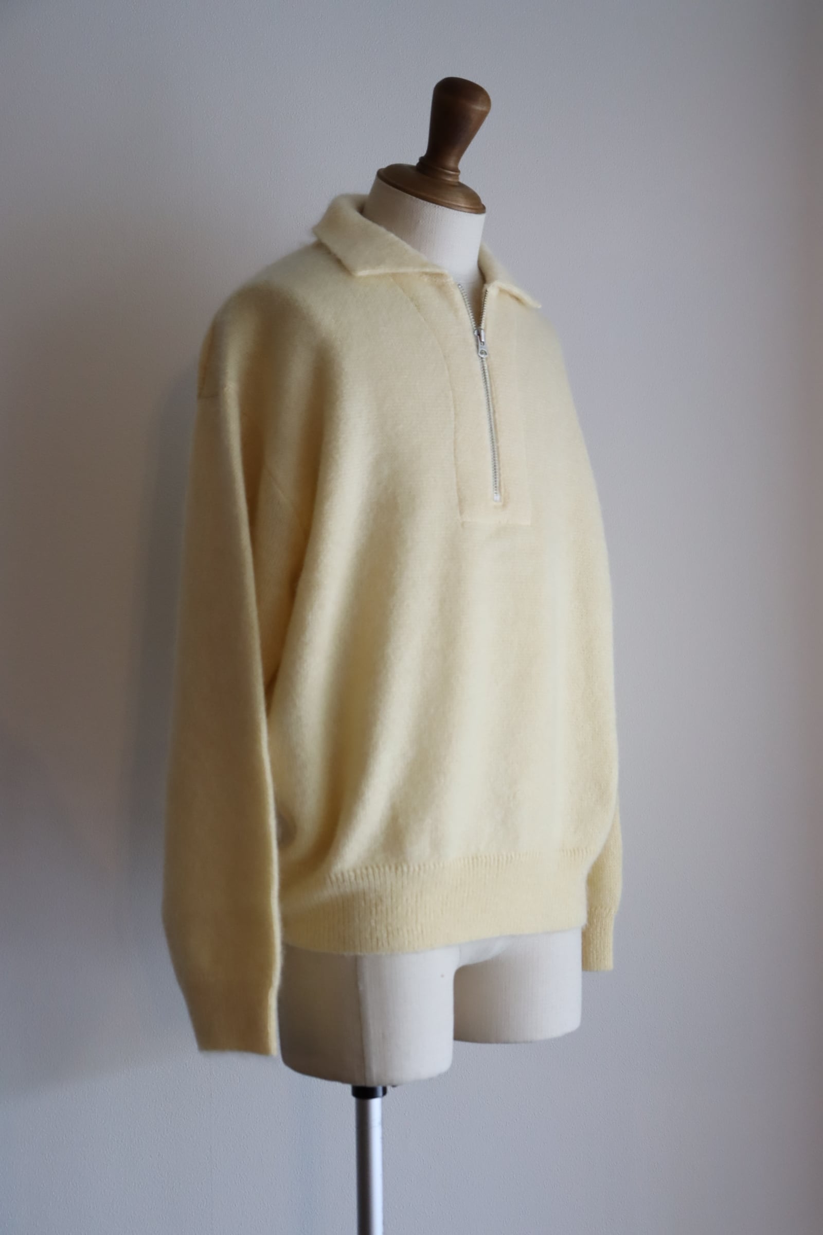 SUPER KID MOHAIR を使用したハーフジッププルオーバー。