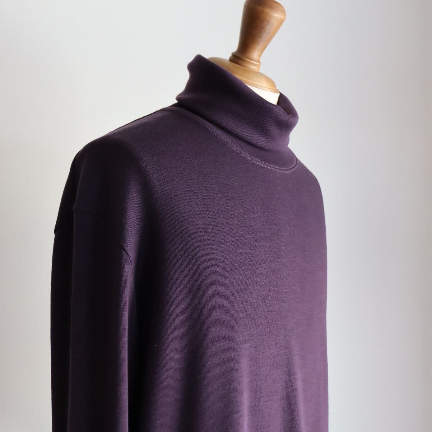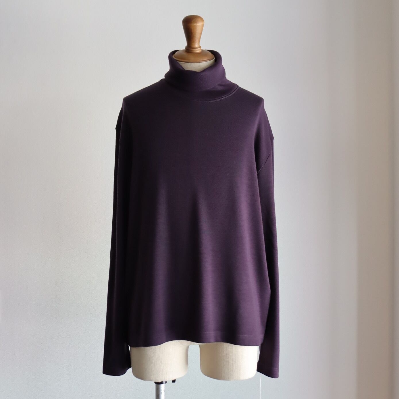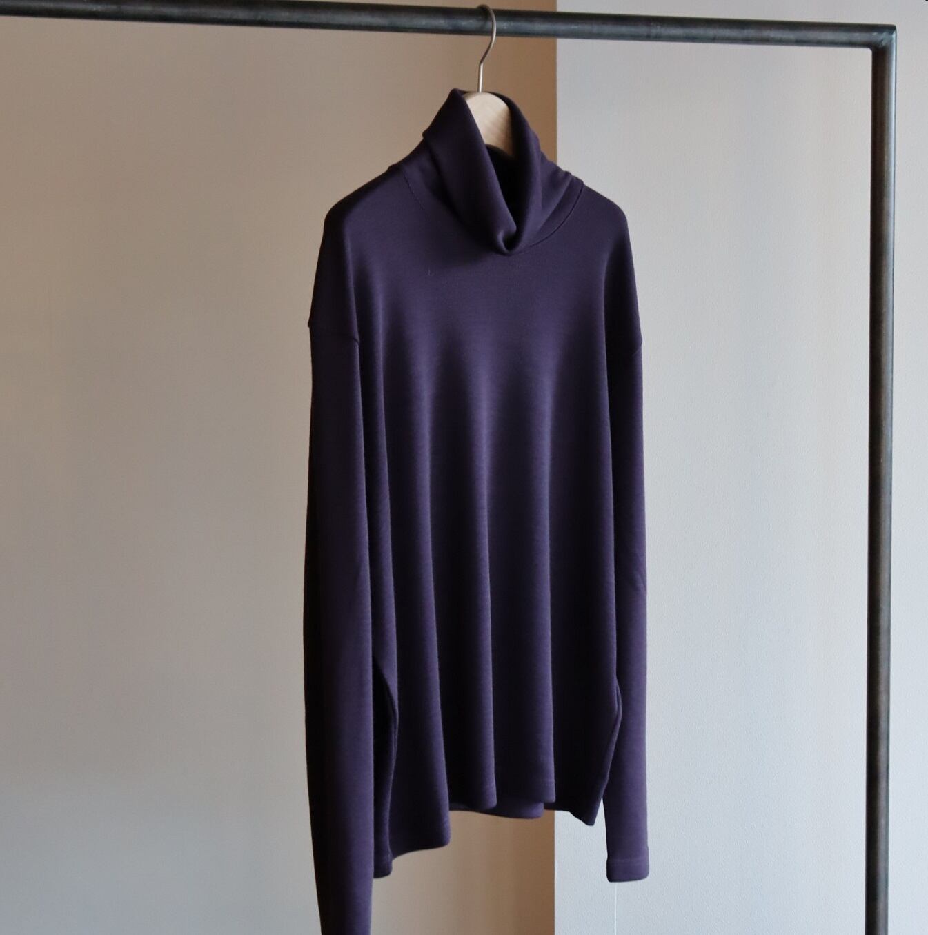美しい光沢感と滑らかさととろみのある極細woolを使用し、絶妙なテンションのリブ編で編み立てたタートル。