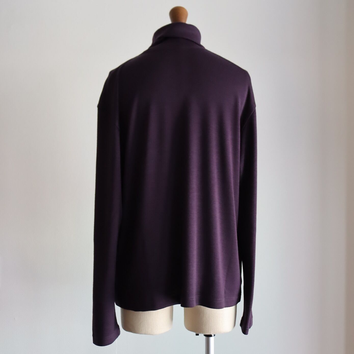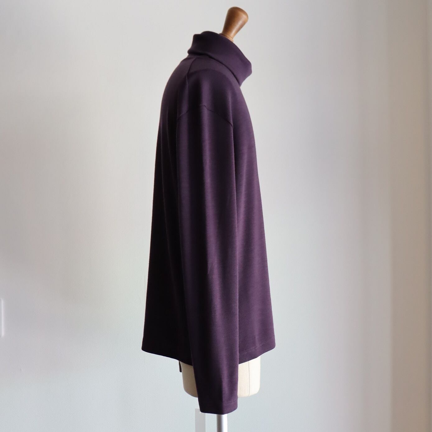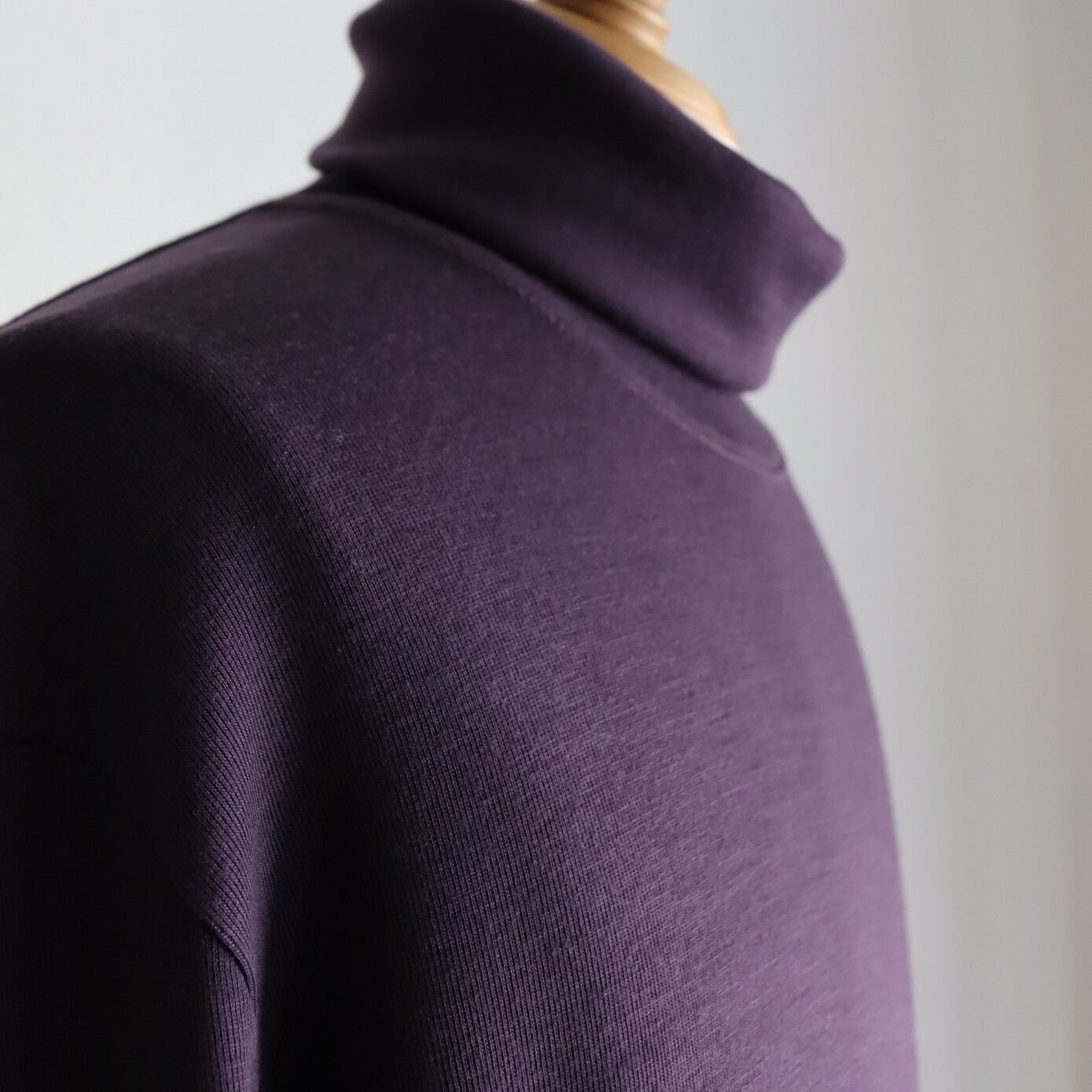 美しい光沢感と滑らかさととろみのある極細woolを使用し、絶妙なテンションのリブ編で編み立てたタートル。