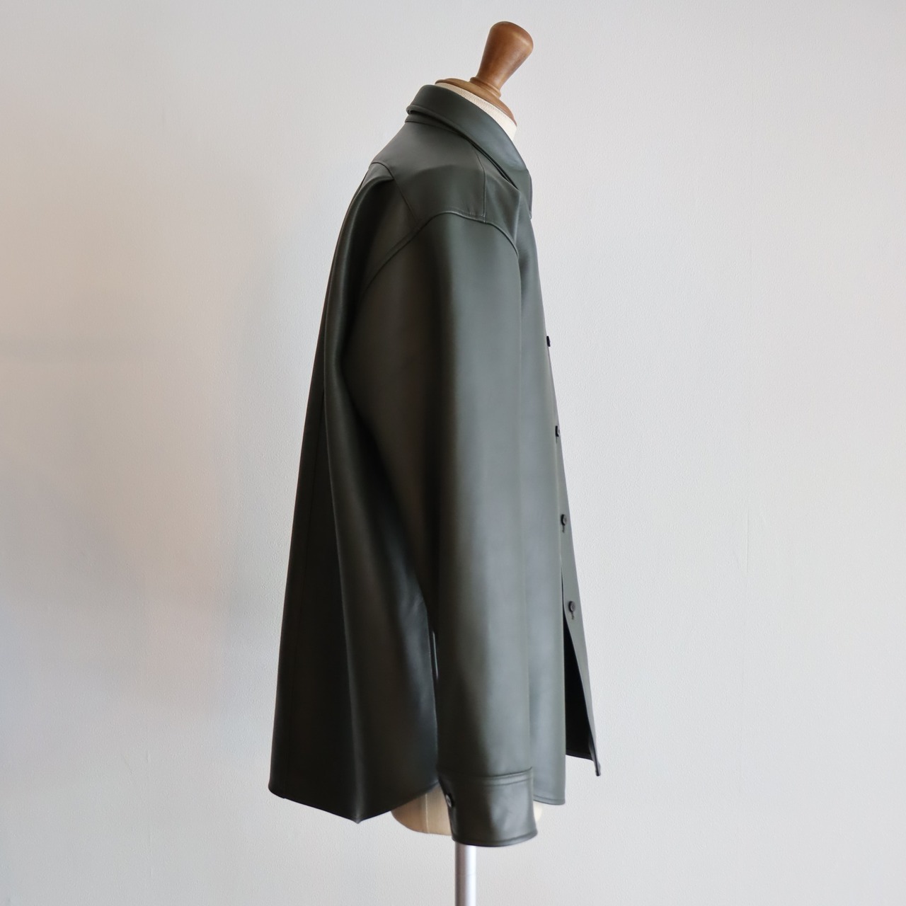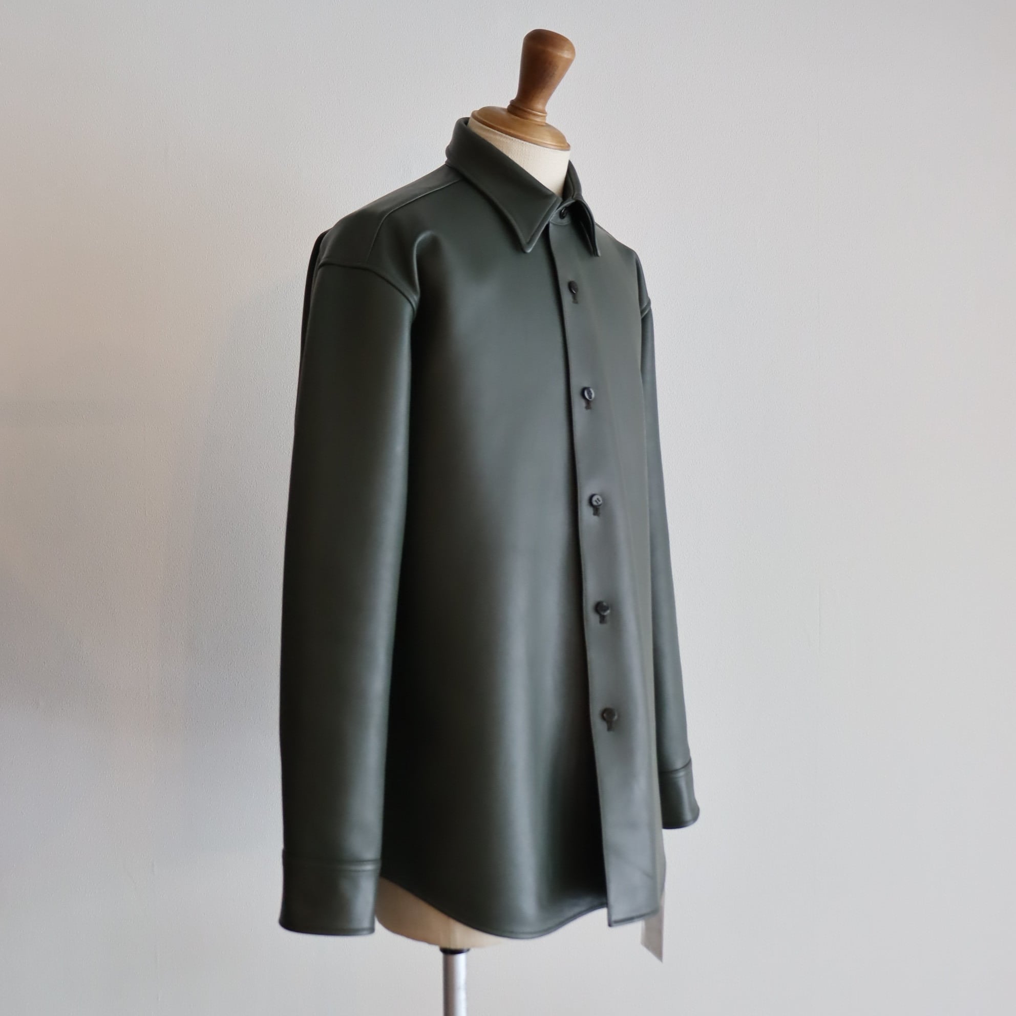 シルエットは程よくゆとりの持たせたシルエットで、素材の柔らかさ、軽さも相まってストレスなく着用頂けます。レザー特有の堅苦しさが無く非常に美しく品のあるレザーシャツとなっております。
