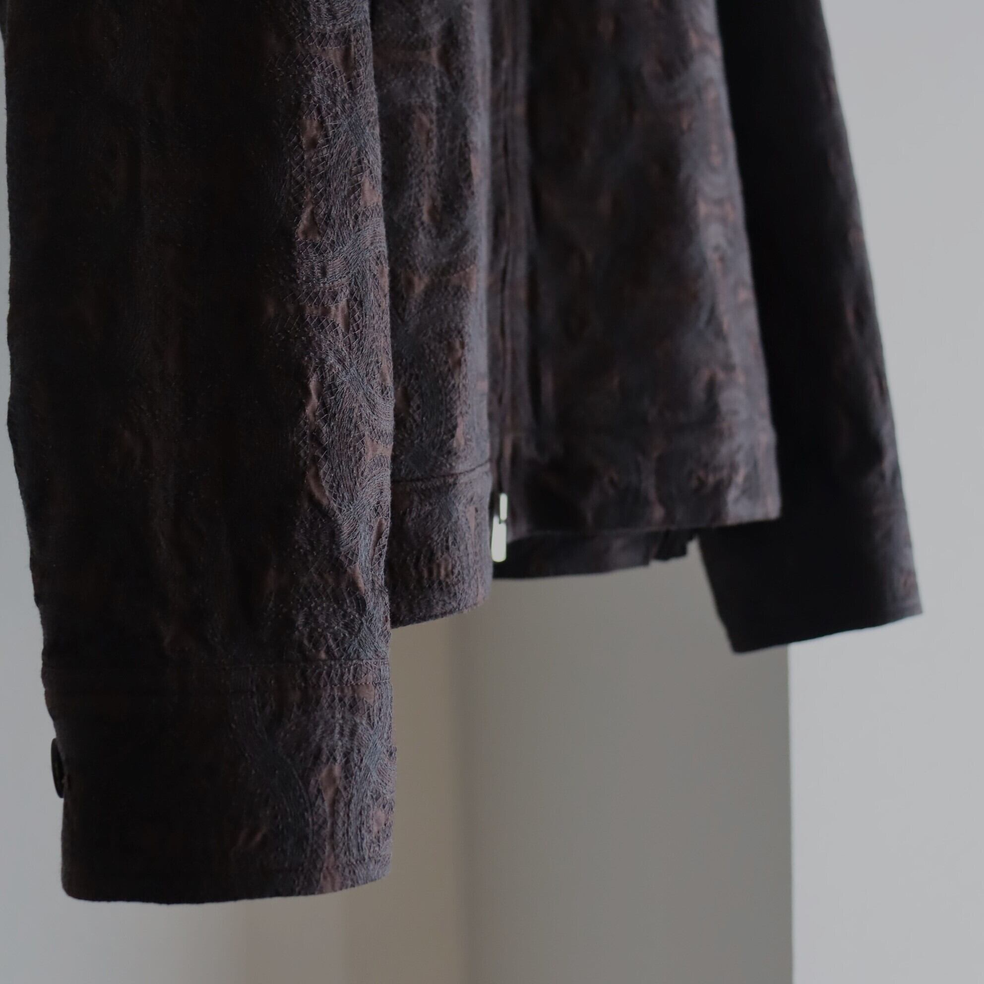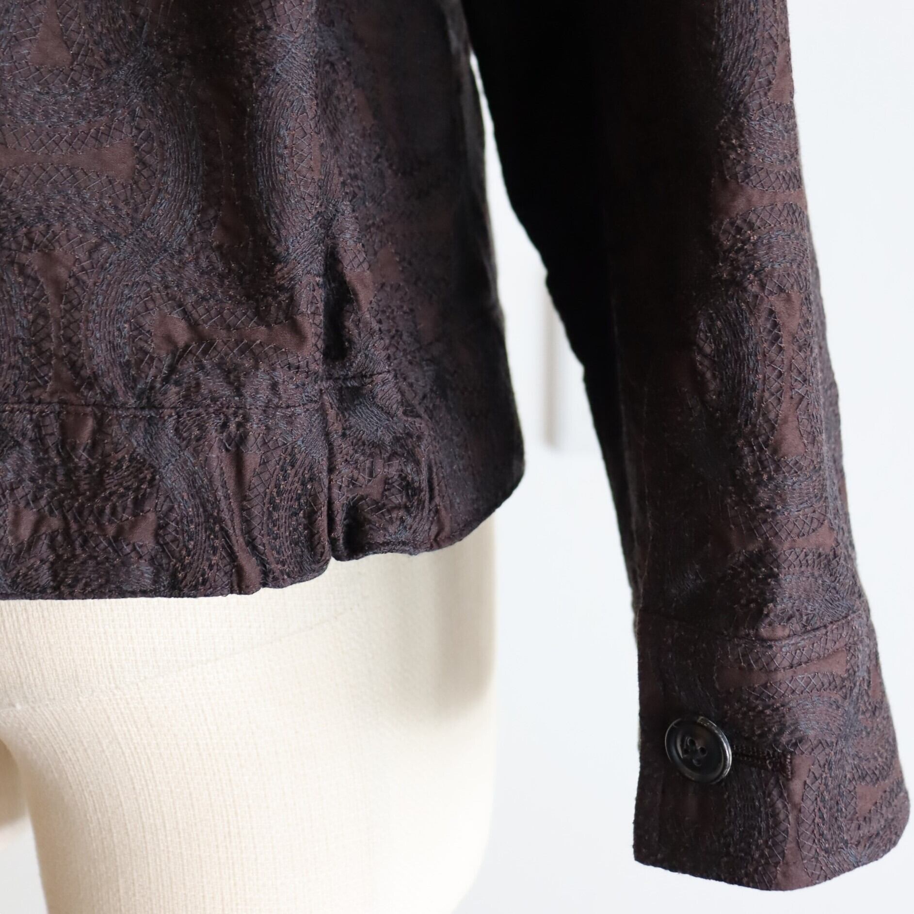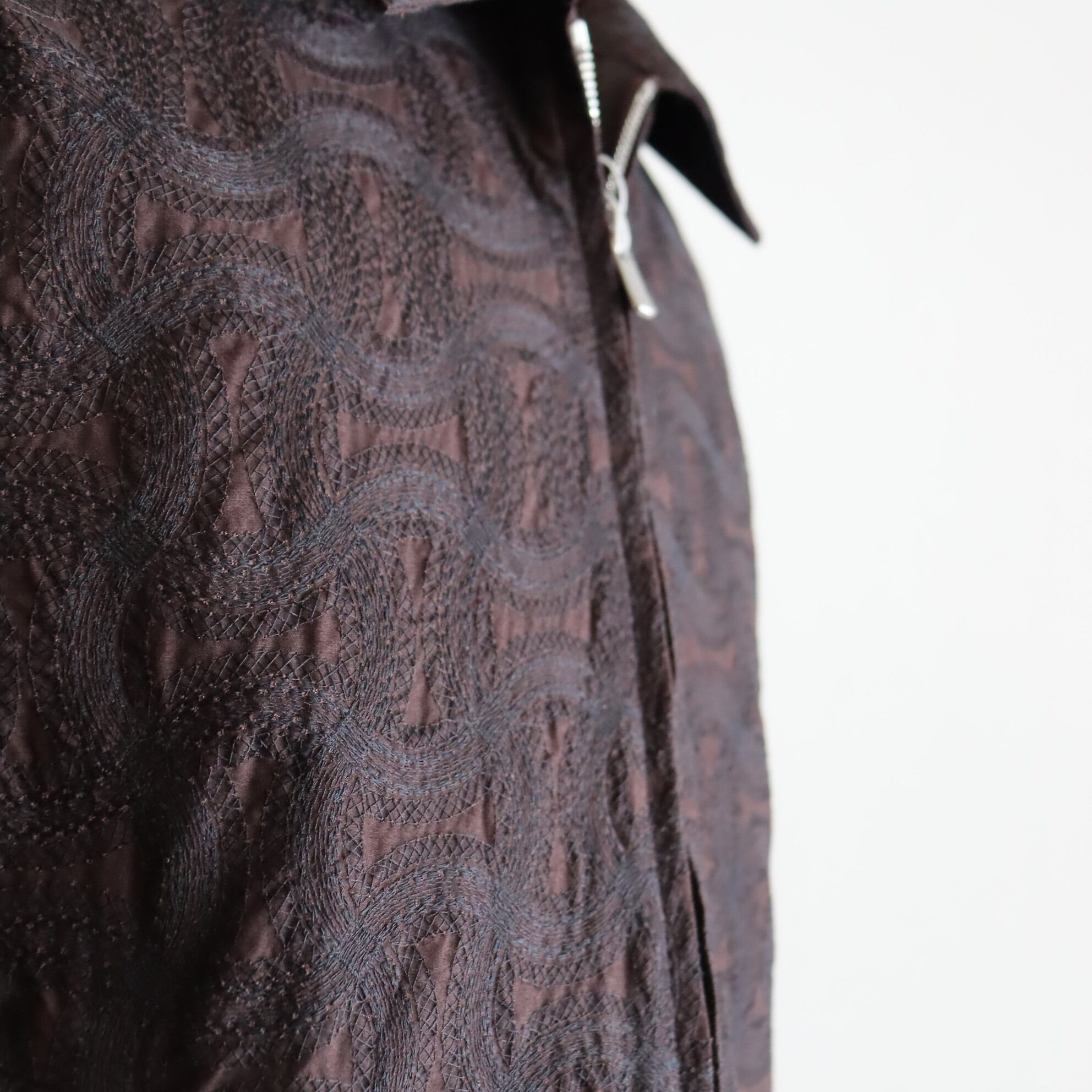 nonnotte " Crispy Embroidery Zip Up Blouson ( Dark Brown × Dark Brown )"