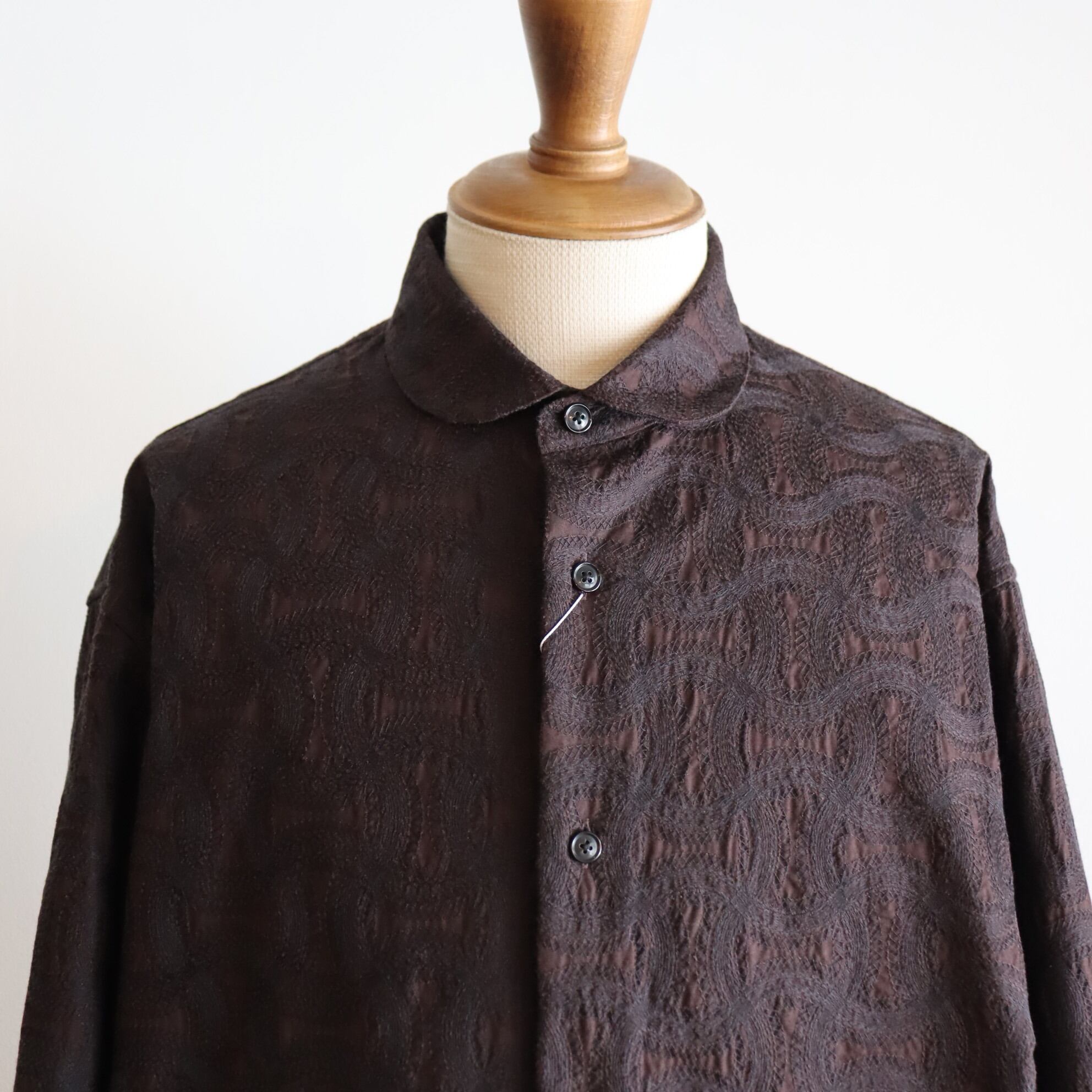 nonnotte "Crispy Embroidery Oversized Shirt ( Dark Brown × Dark Brown )"