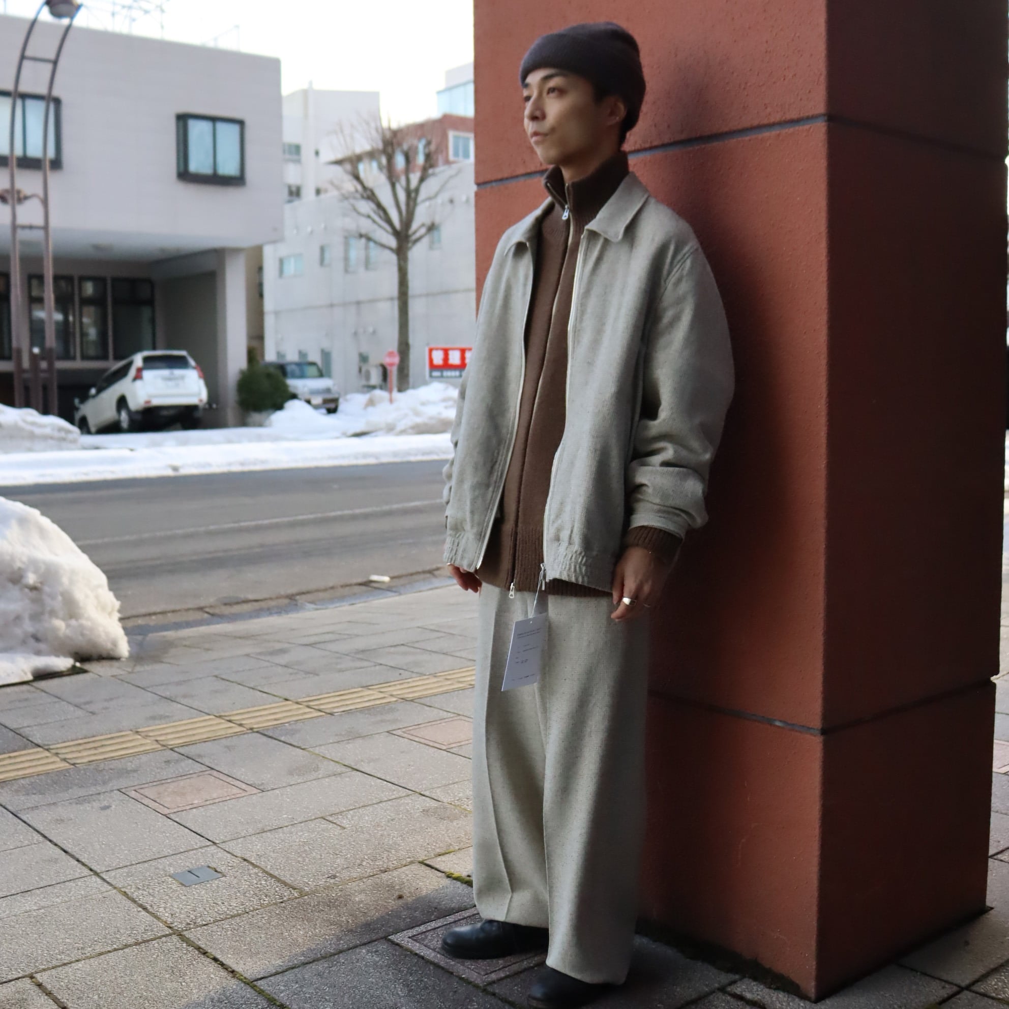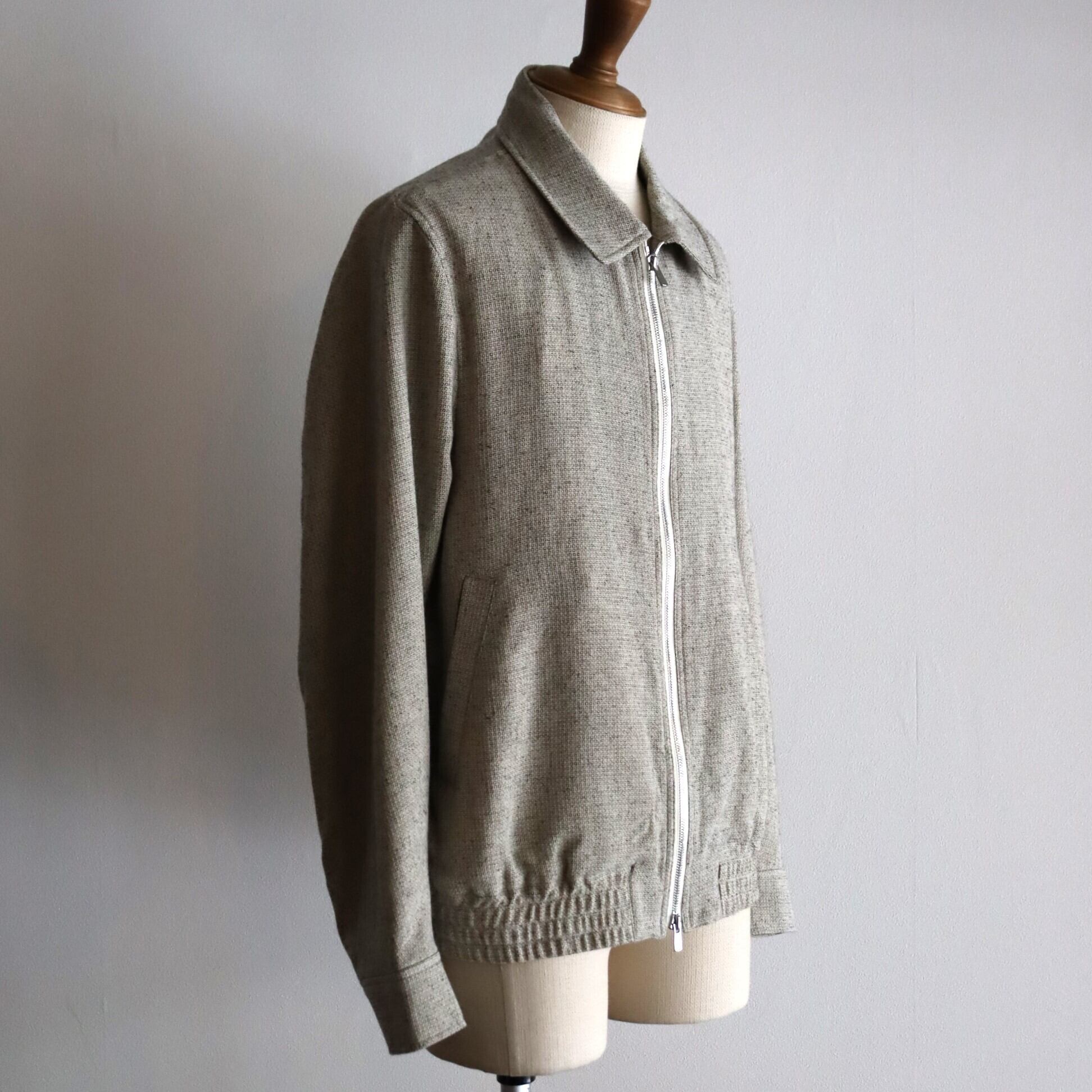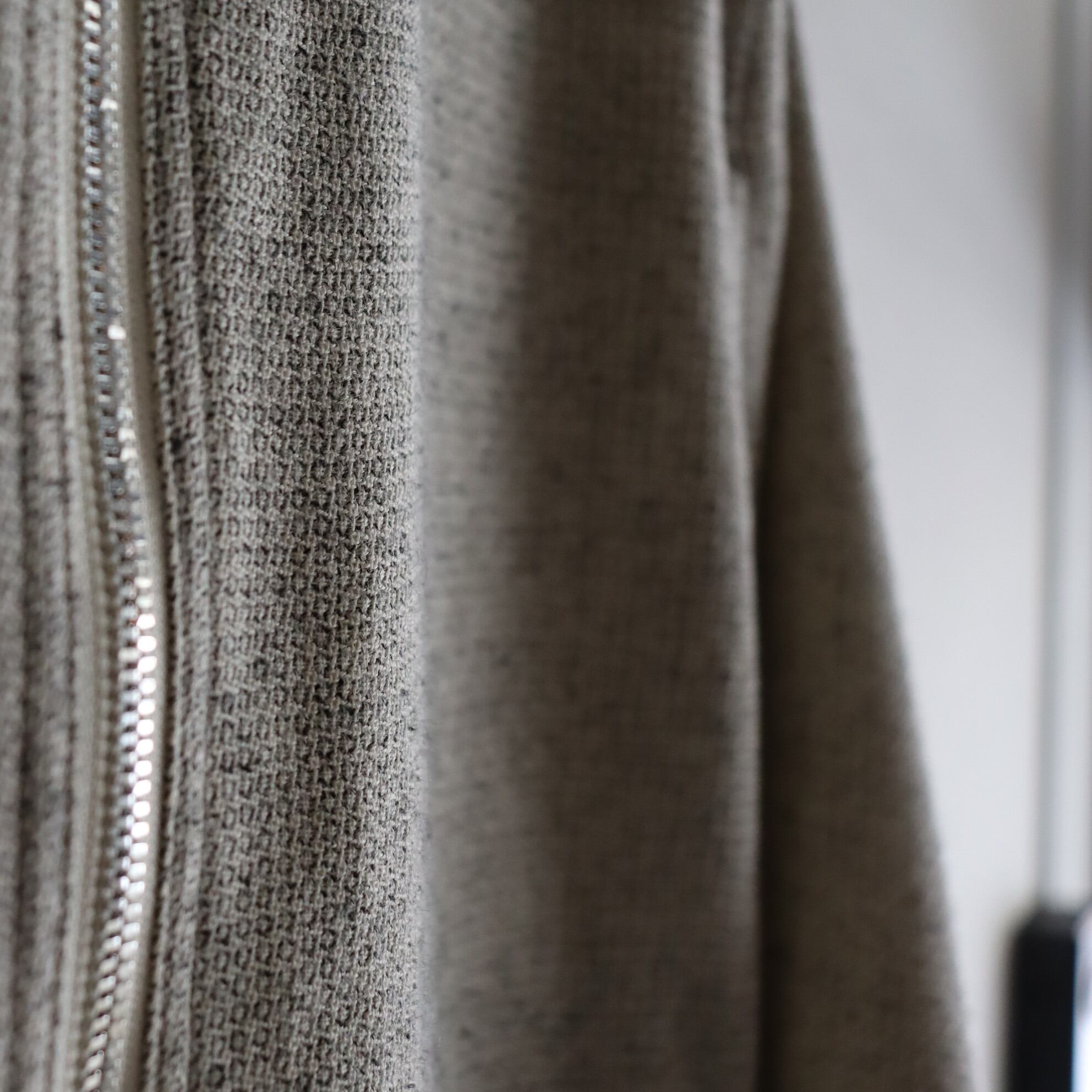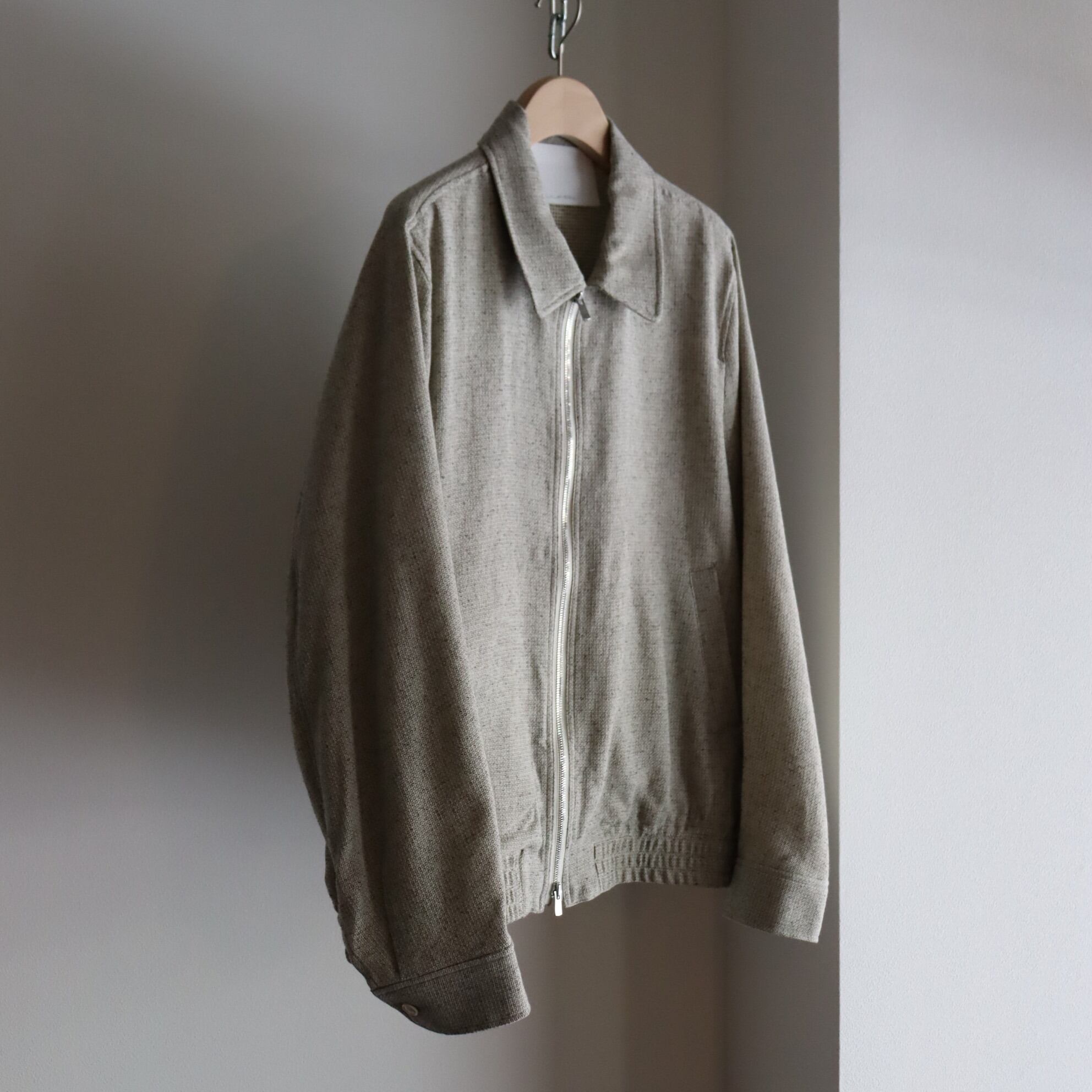 尾州にて開発したオリジナル素材、2/60梳毛ウール,40/2 コットンをタテとヨコに使用したZIP UP ブルゾン。