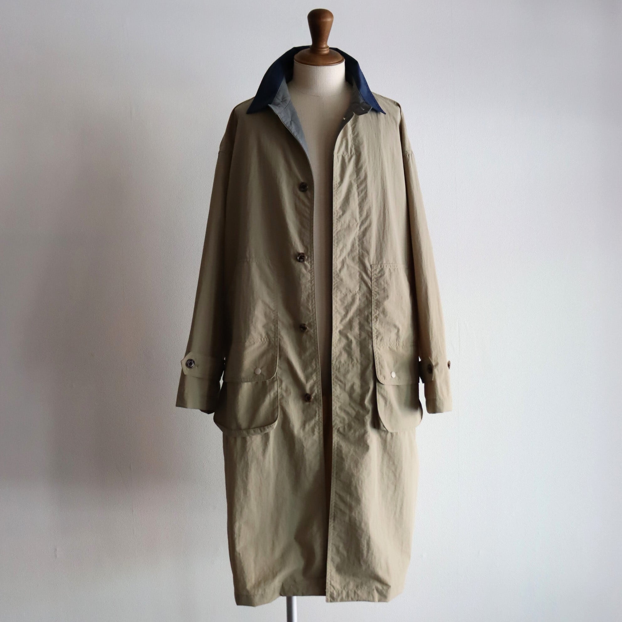 コットンライクなナイロンタスランタフタを使用したスプリングコート。