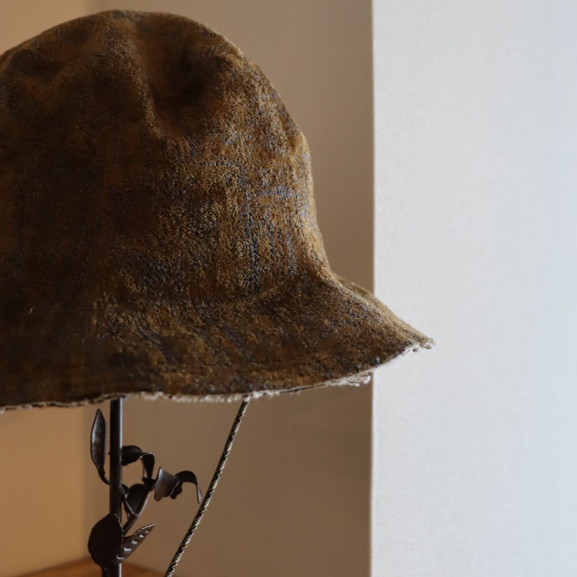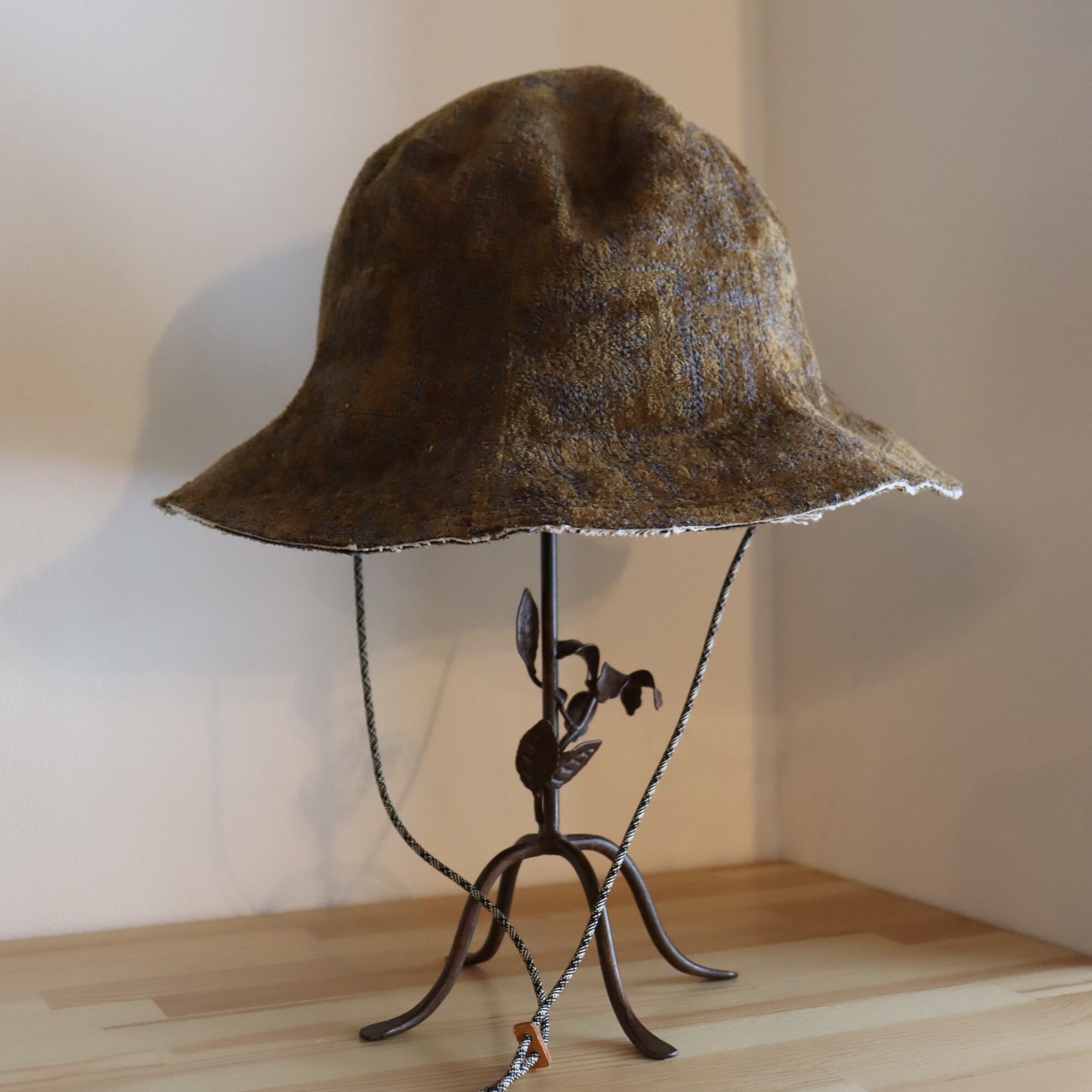柔らかな肌触りで光沢が美しいリネンベルベットにネイティブ柄刺繍を施したリネンハット。
