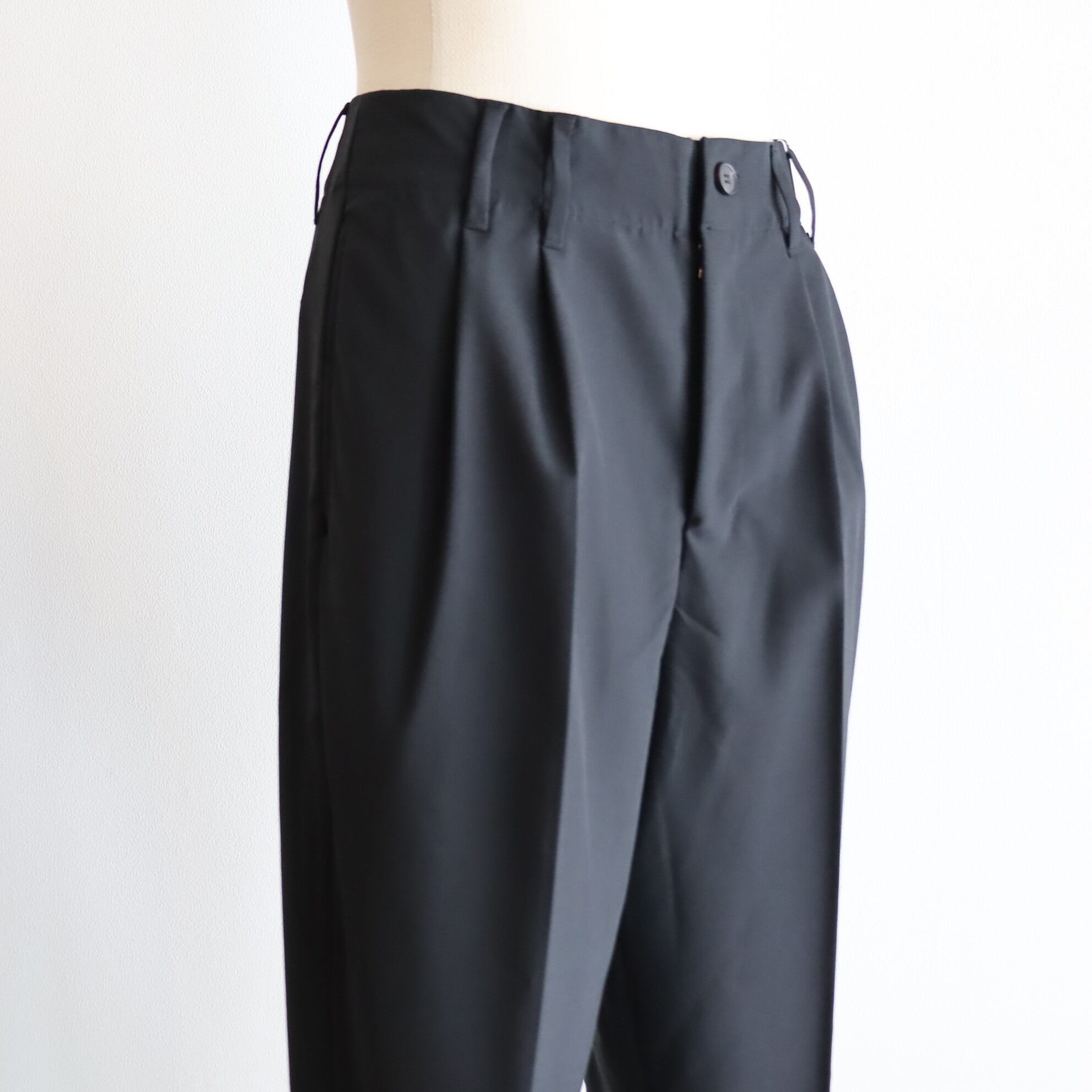 nonnotte " Hard Twist Poplin 2-Tuck Wide Tapered Trousers ( Black ) "