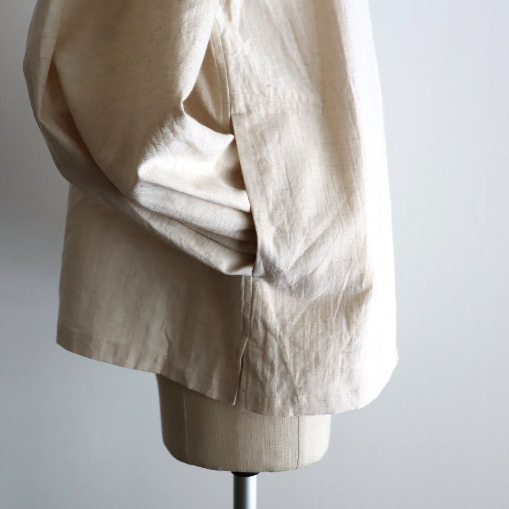袖は古いドレスシャツの仕様を引用した膨らみと前振りの付いたパターン設計に。