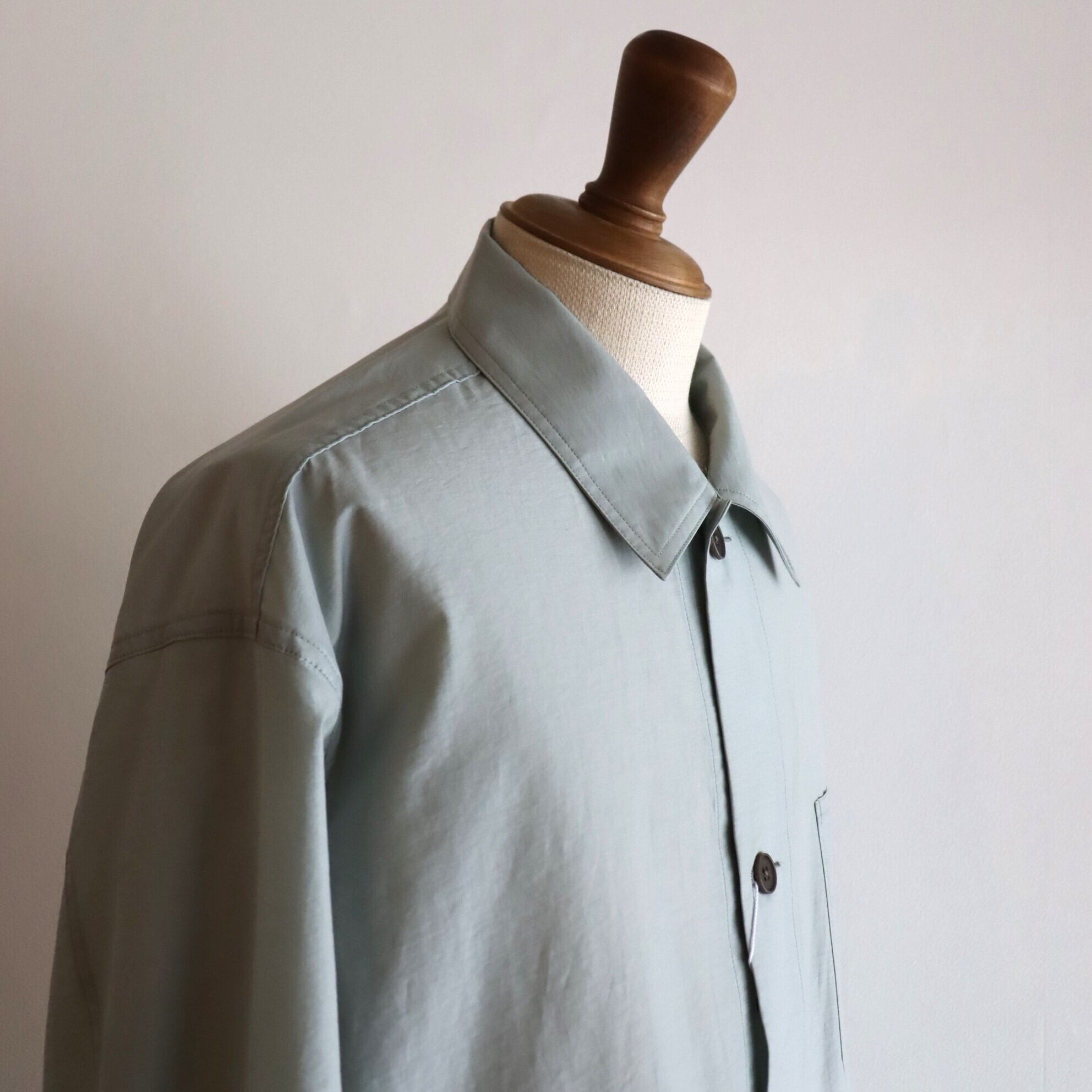 細番手の糸を使用して経糸にナイロン緯糸にコットンを使用した透け感とハリ感のあるローンを使用し、清涼感があるカバーオールに。
